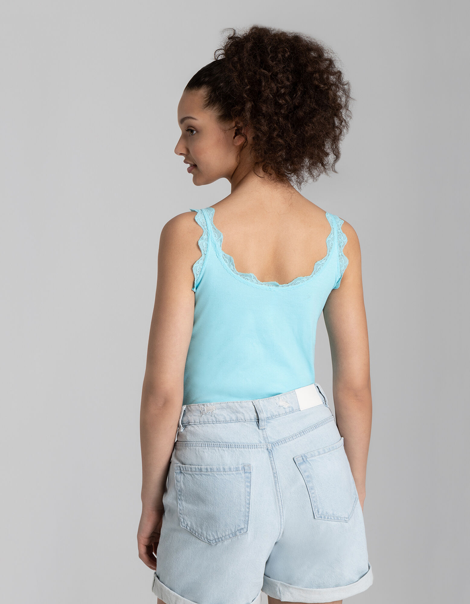 Trumpa palaidinė - Nėrinių apvadas - turkis