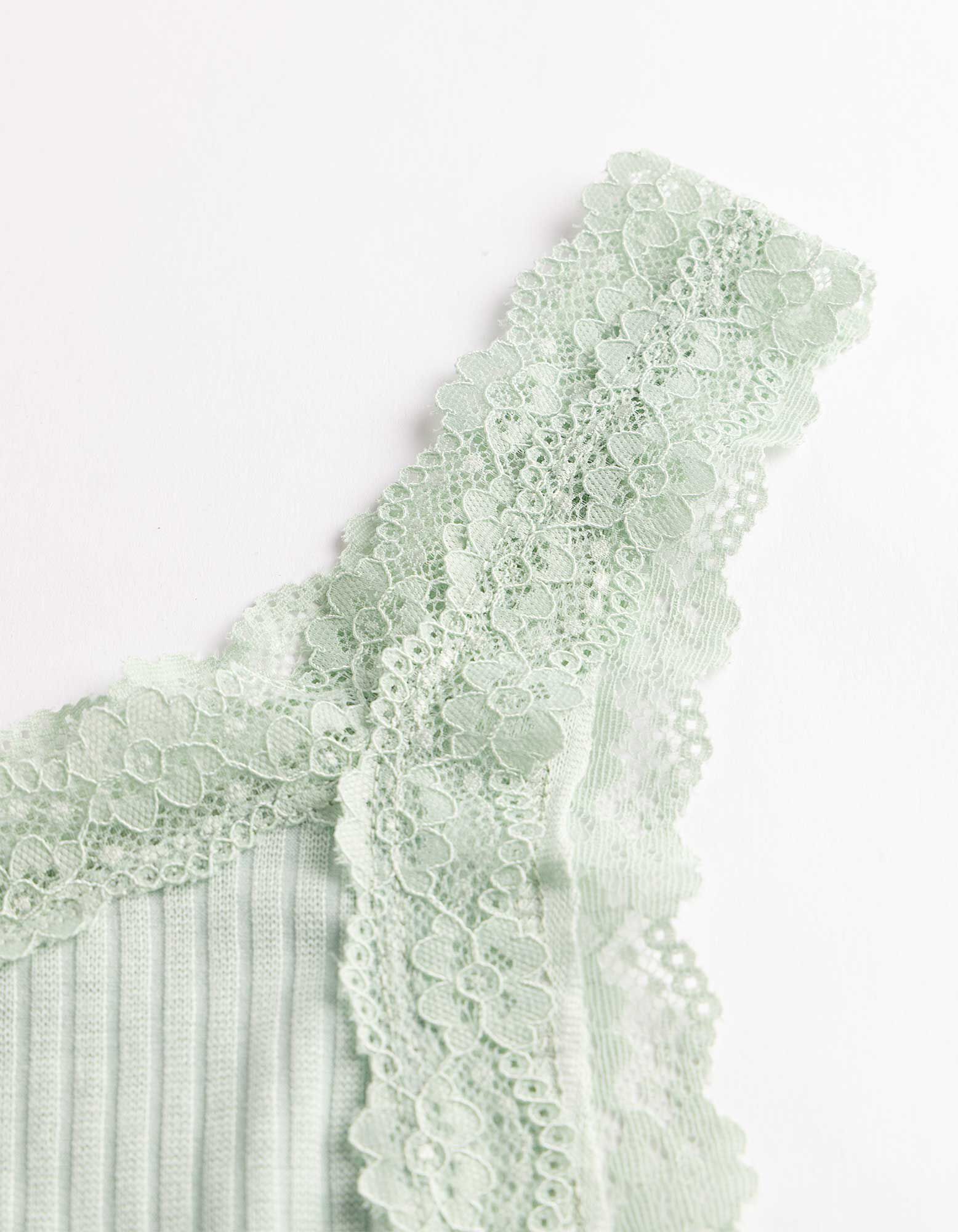 Apsauginis audinys: poliesteris: 63%, viskozė: 32%, elastanas: 5% | Nėriniai: nailonas: 90%, elastanas: 10%