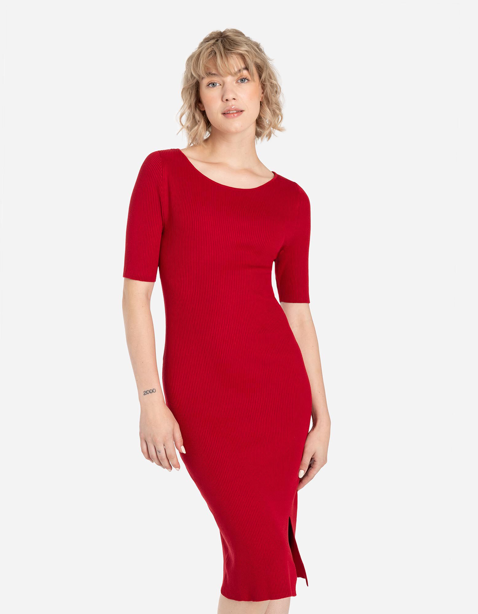 Gebreide jurk - Aansluitend - donkerrood