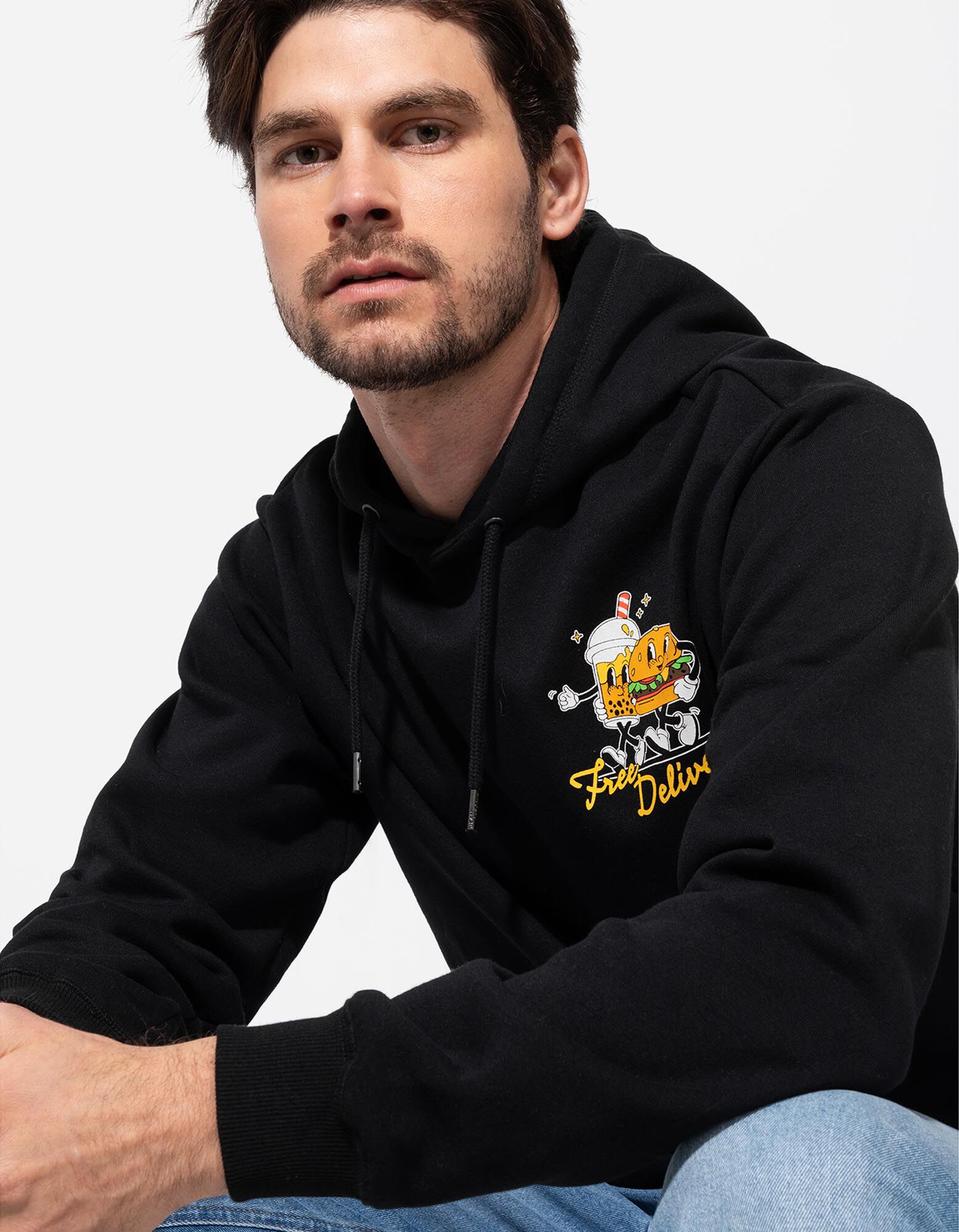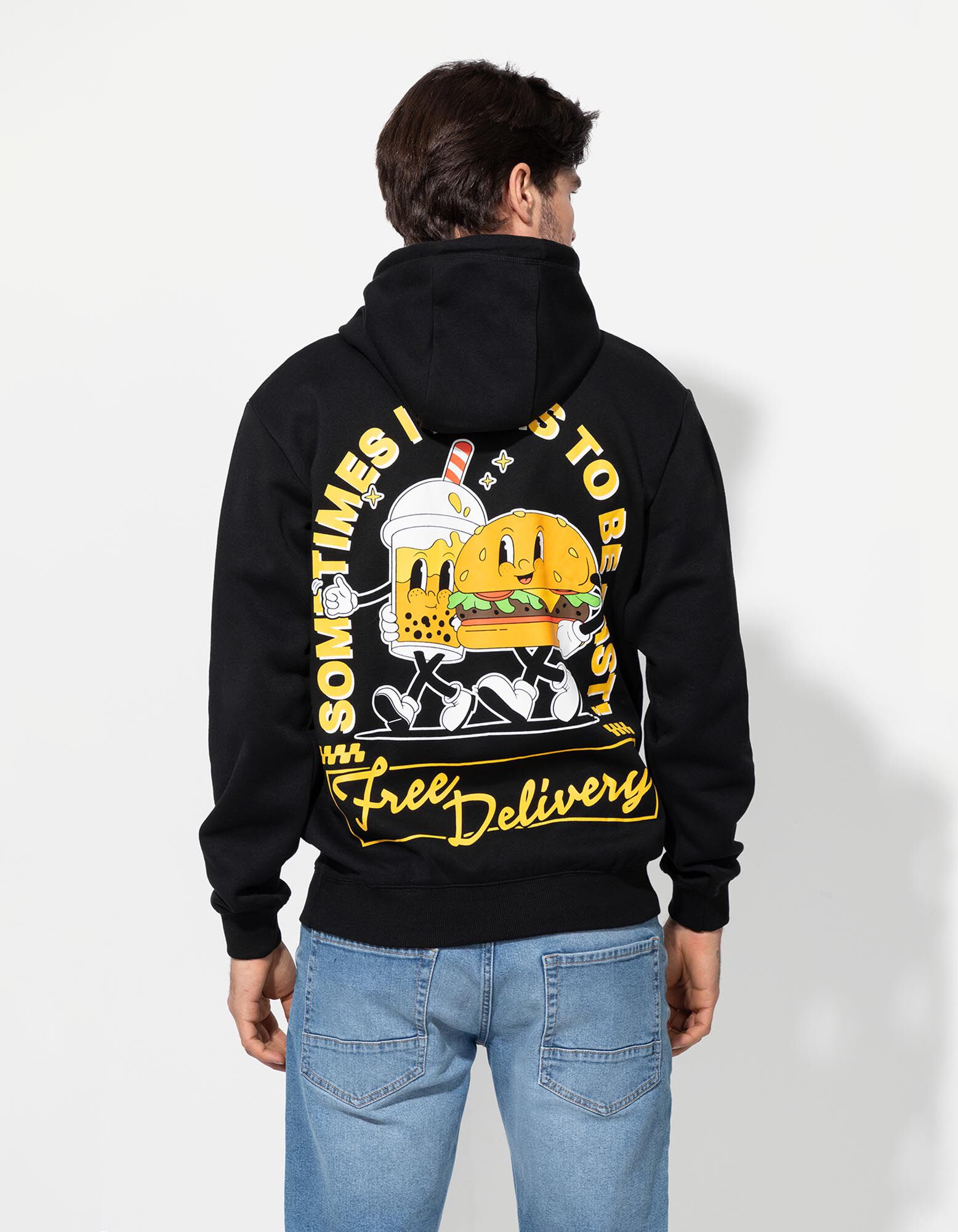 Hoodie - Afdrukken achteraan - zwart