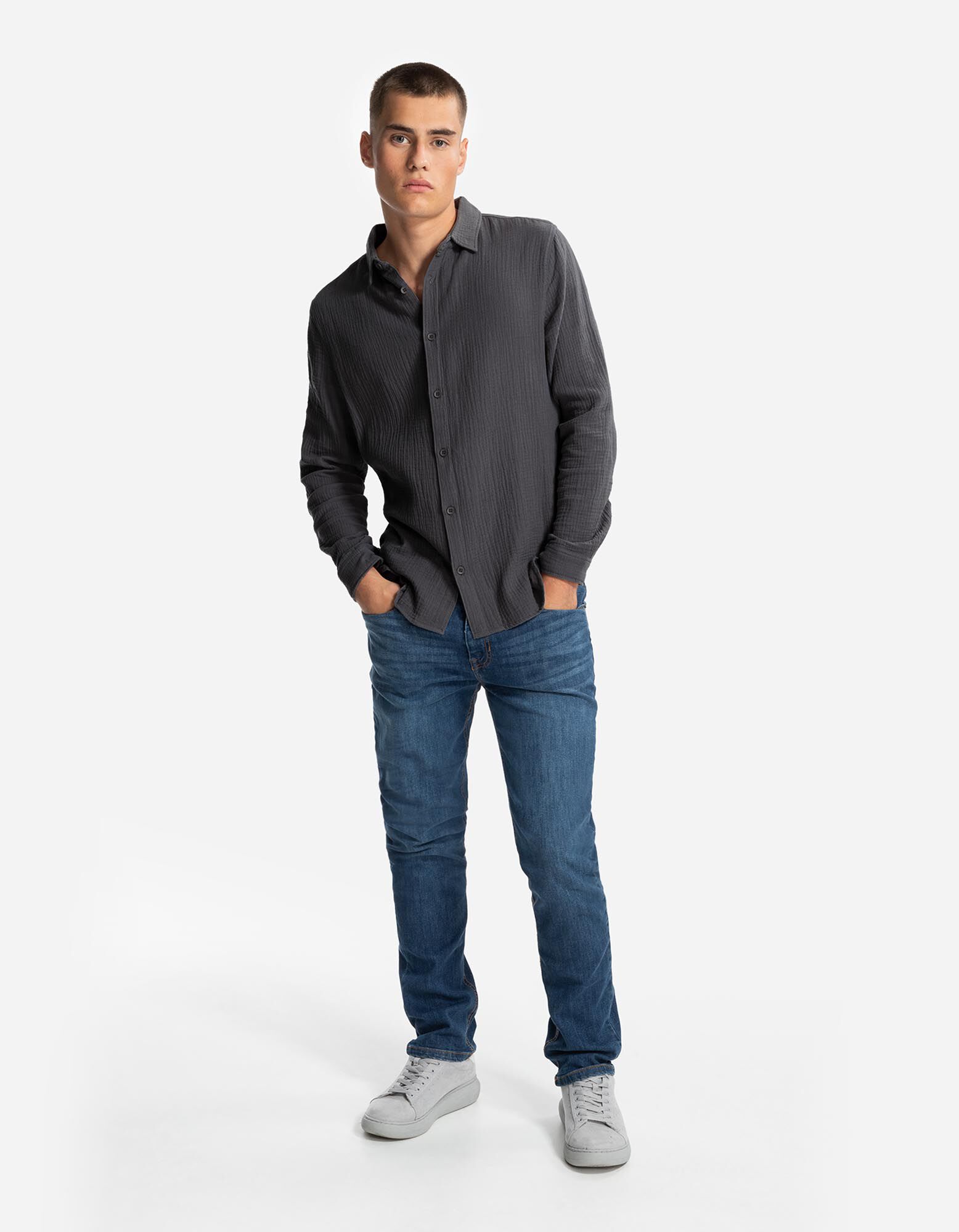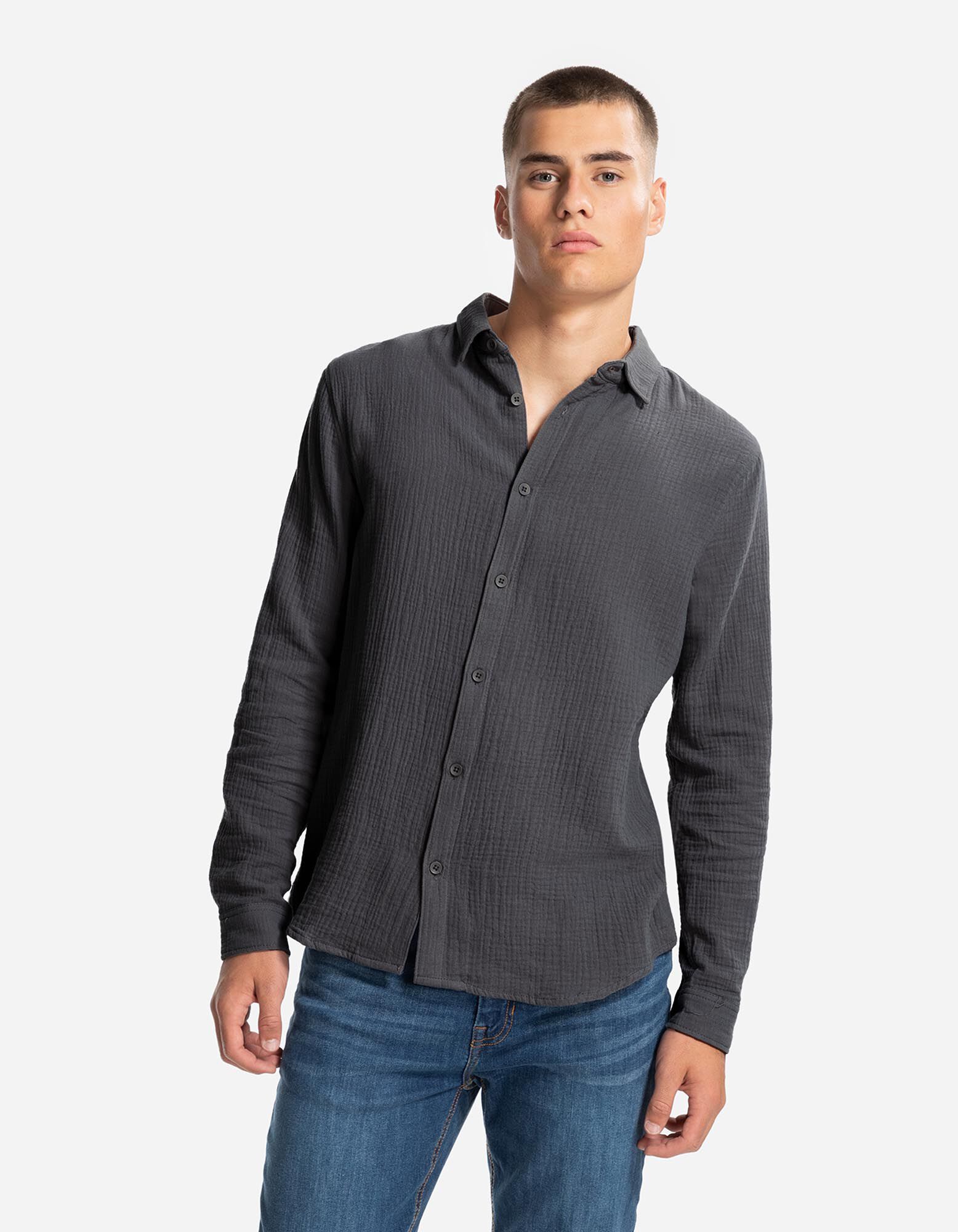 Overhemd - Mousseline - donkergrijs