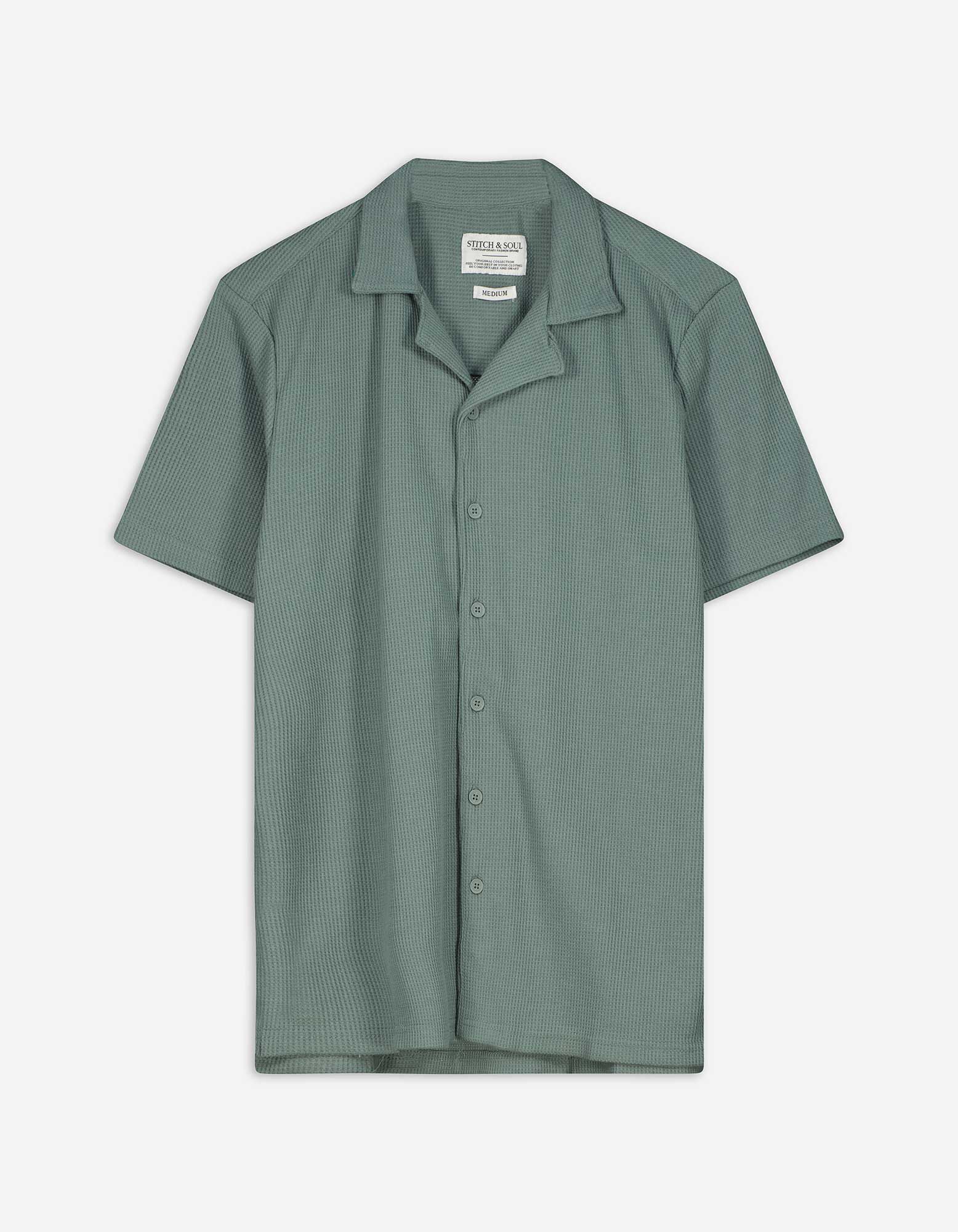 Shirt met wafelstructuur - Effen - groen