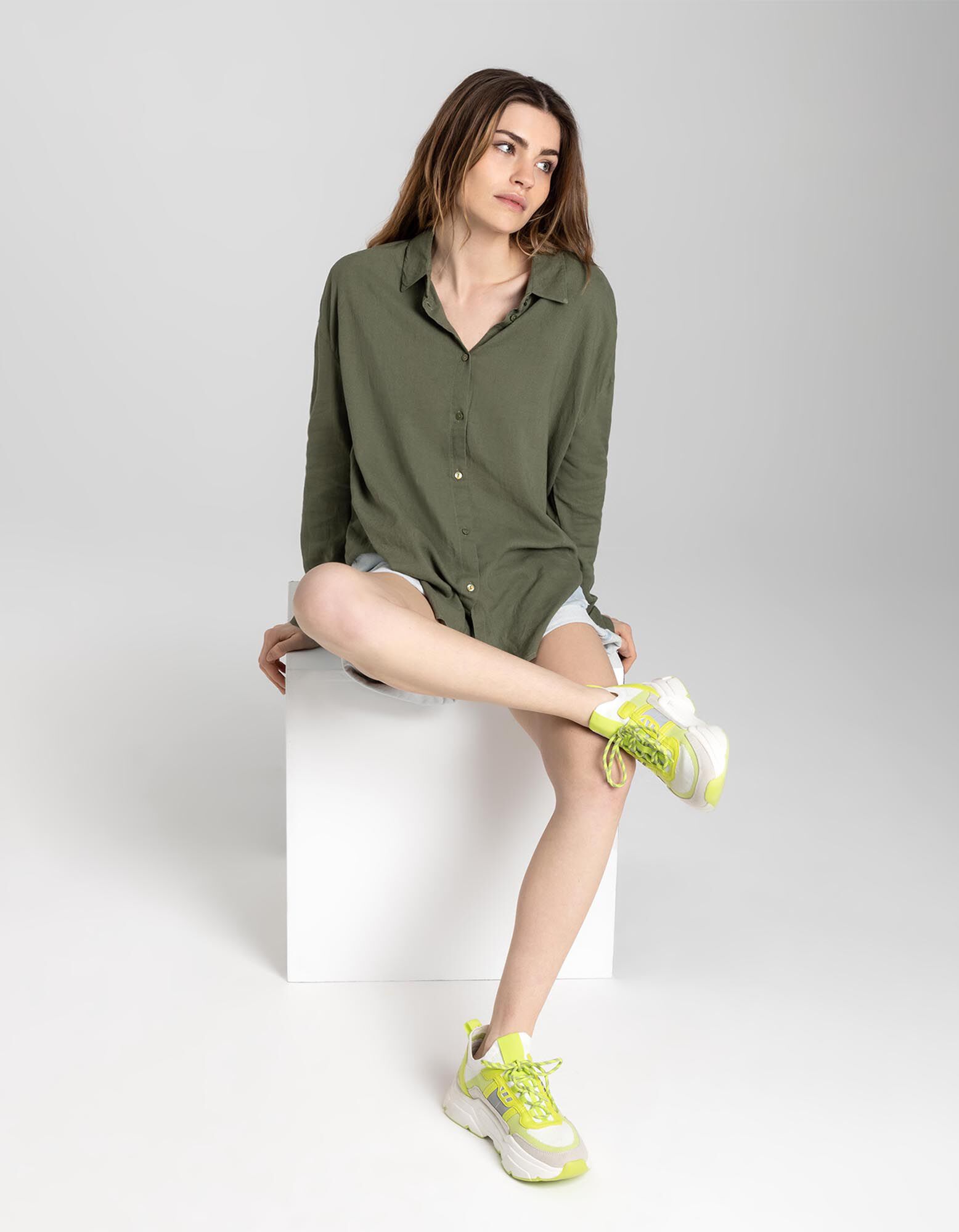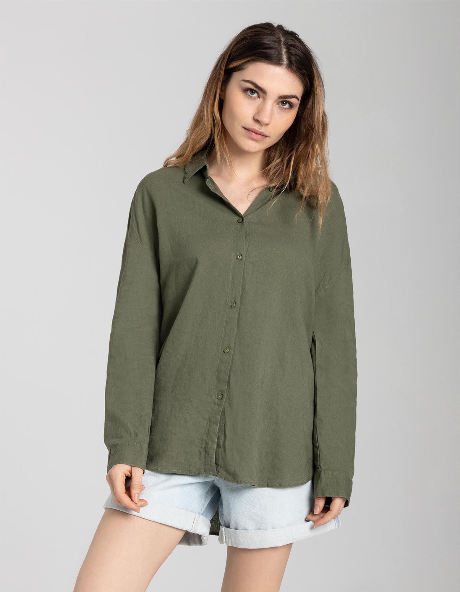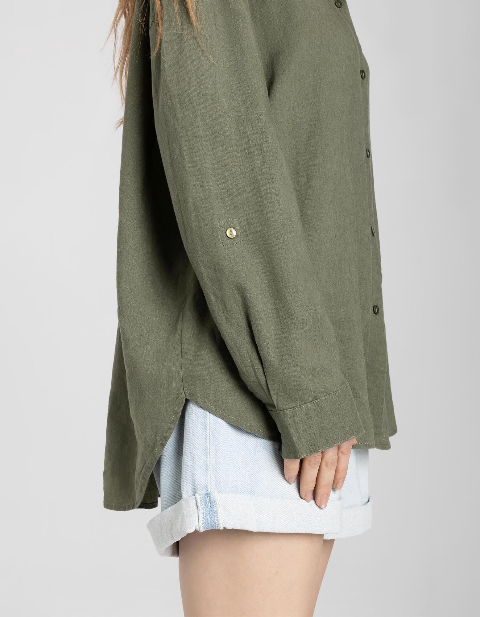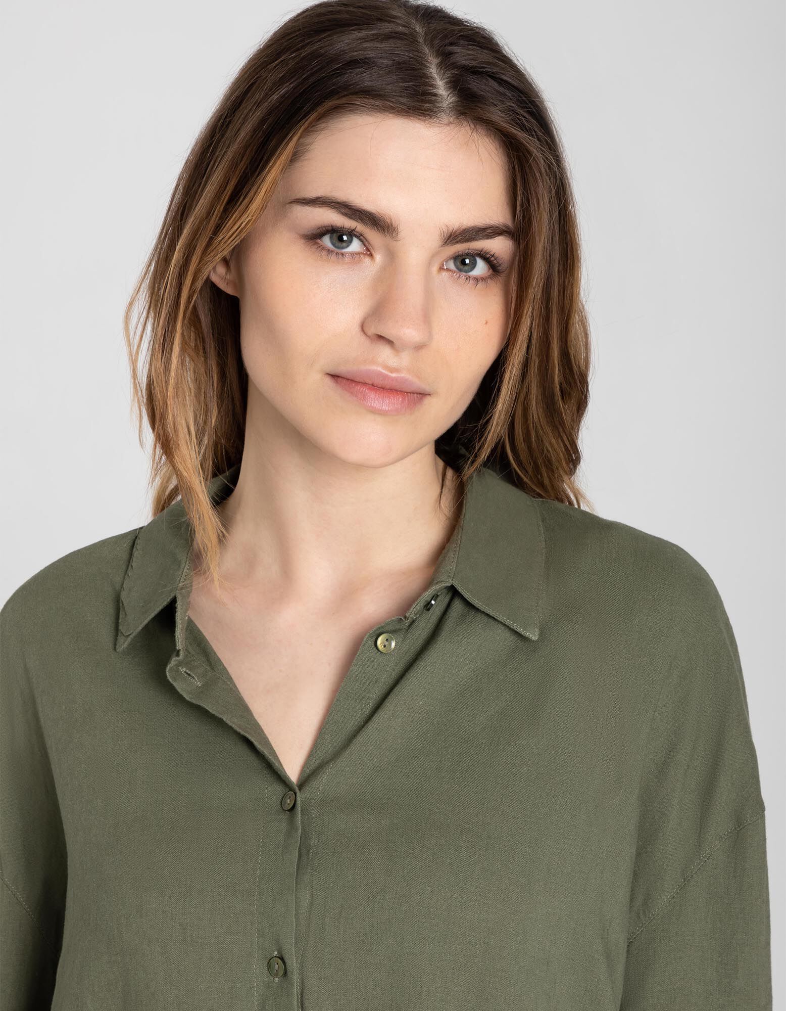 Overhemdblouse - Linnenmix - donkergroen