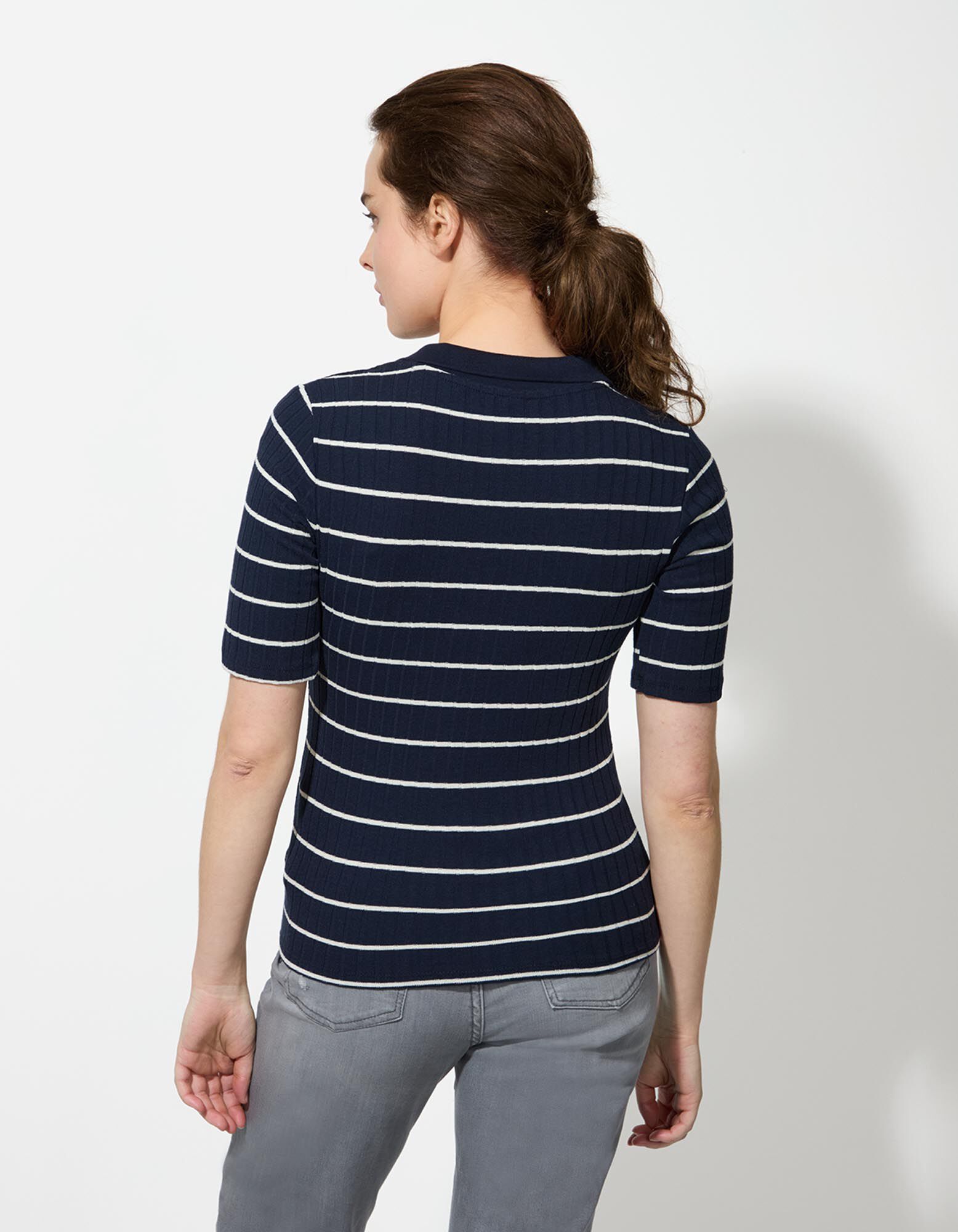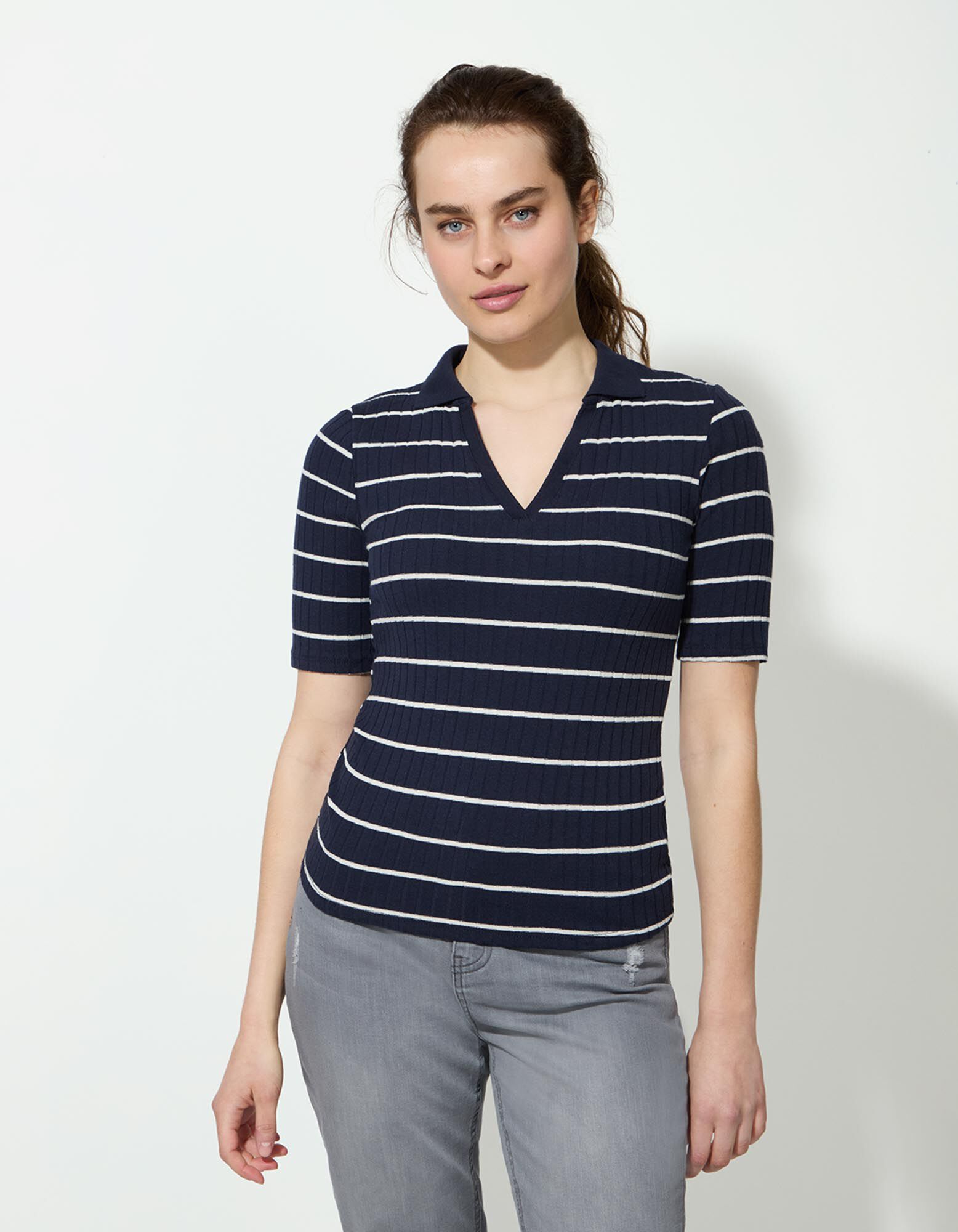 Poloshirt - Strepen - donkerblauw