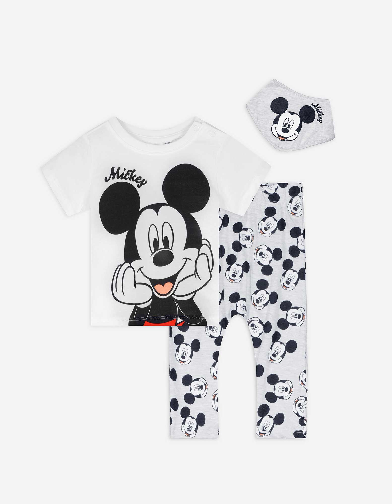 Set bestaande uit T-shirt, broek en slabbetje - Mickey Mouse - wit
