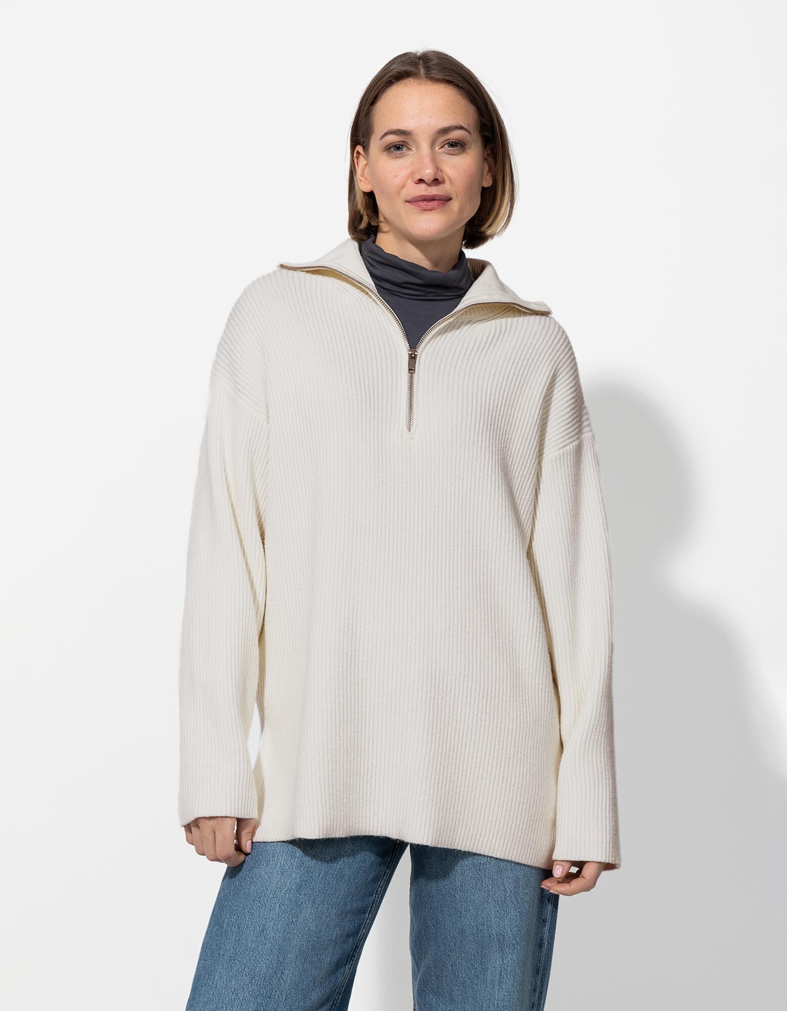 Trui - Ritssluiting - wit