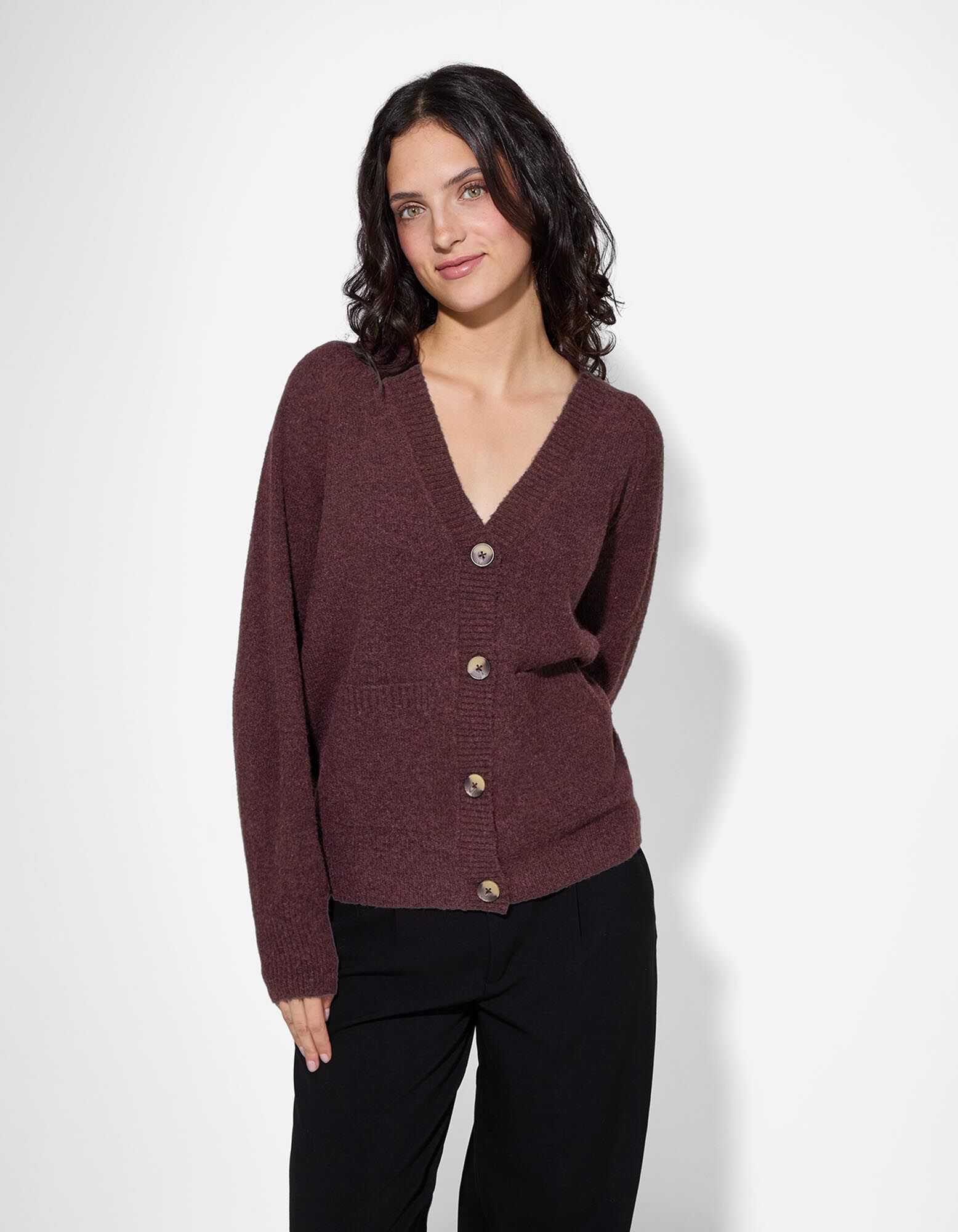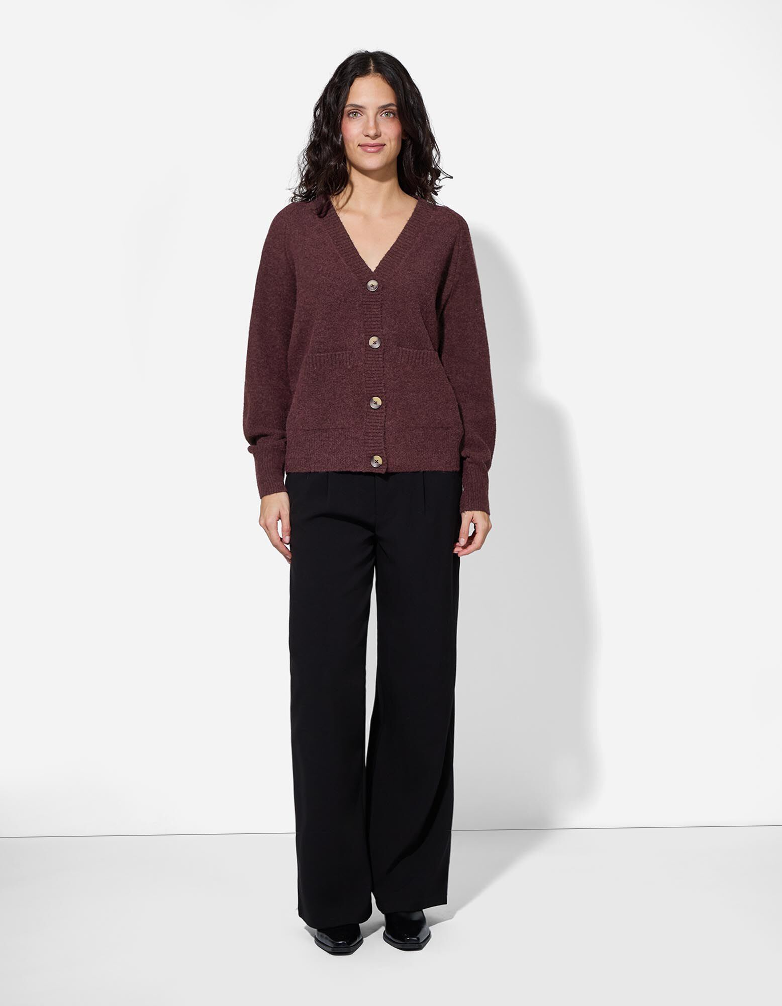 Gebreid vest - Opgestikte zakken - donkerlila