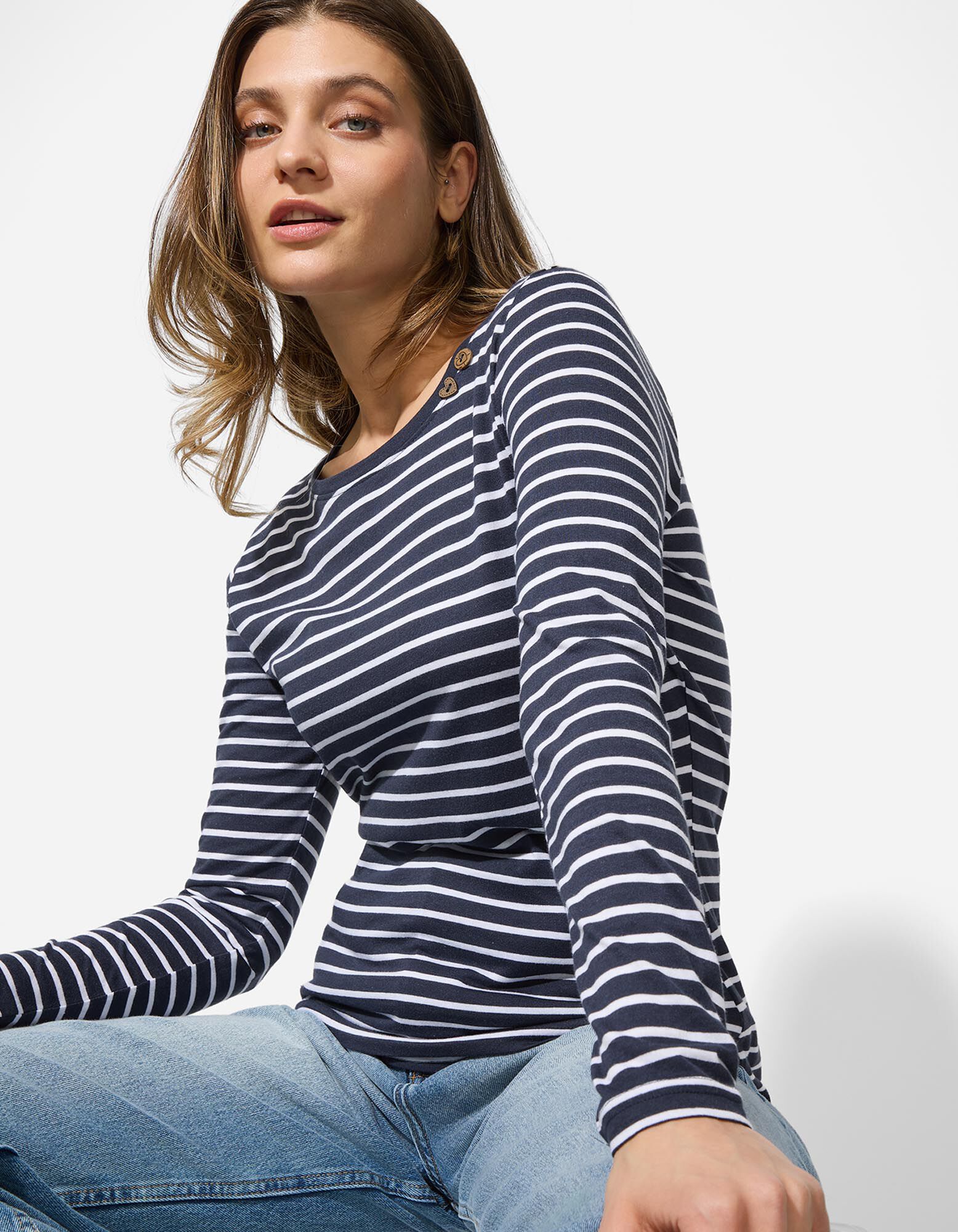Longsleeve - Sierknopen - donkerblauw