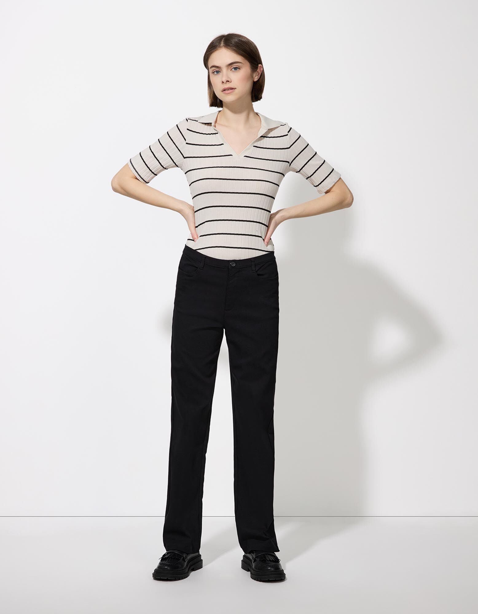 Poloshirt - Strepen - wit