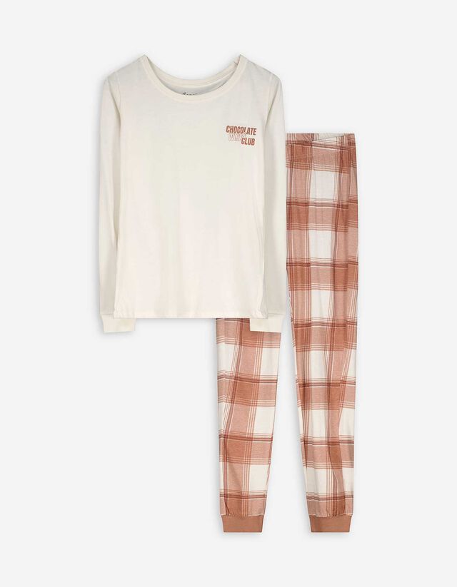 Pyjamaset bestaande uit shirt met lange mouwen en broek - wit