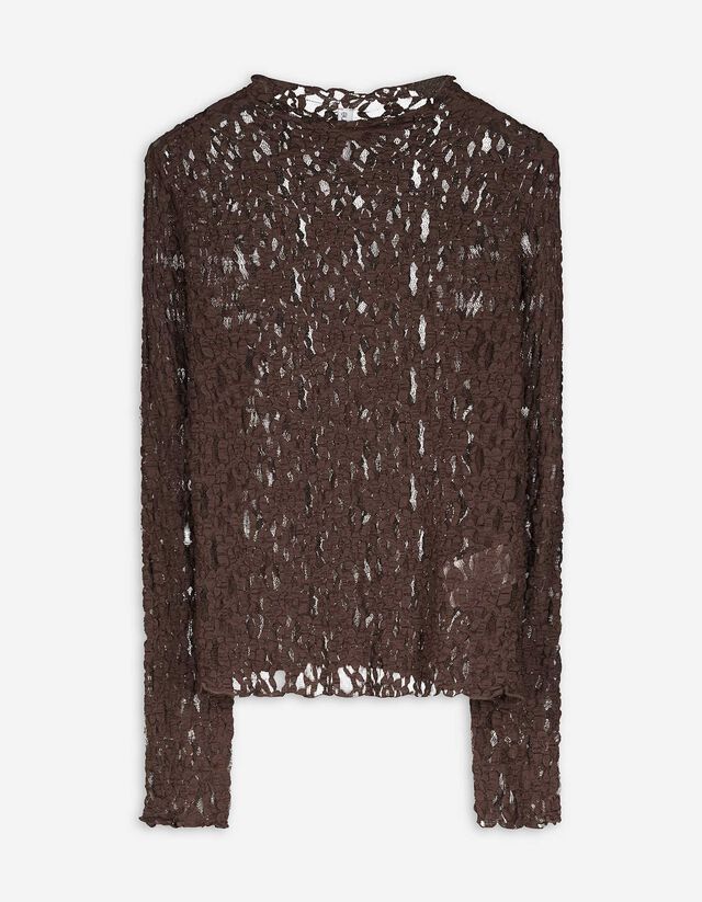 Shirt - Met kant - donkerbruin