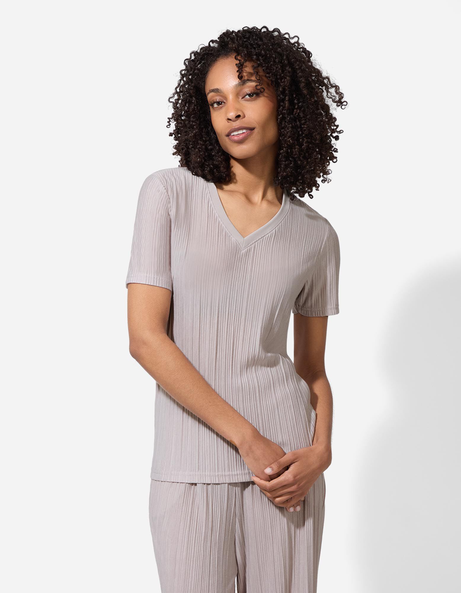 T-shirt - Plooien - beige