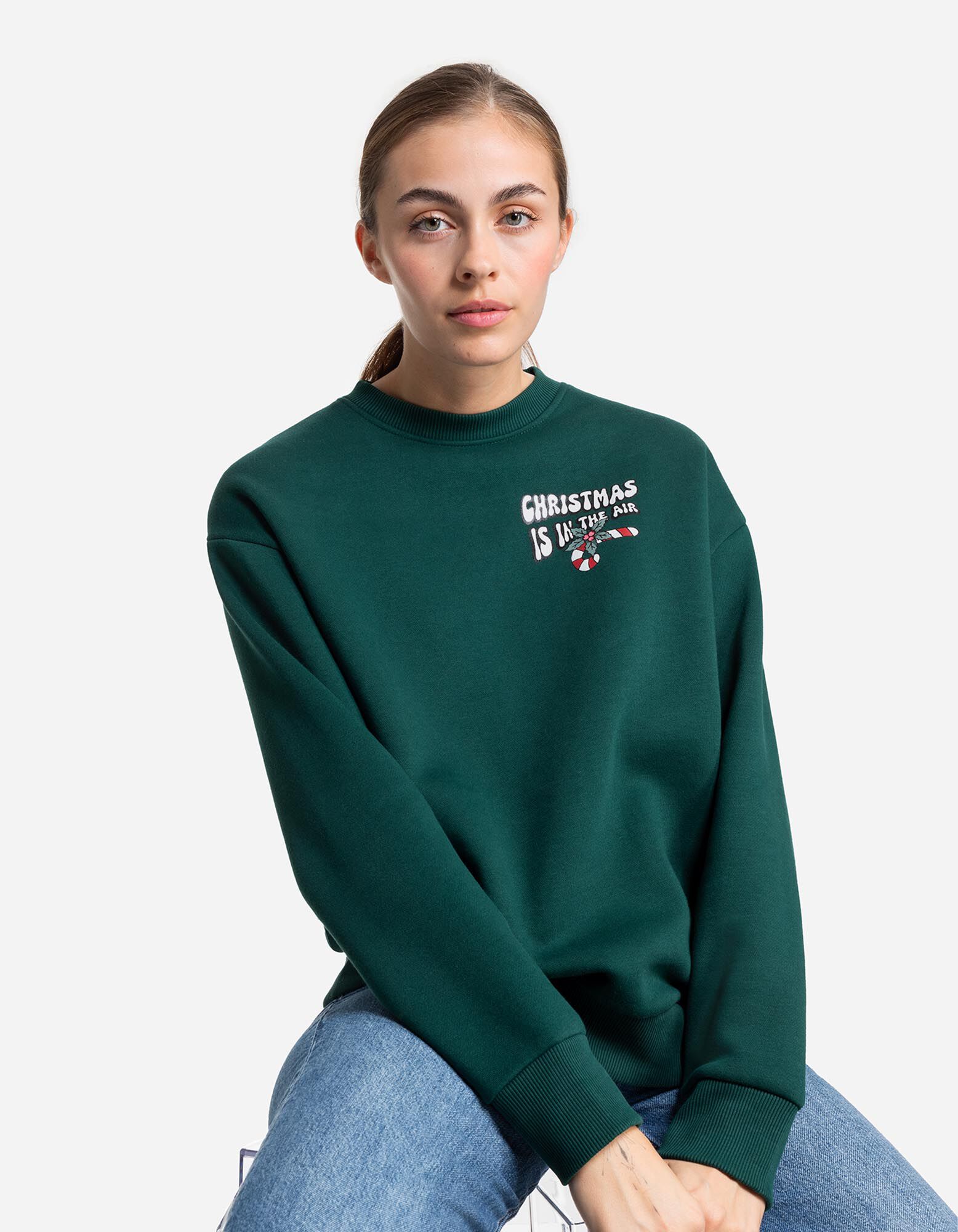 bluza - Tylny nadruk - ciemny zielony