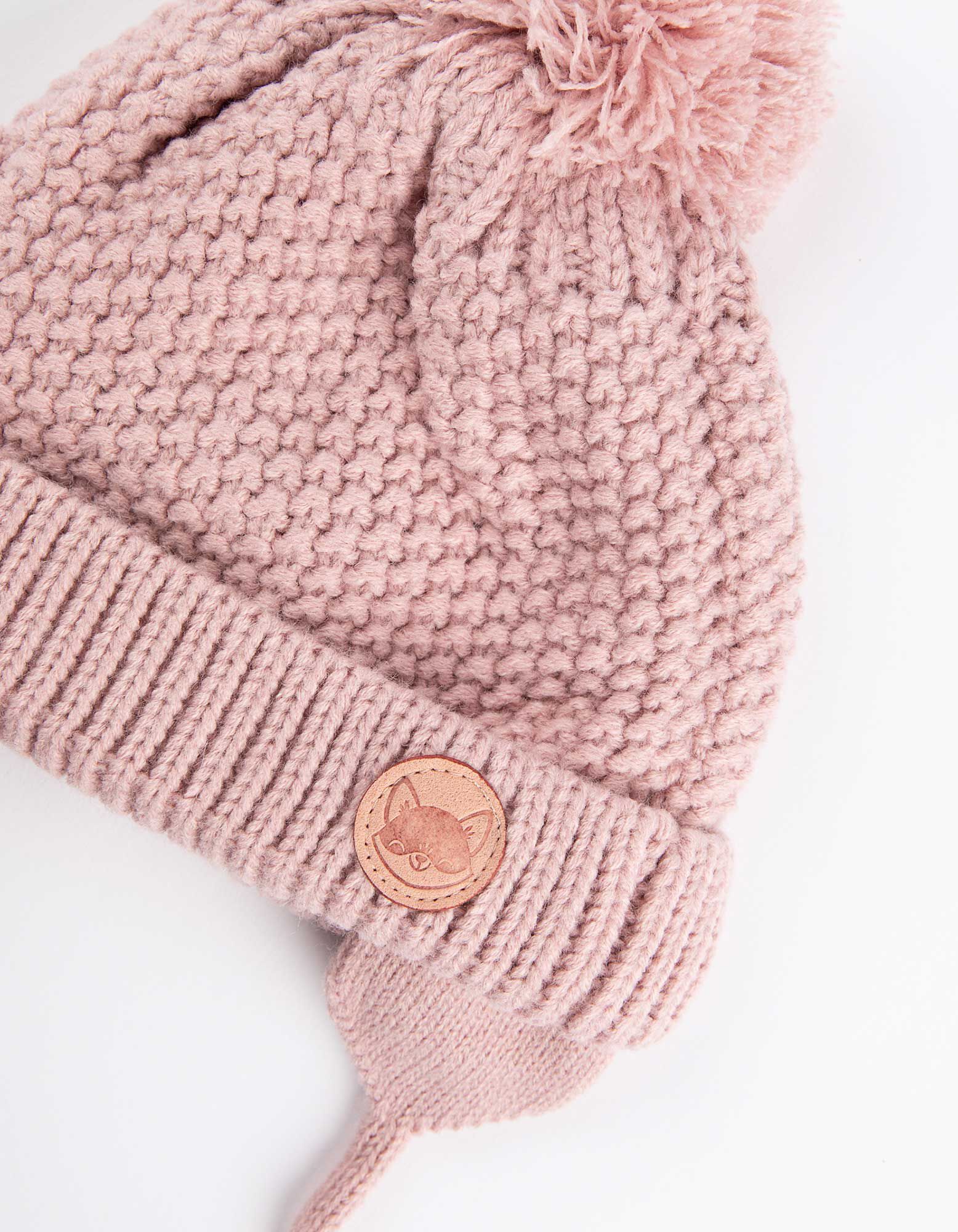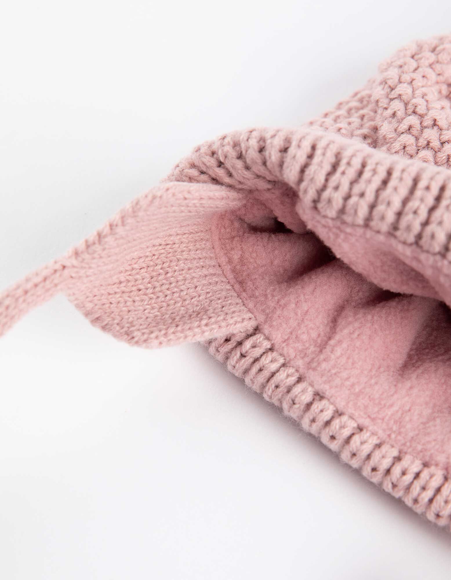 czapka z dzianiny - podszewka z polaru - rozowy
