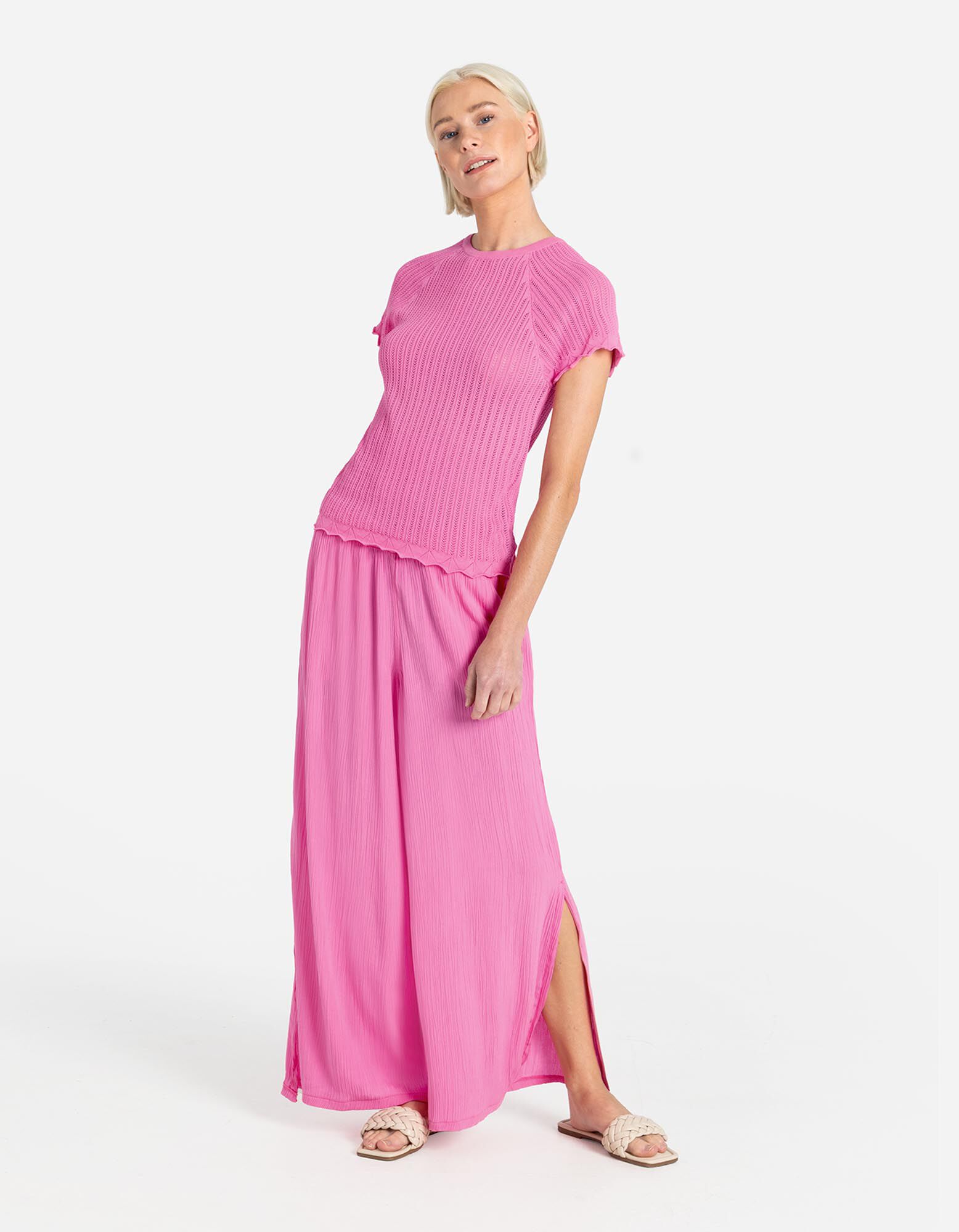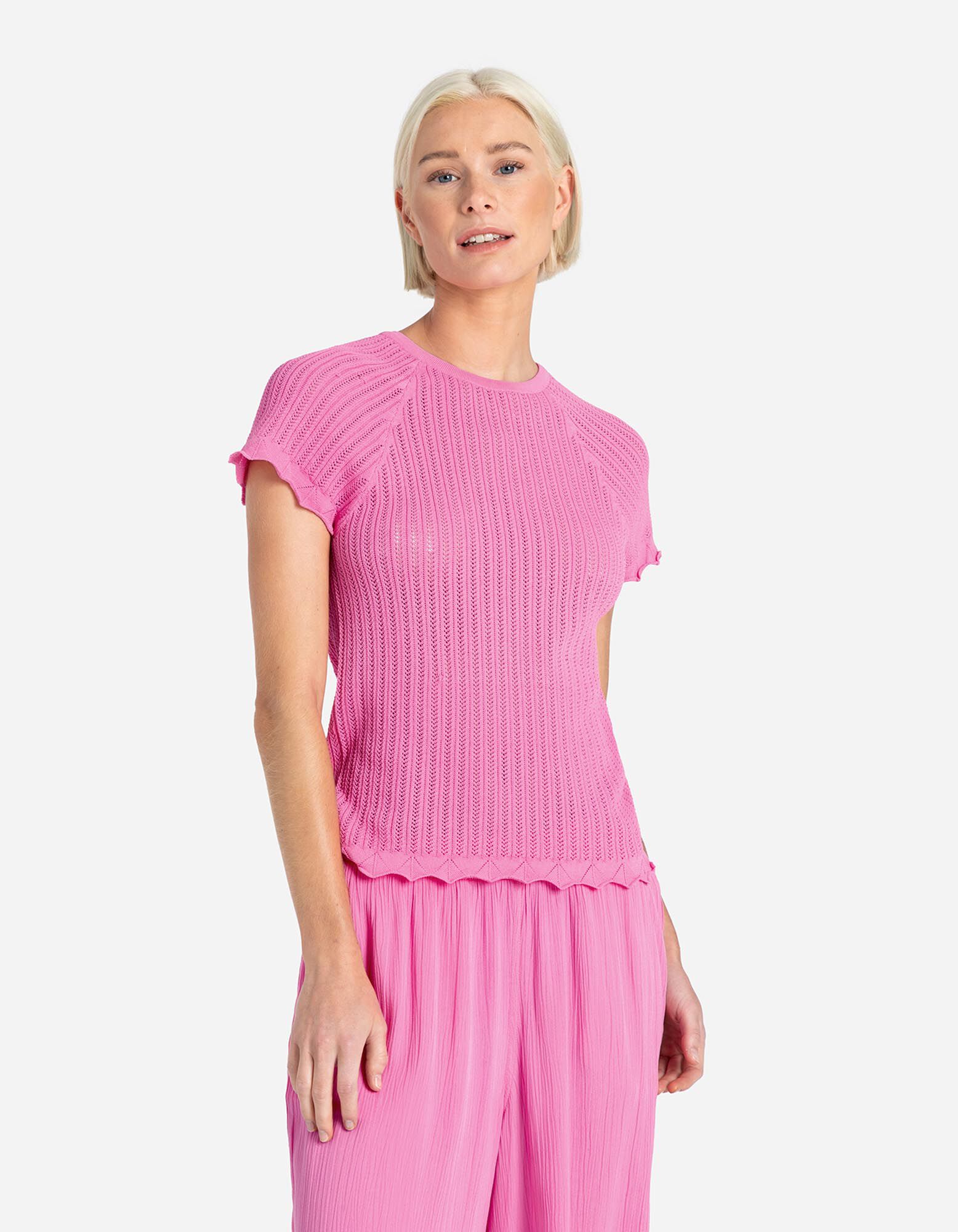 Dzianinowa koszula - Dzianina perforowana - rozowy