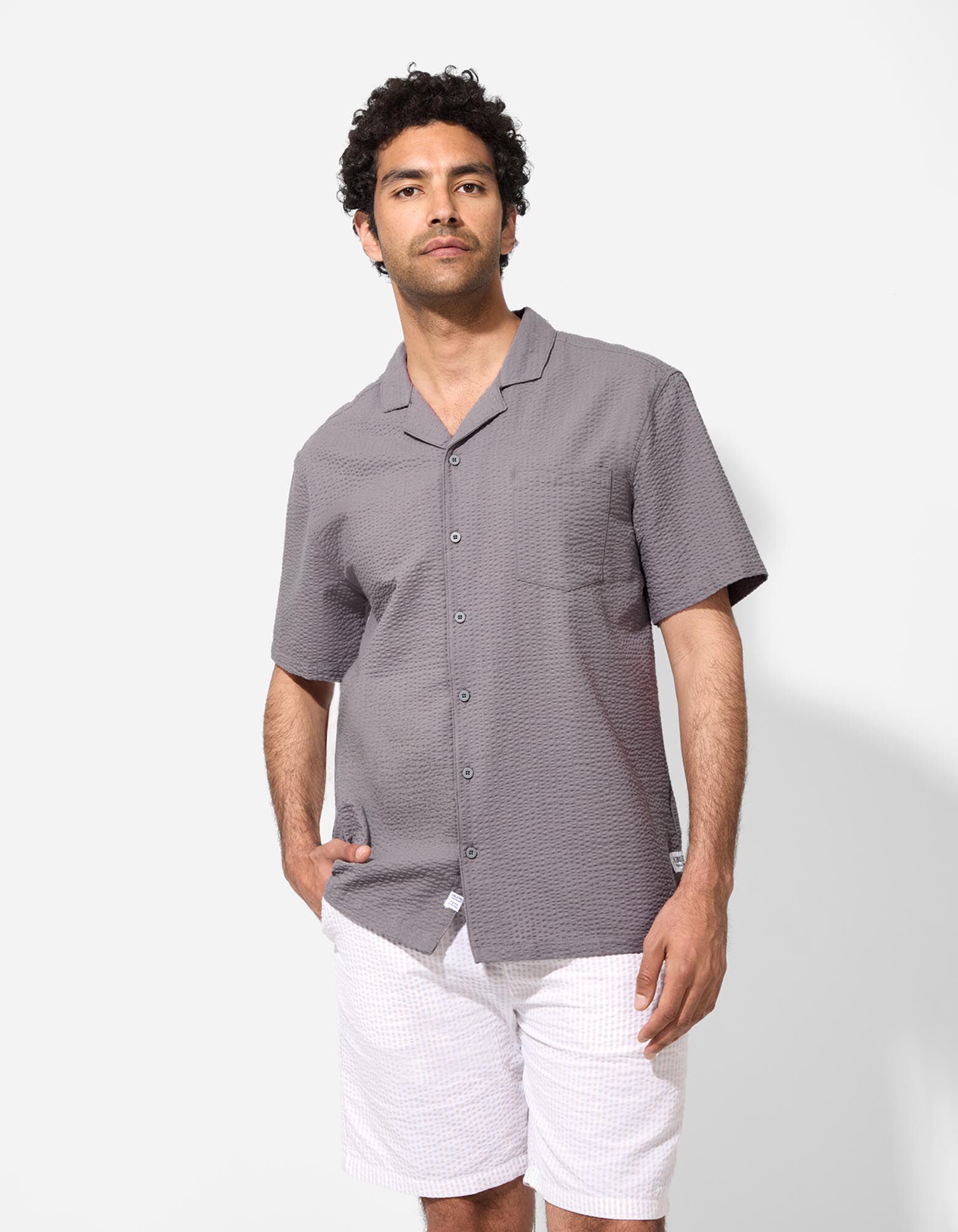 koszula - Seersucker - bez