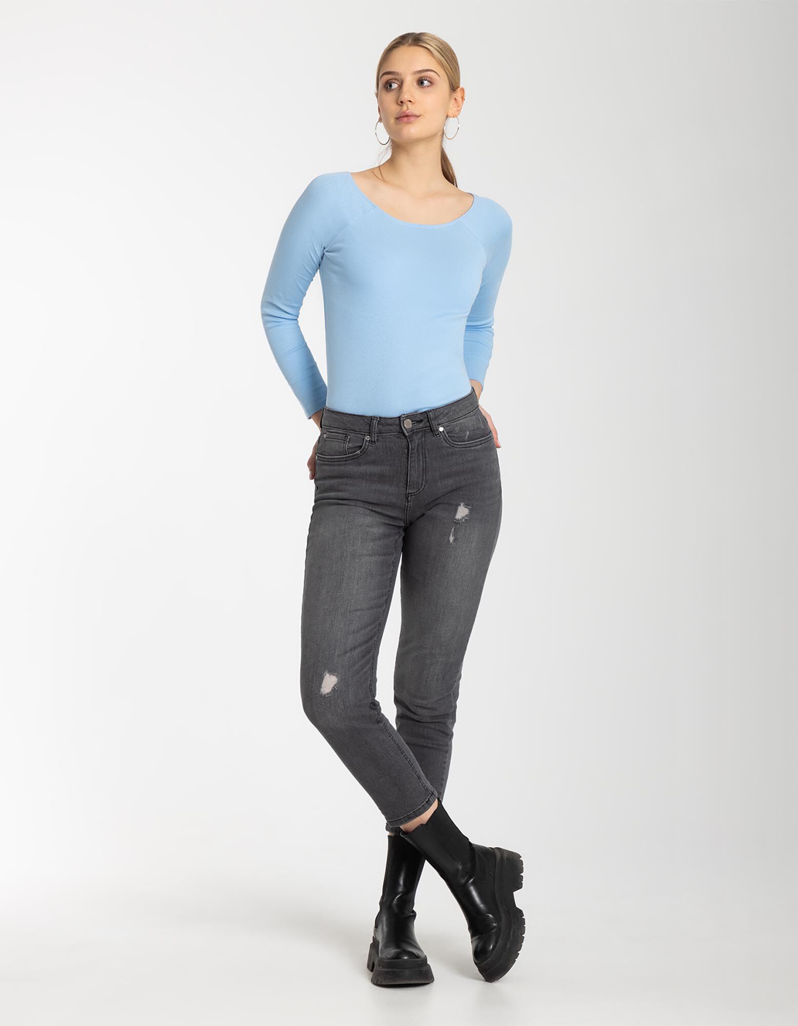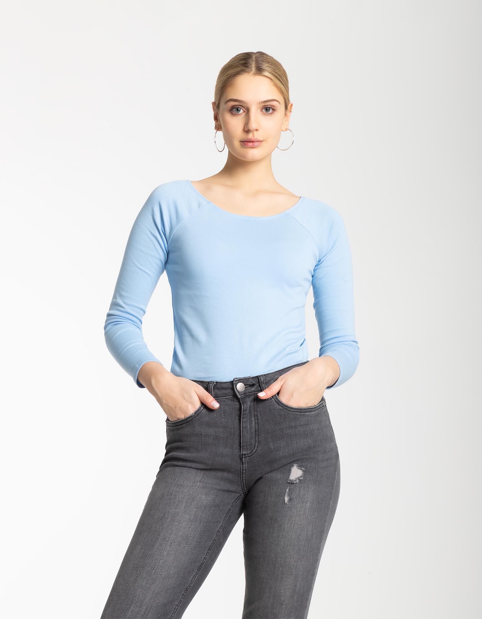 koszulka z długim rękawem - okrągły dekolt - jasny niebieski