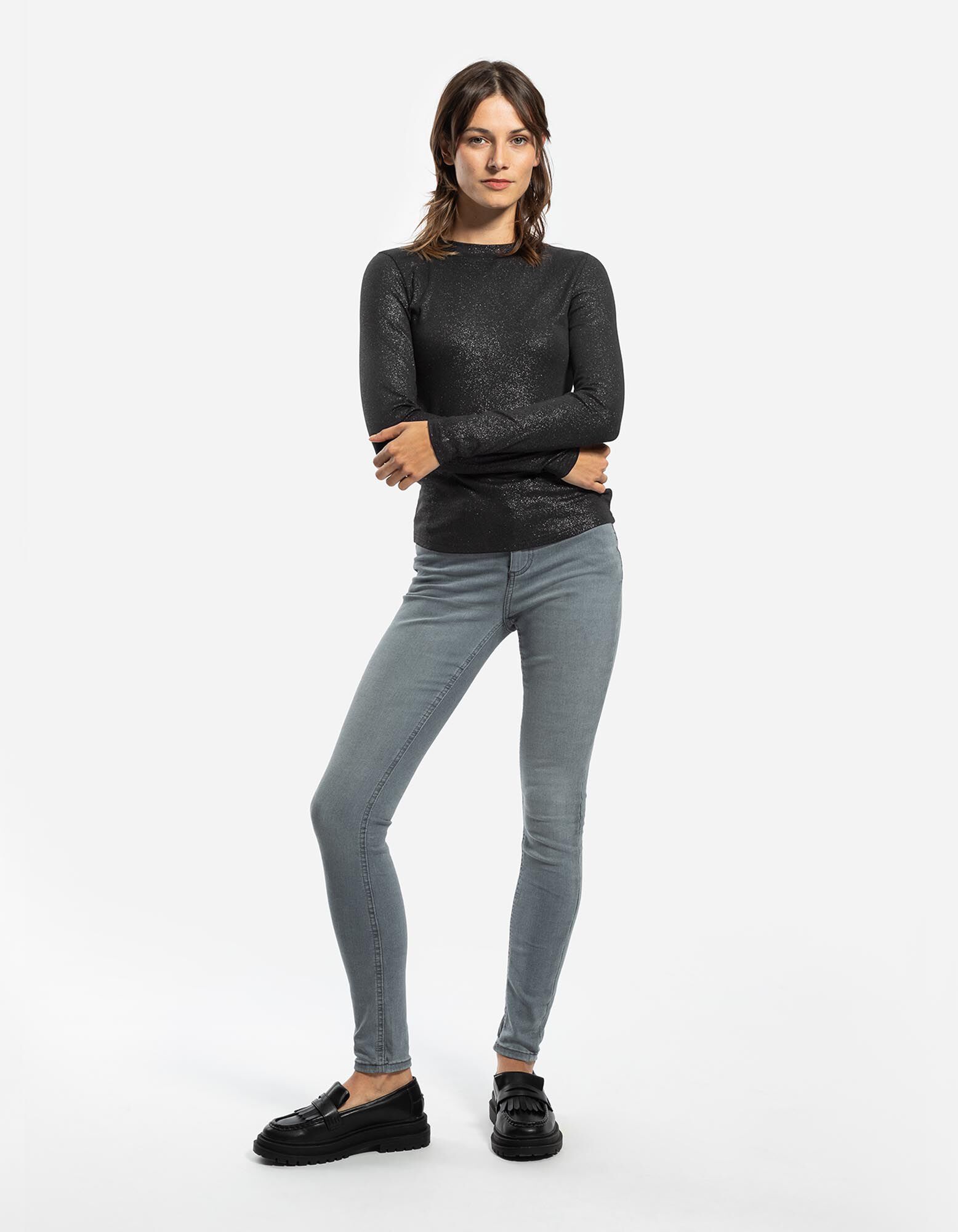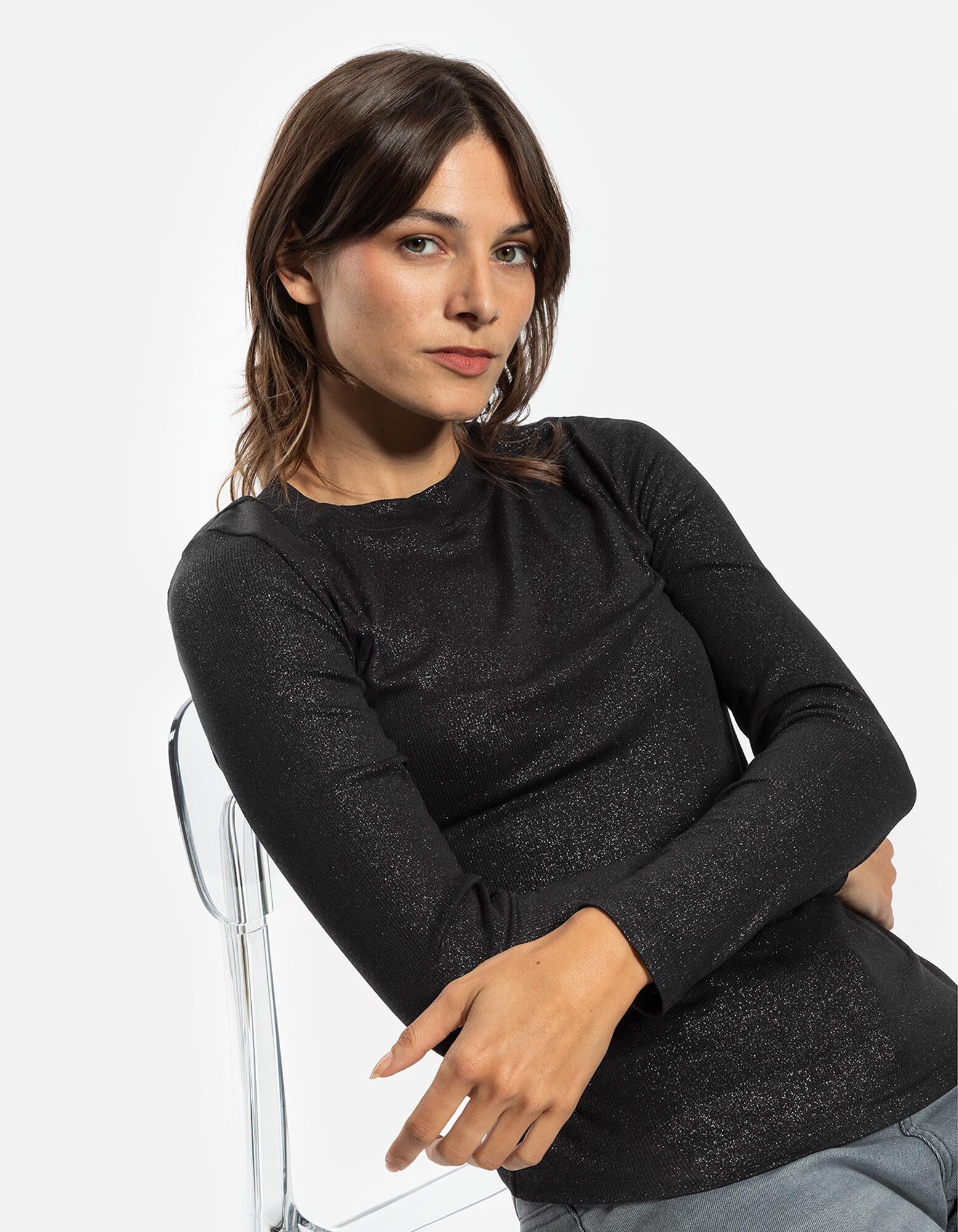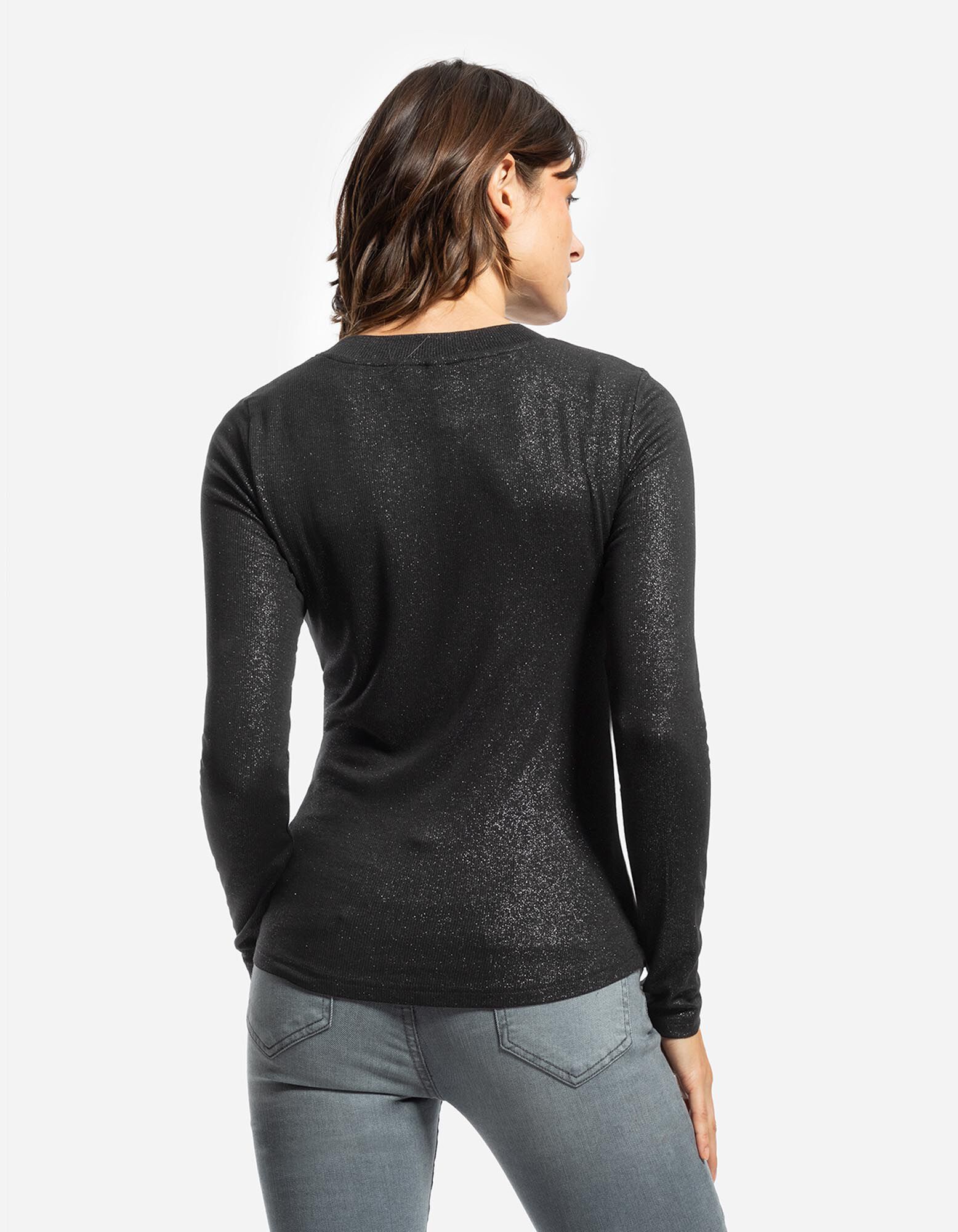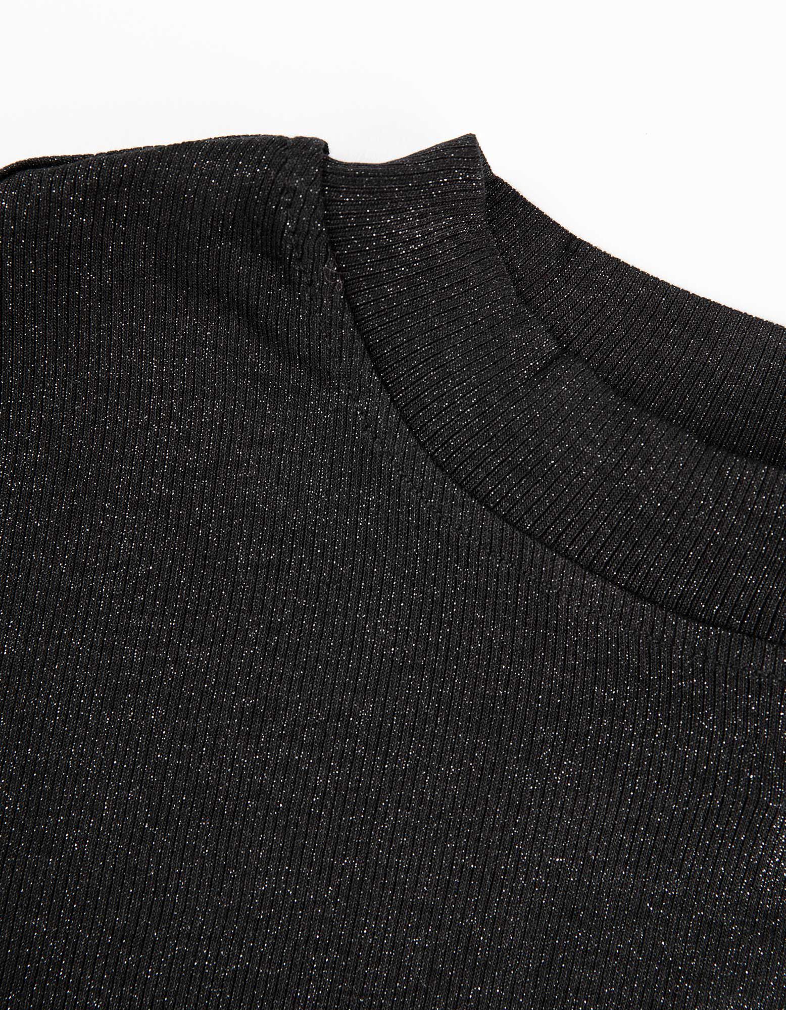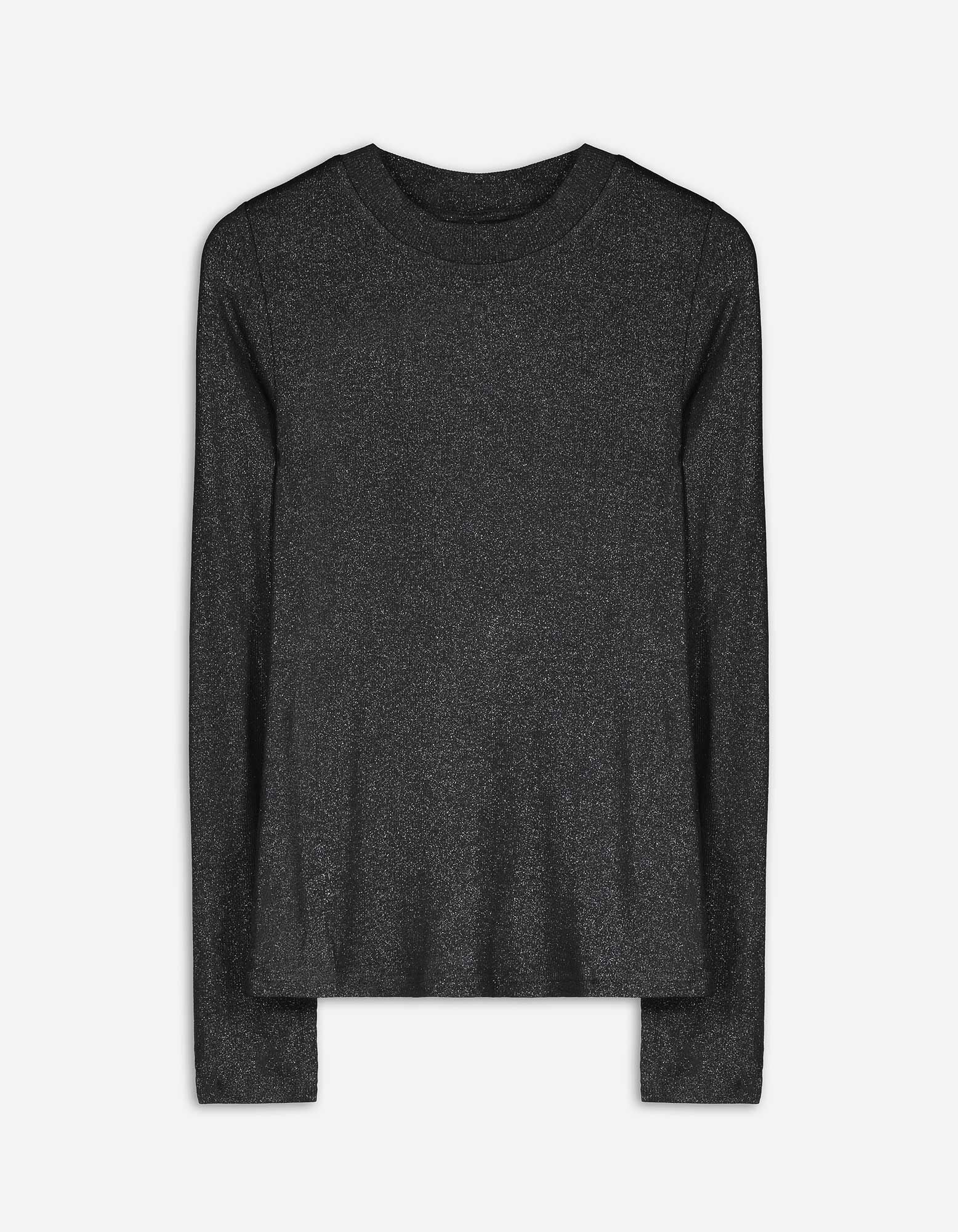koszulka z długim rękawem - materiał brokatowy - czarny