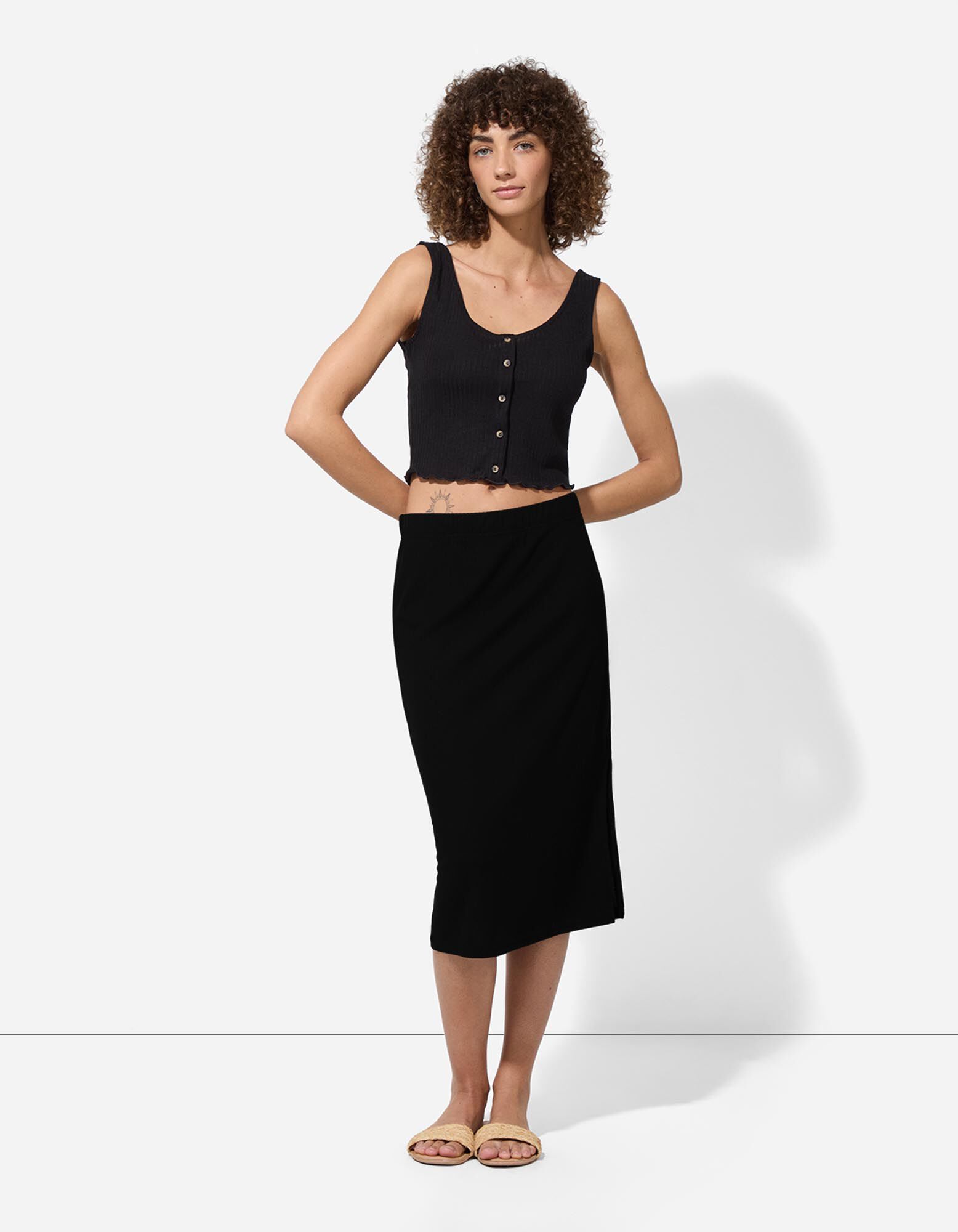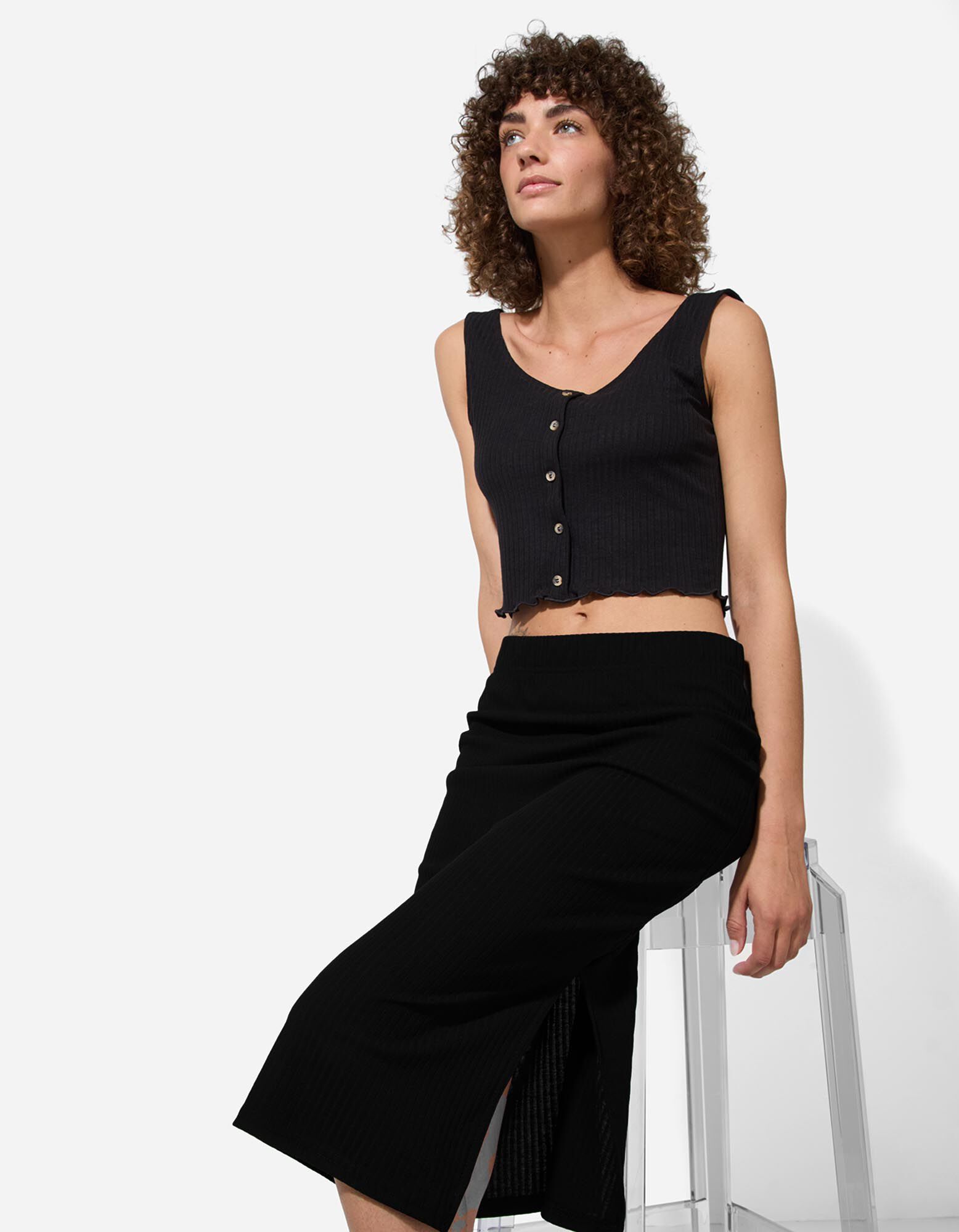 spódnica - prążkowana faktura - czarny