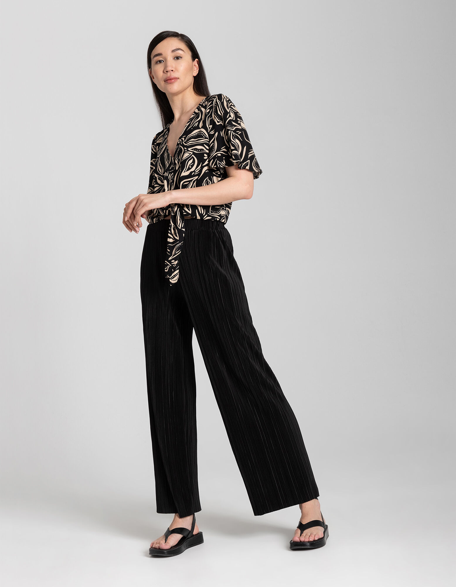 spodnie palazzo - elastyczny pas - czarny