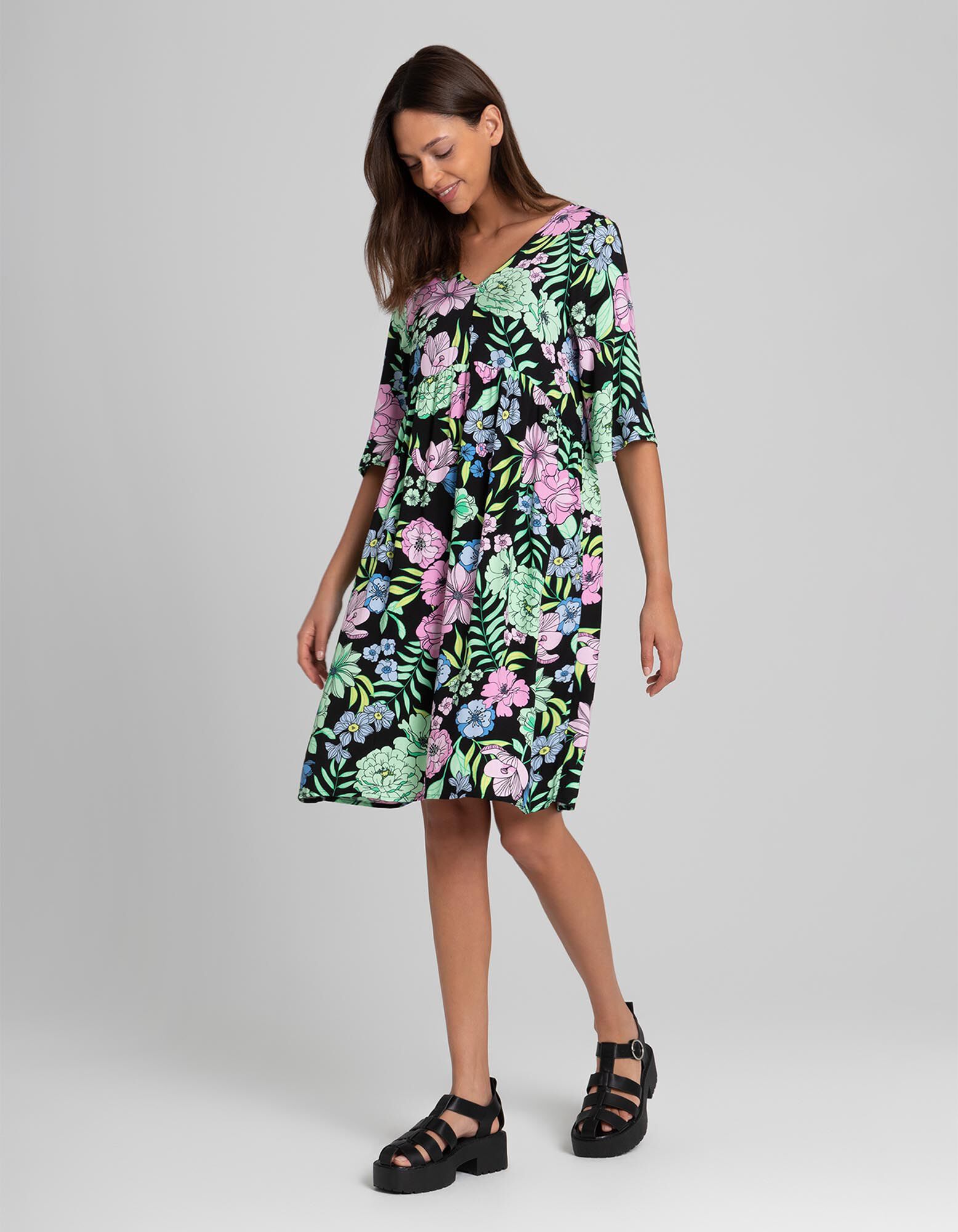 sukienka midi - LENZING™ ECOVERO™ - czarny