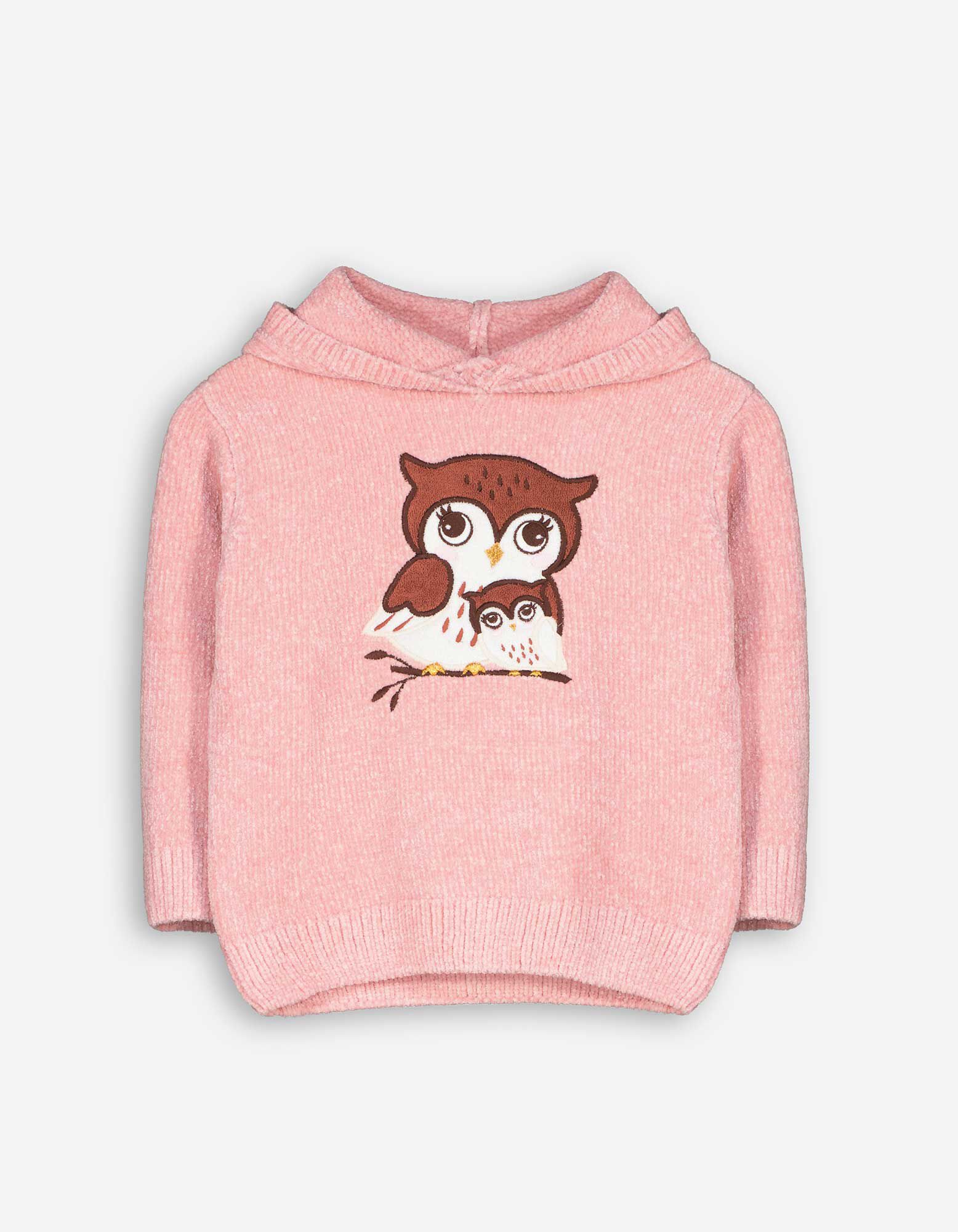 Sweter z dzianiny - hafty - rozowy
