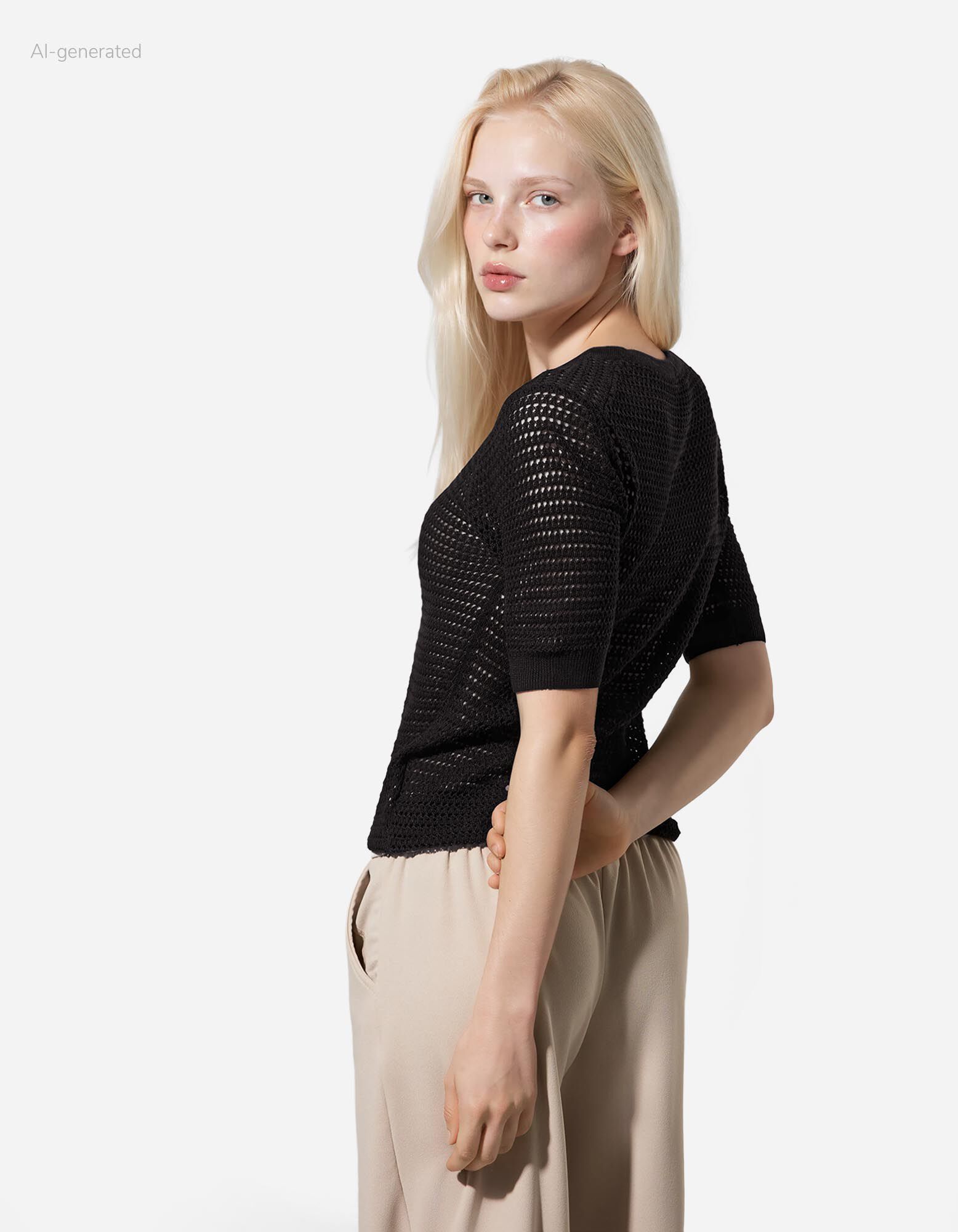 Sweter z dzianiny - Mieszanka bawełny - czarny