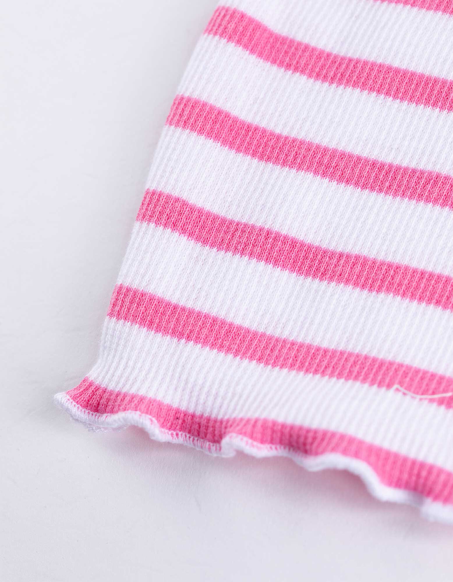 T-shirt - prążkowana faktura - rozowy