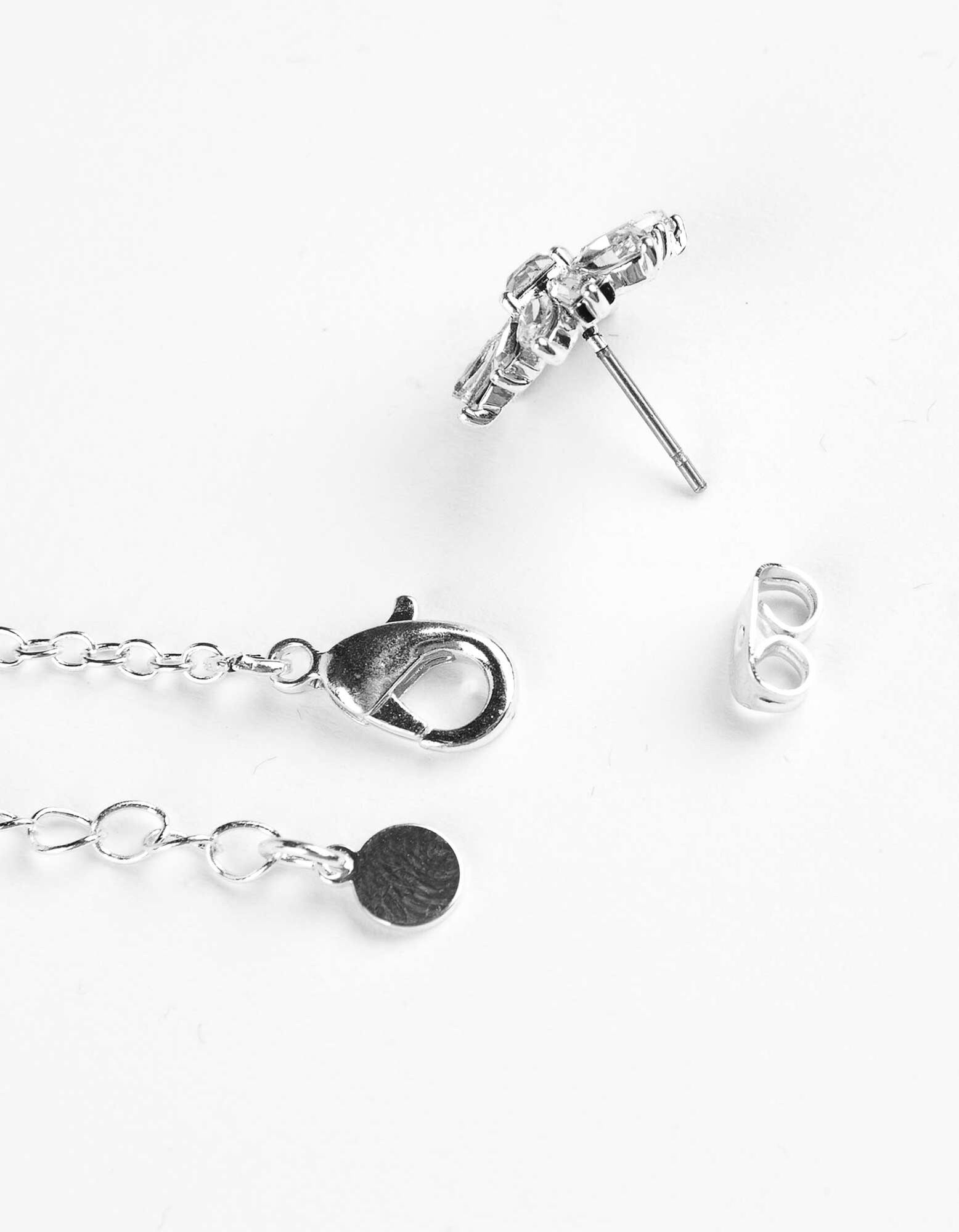Zestaw naszyjnika i kolczyka - ozdobne kamyki - srebrny