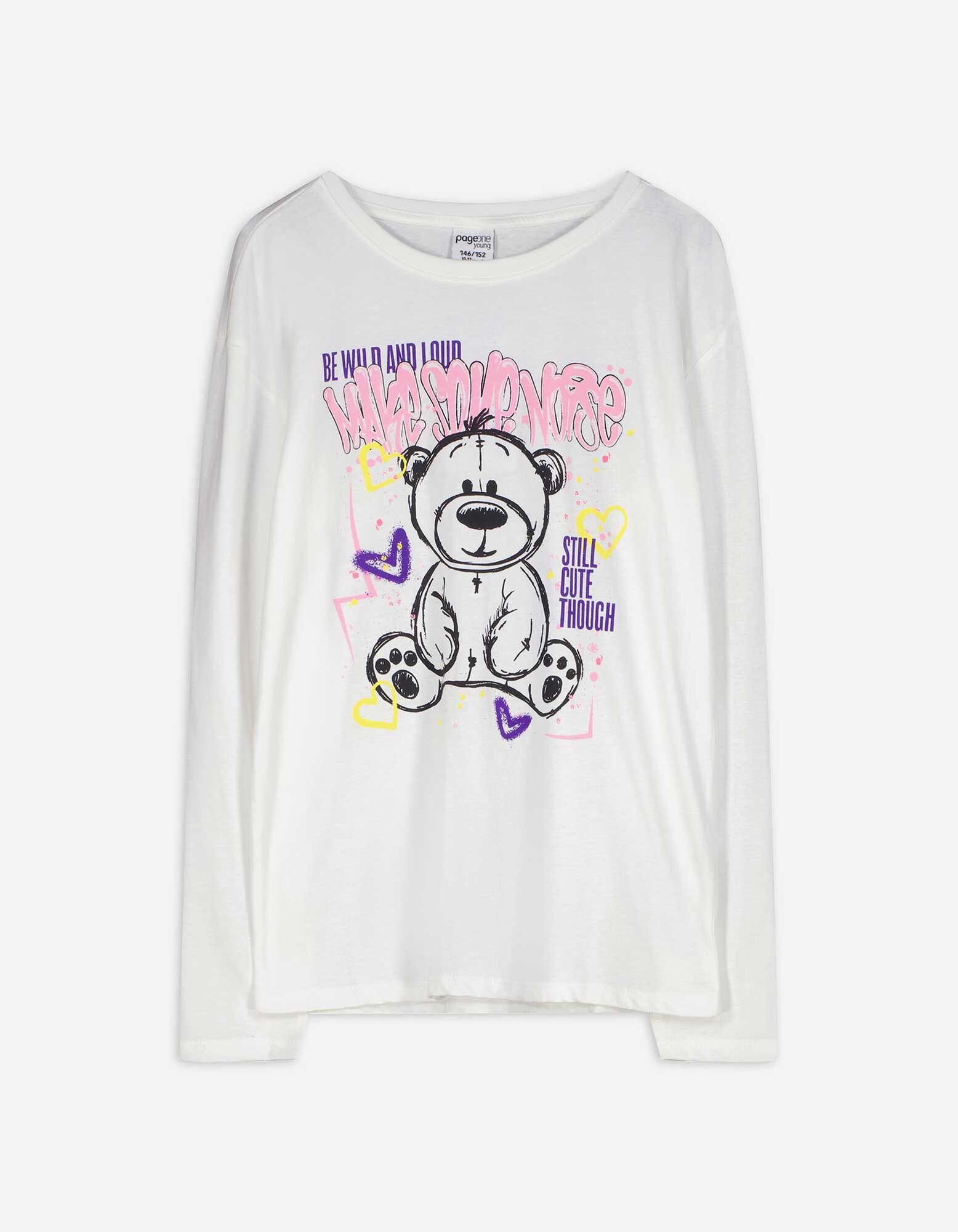 Bluză de corp cu mânecă lungă - Imprimeu sclipici - Alb