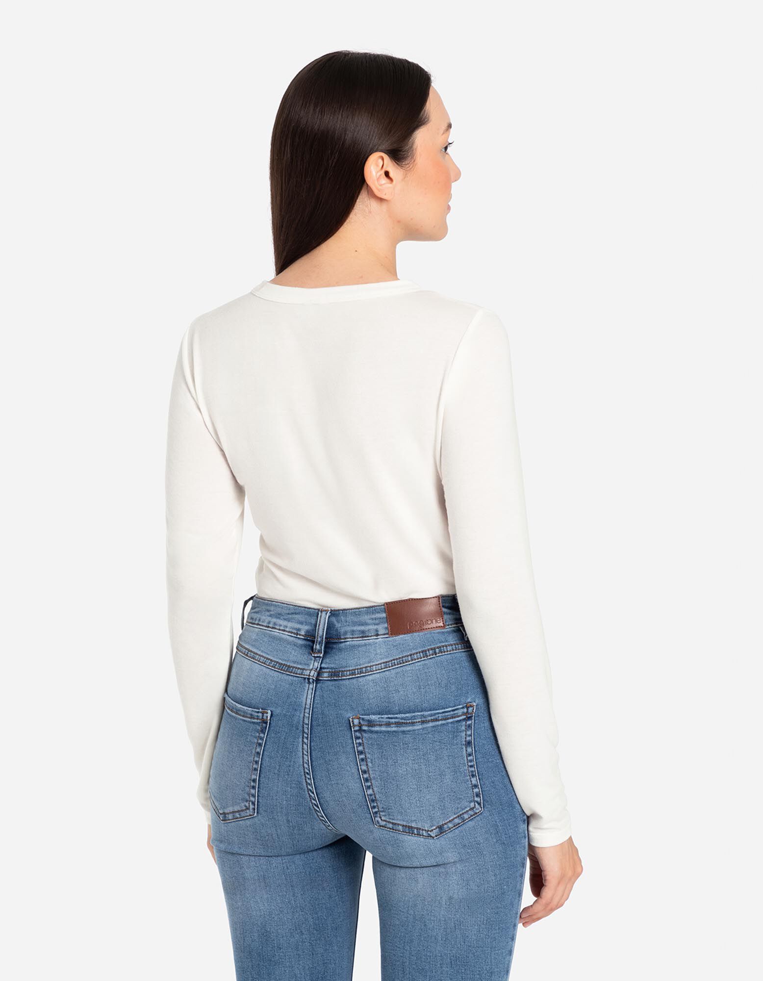 Bluză de corp cu mânecă lungă - Conținut de viscoză - Alb