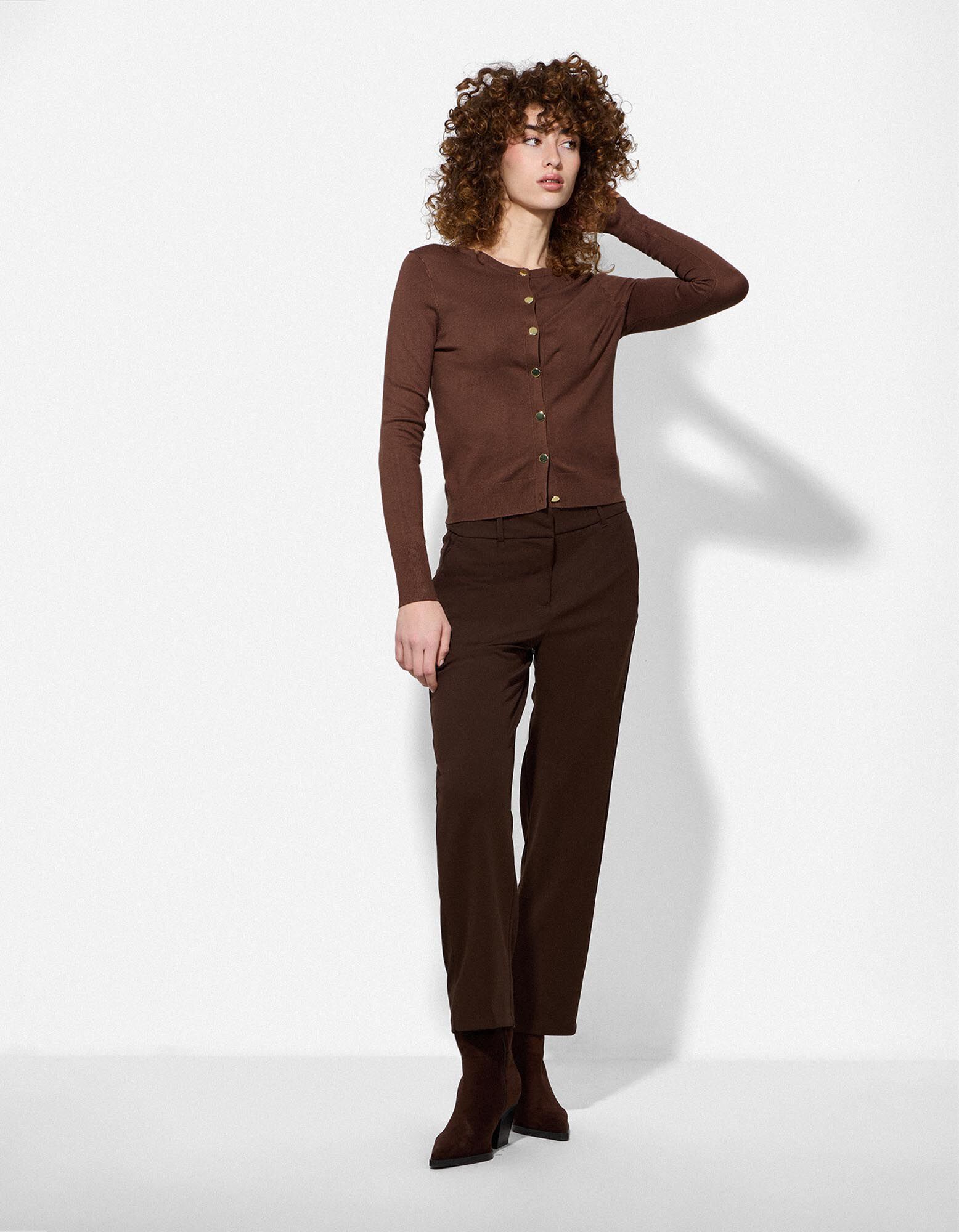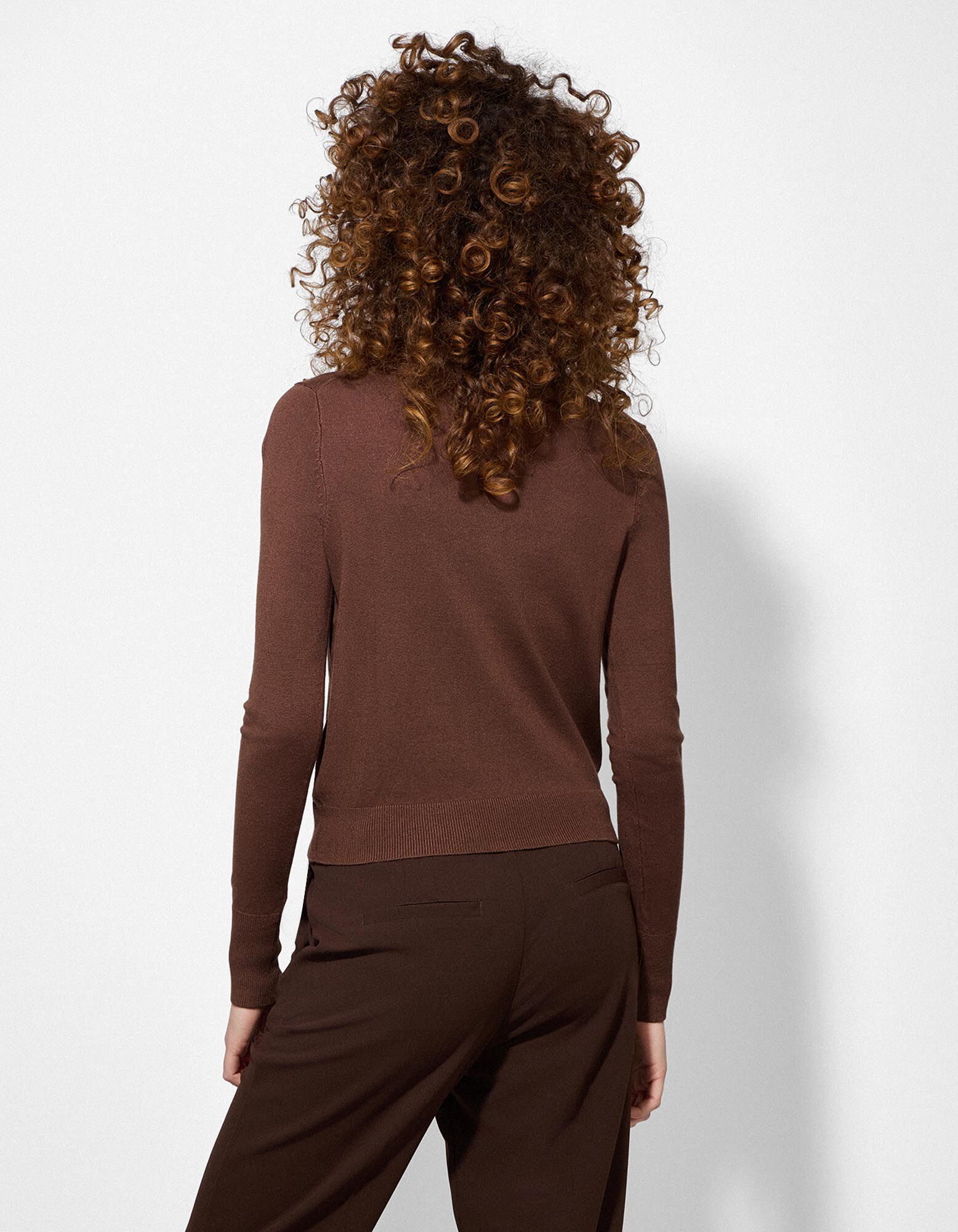Cardigan - Bandă de nasturi - Maro