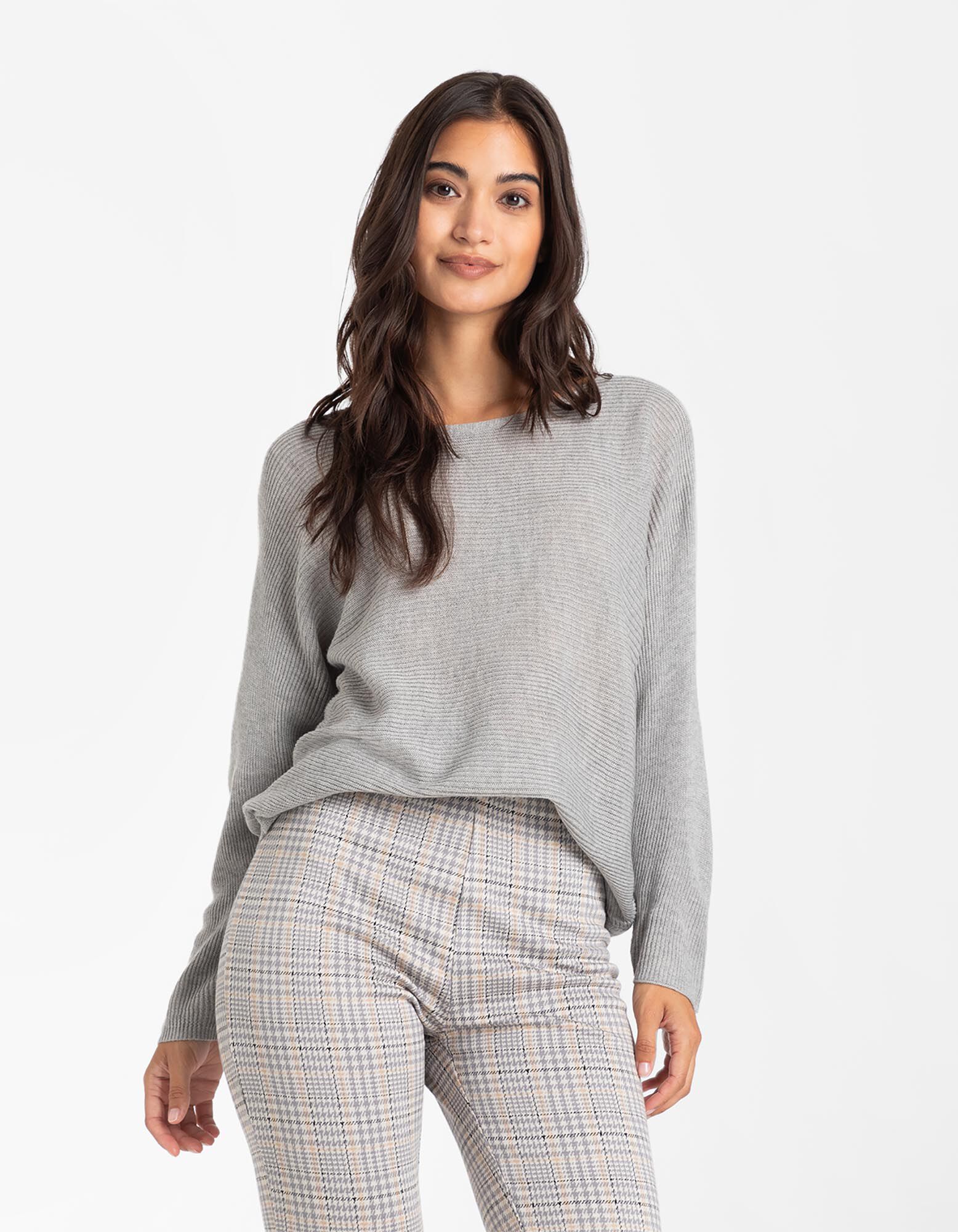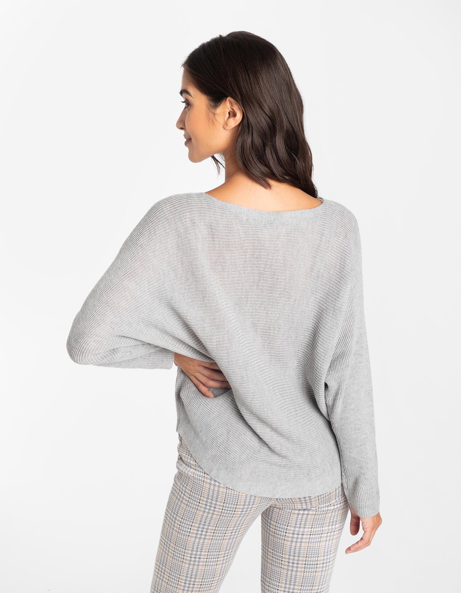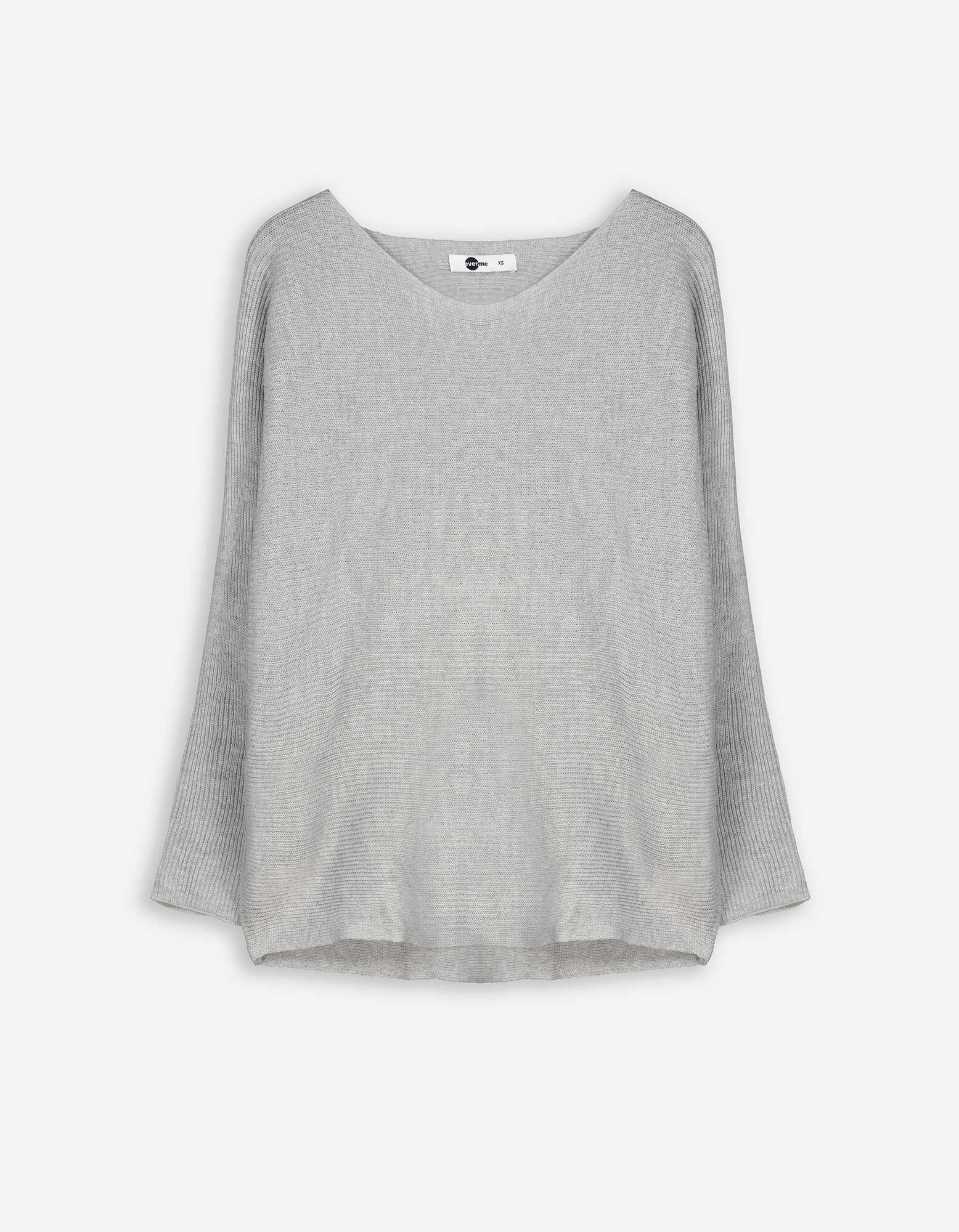 Pulover de tricot - Mâneci supradimensionate - Gri