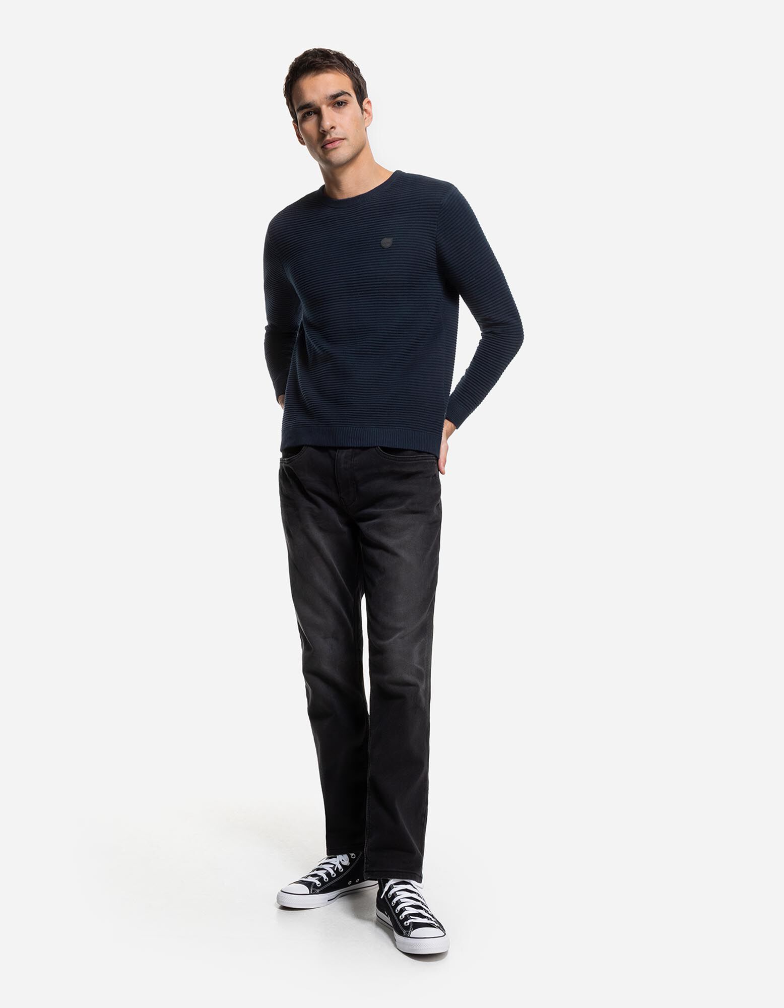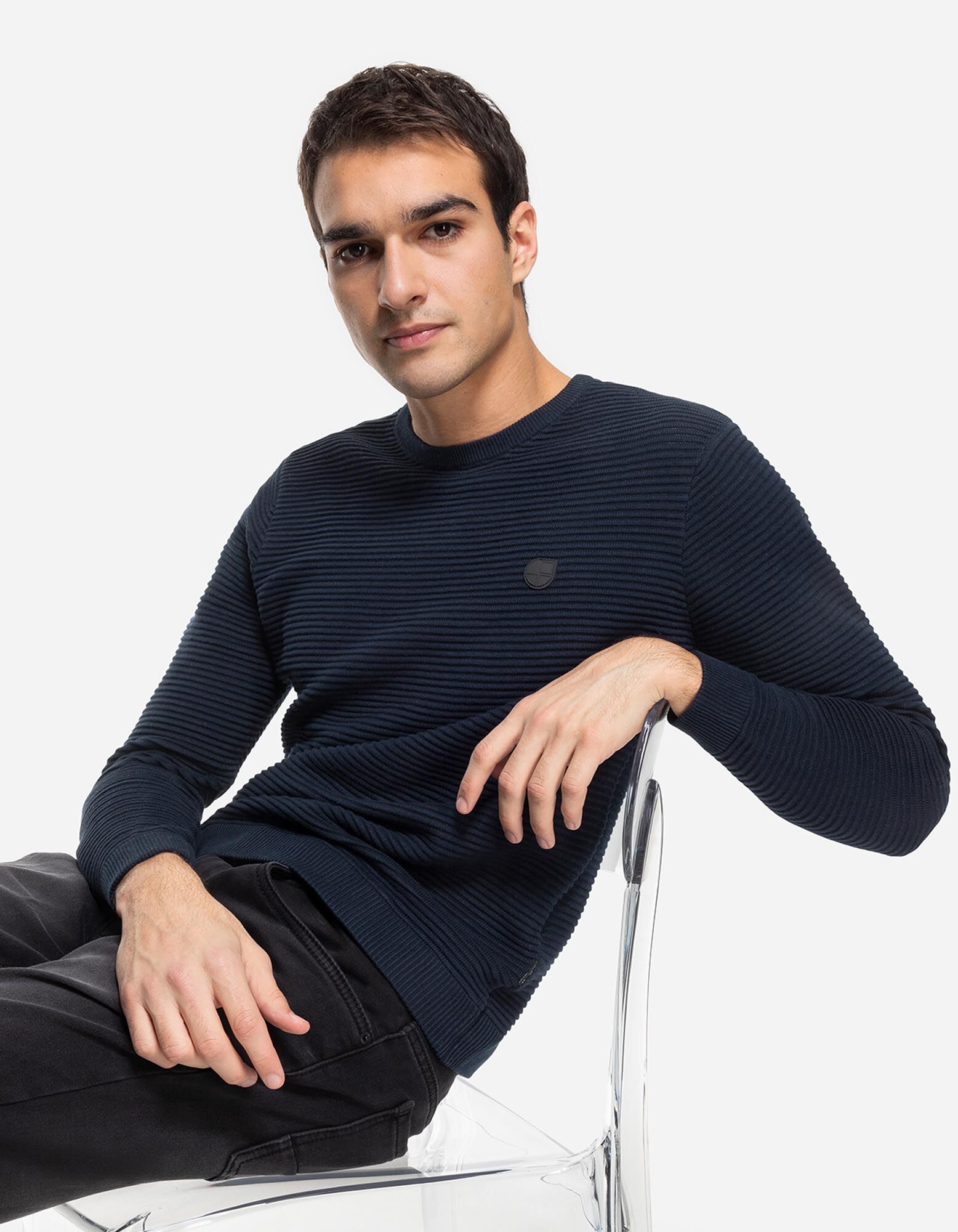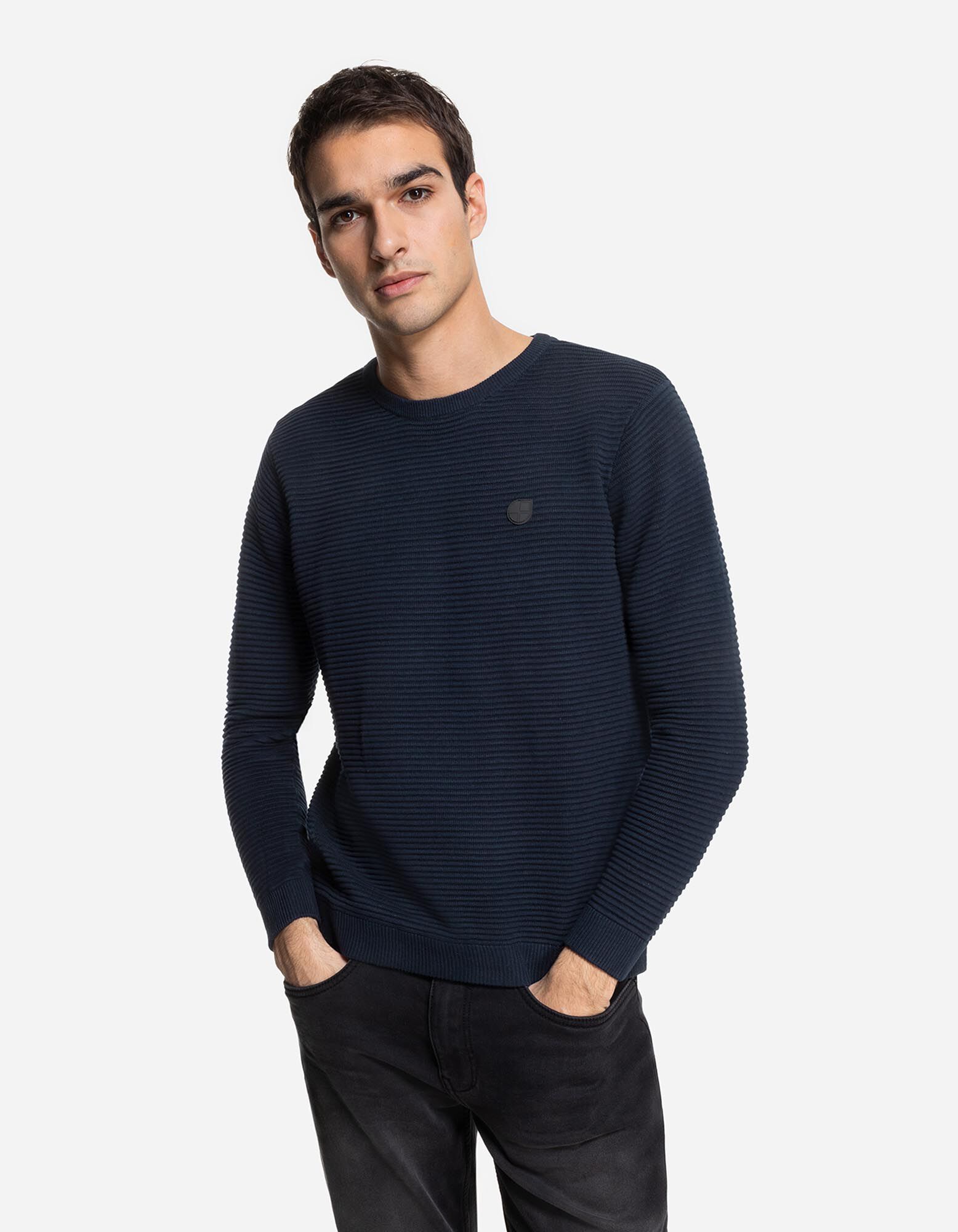 Pulover - Patch de etichetă - Albastru inchis