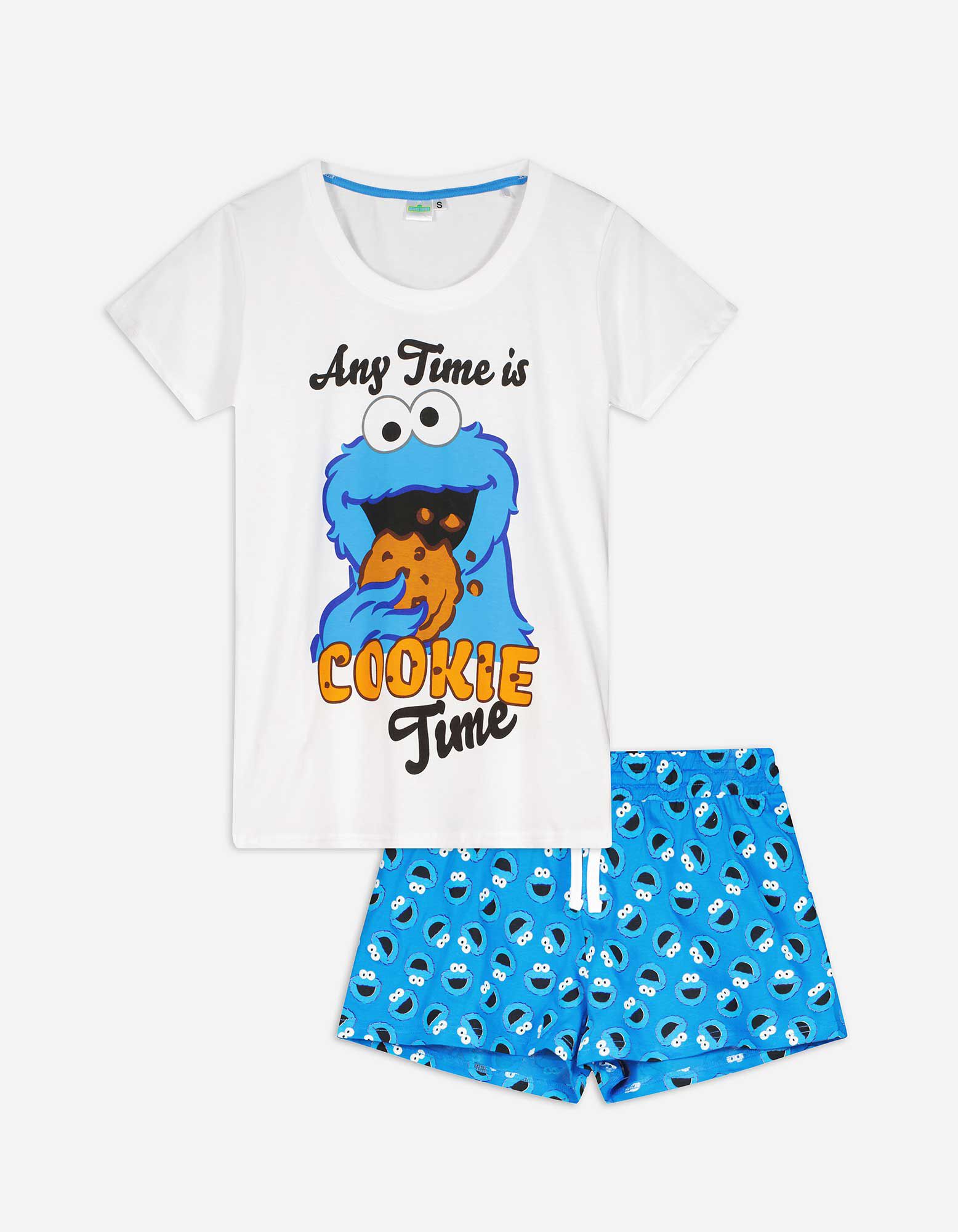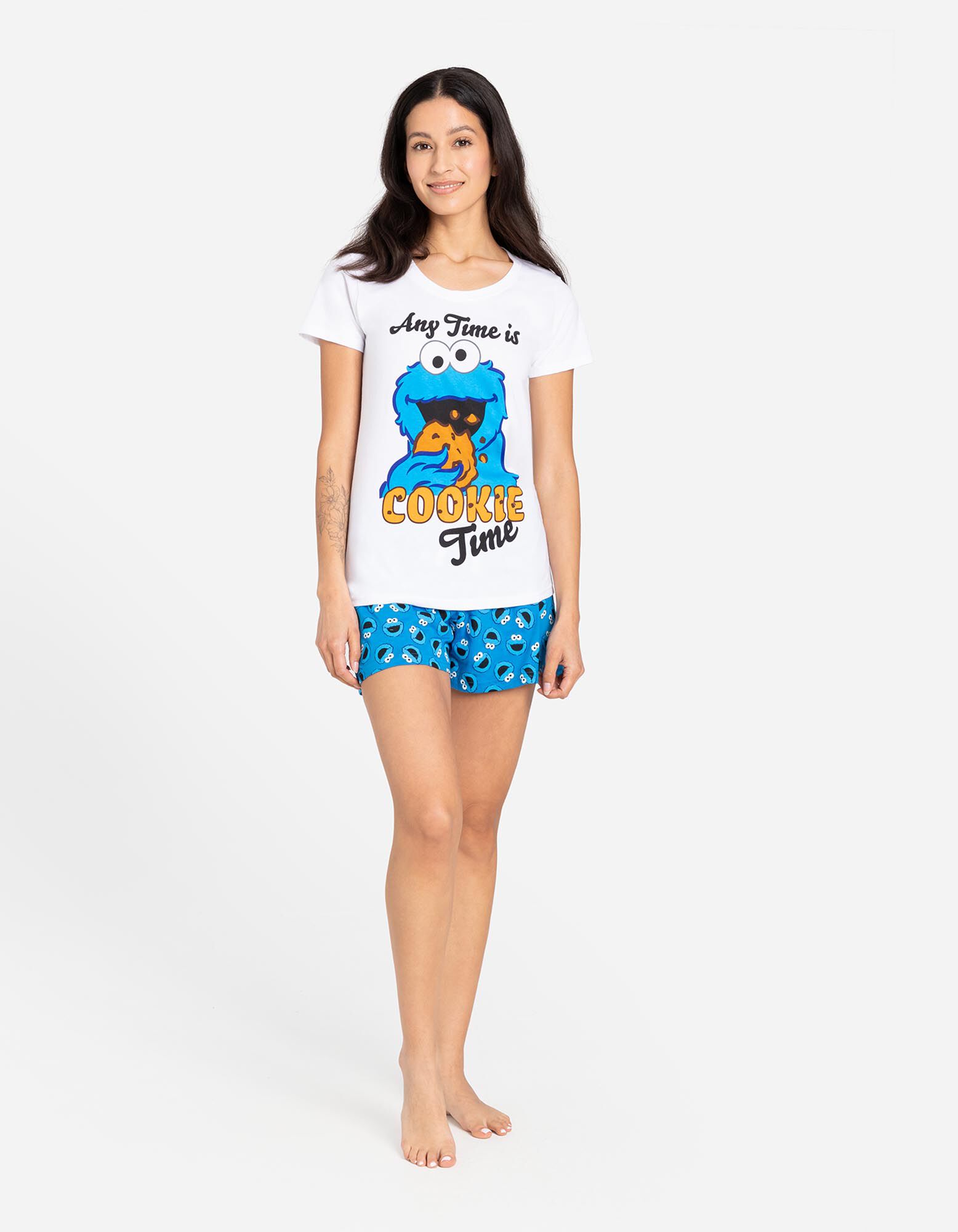 Set pijama alcătuit din bluză și pantaloni scurți - Cookie Monster - Alb