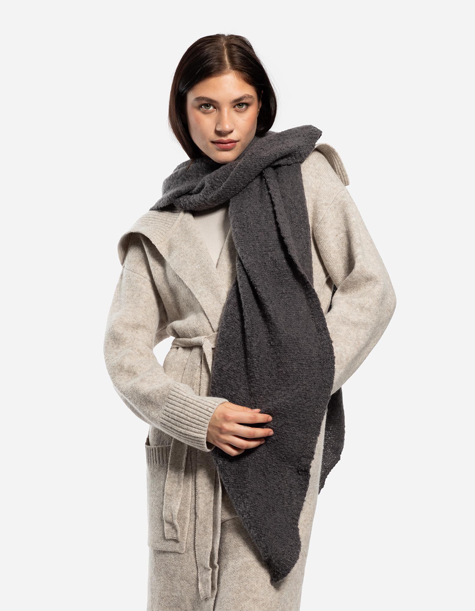 Šál - Vlnený vzhľad - tmavoseda
