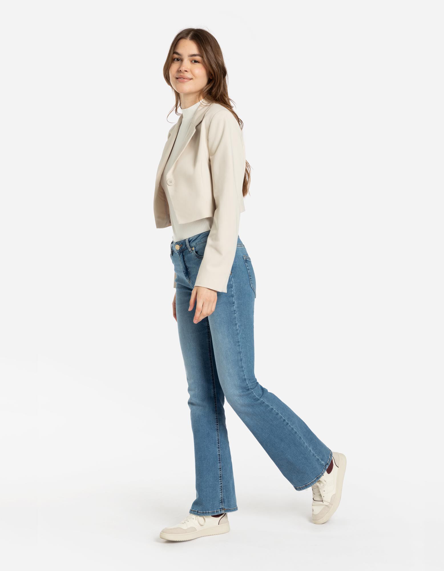 Naša modelka je vysoká 175 cm a nosí veľkosť 36.