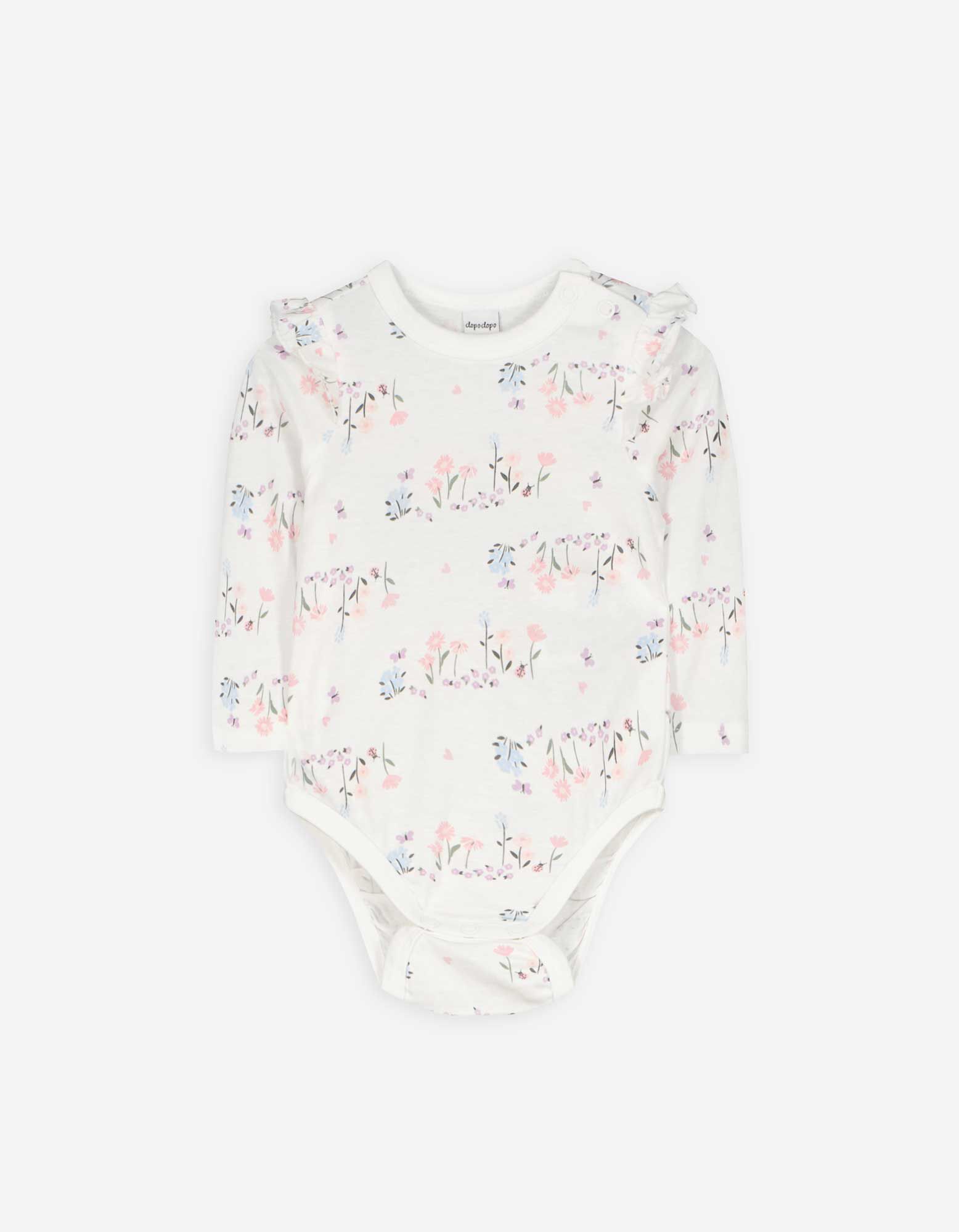Body s dlhým rukávom - Kvetovaný vzor - biely
