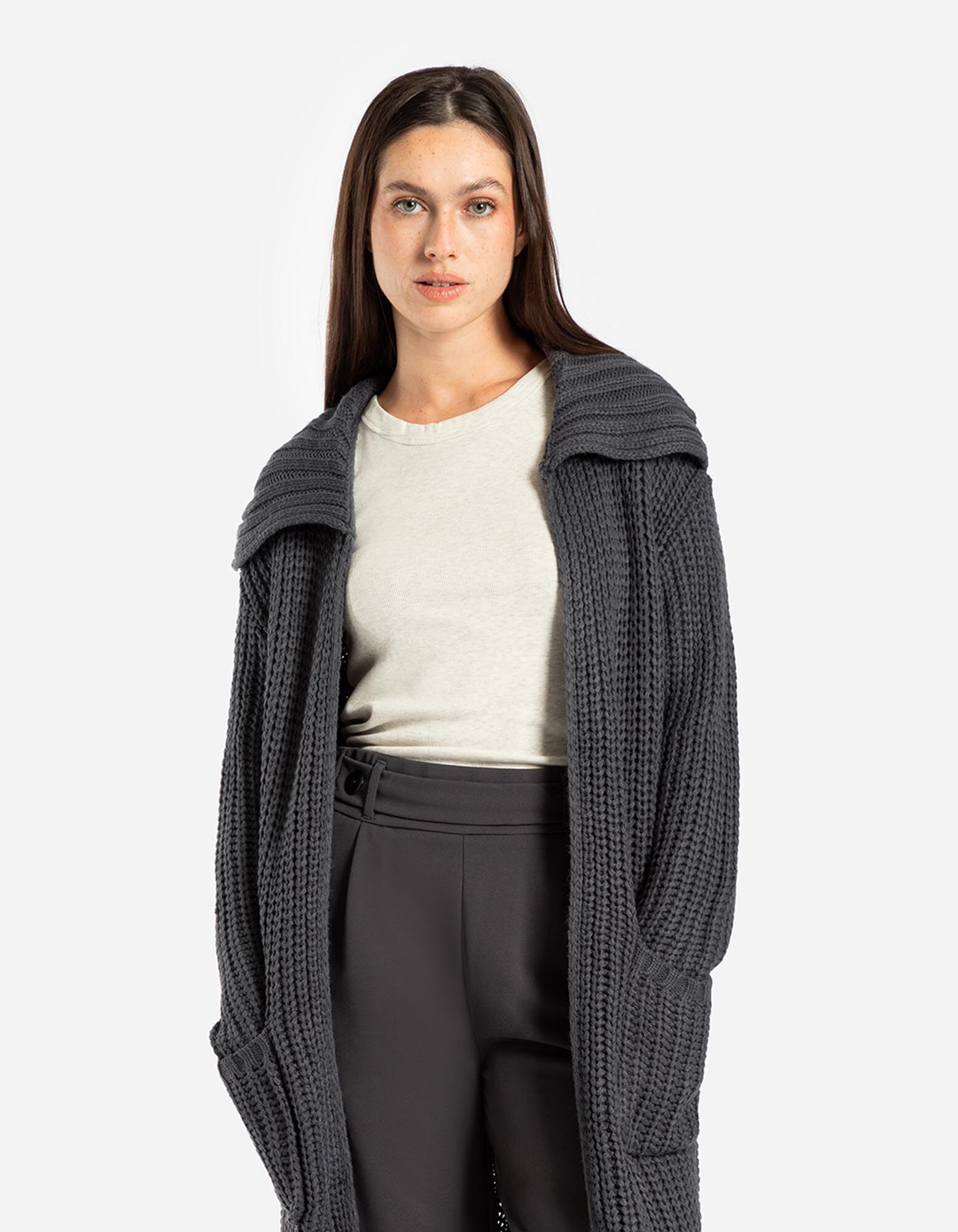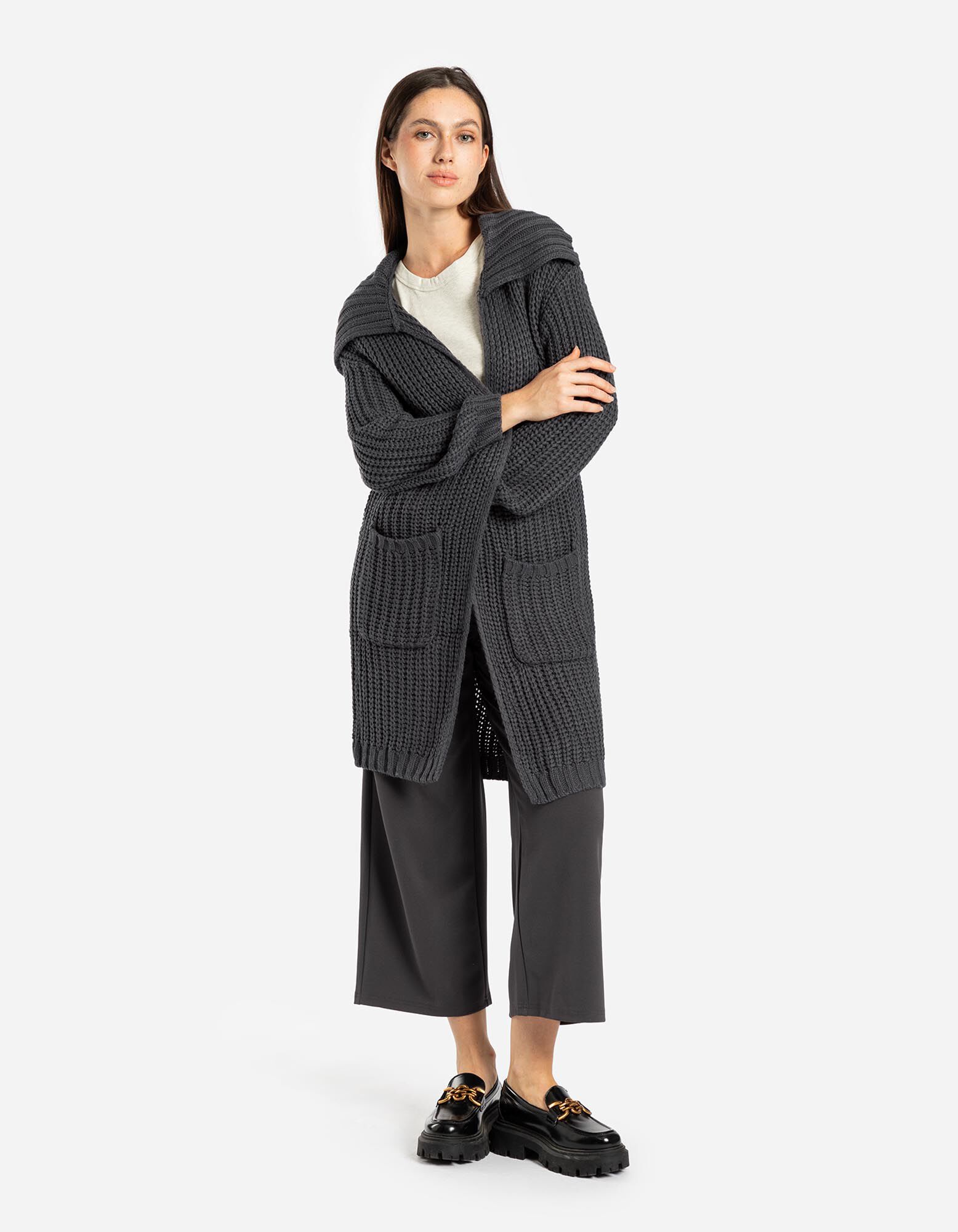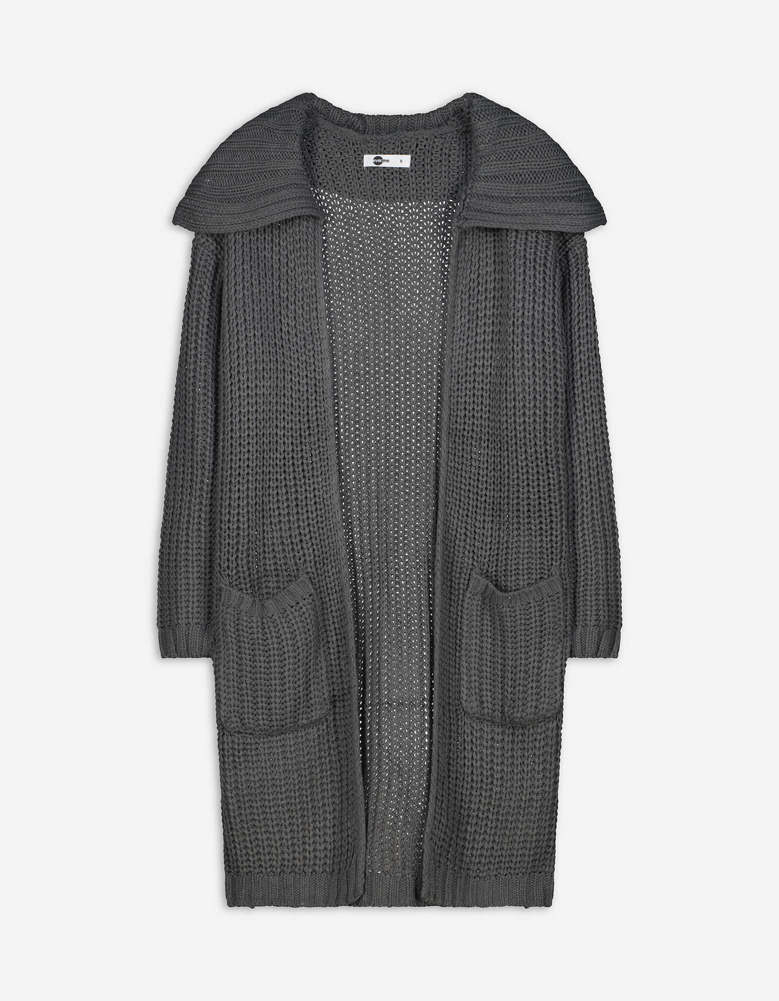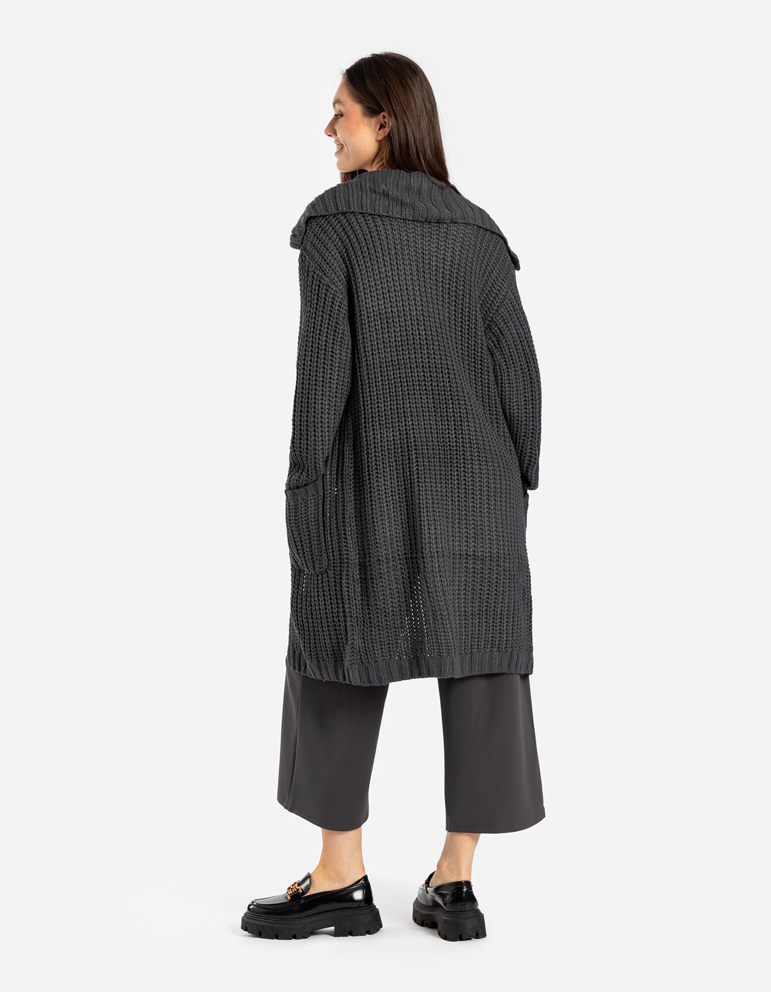 Dlhý kardigán - Hrubý úplet - tmavoseda