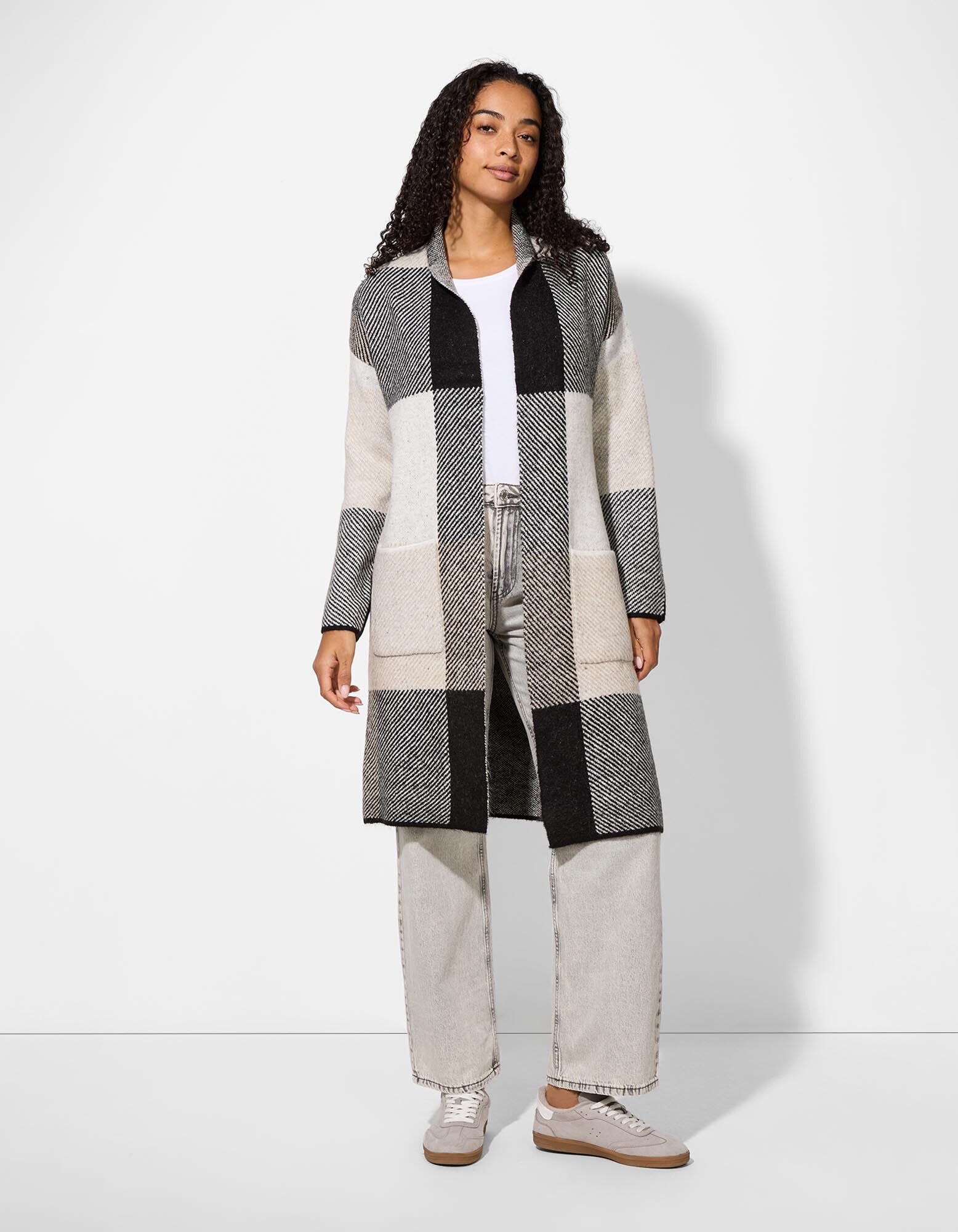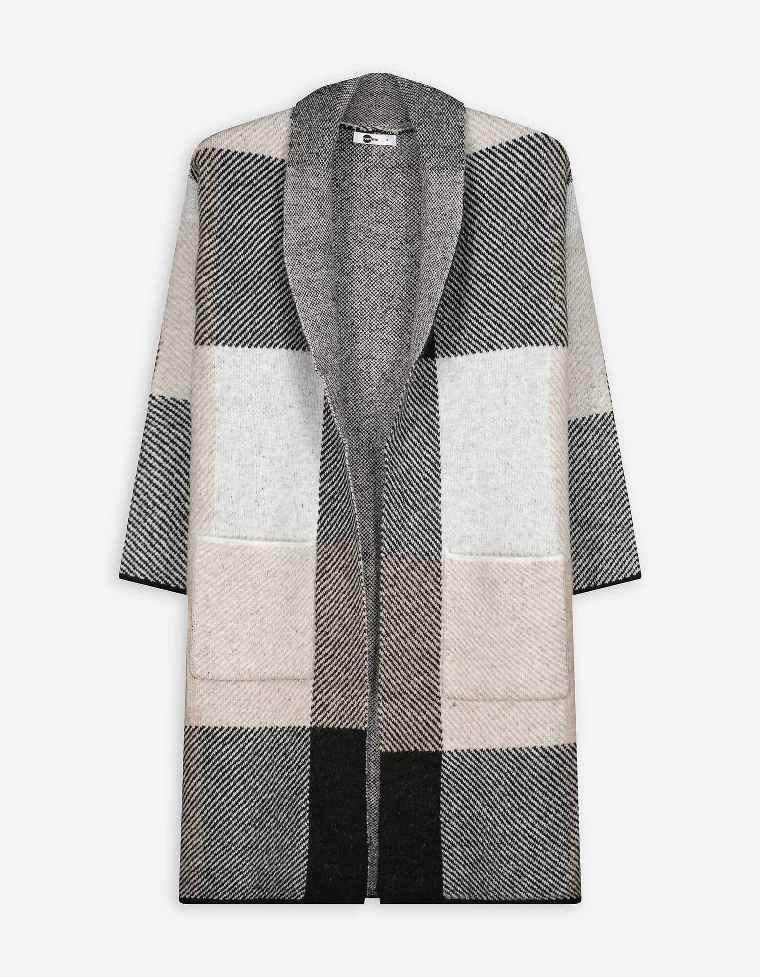 Dlhý kardigán - Károvaný vzor - biely