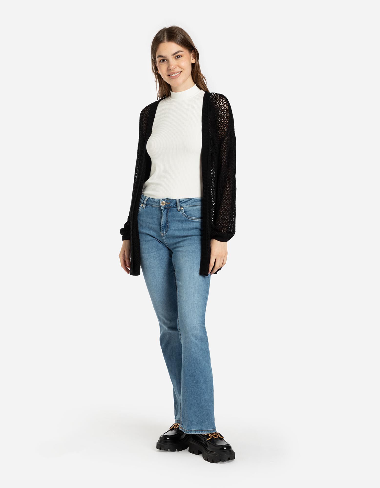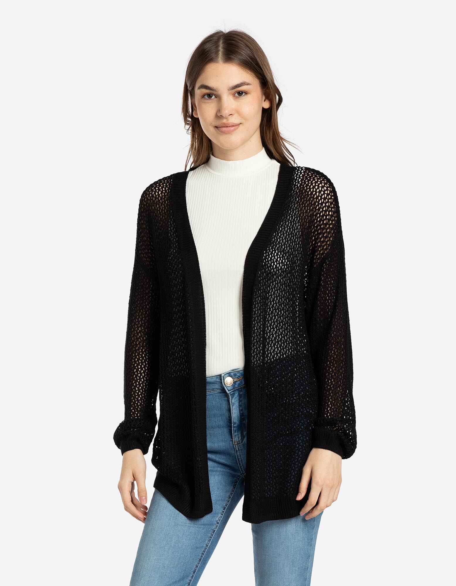 Kardigán - Perforovaný úplet - cierna