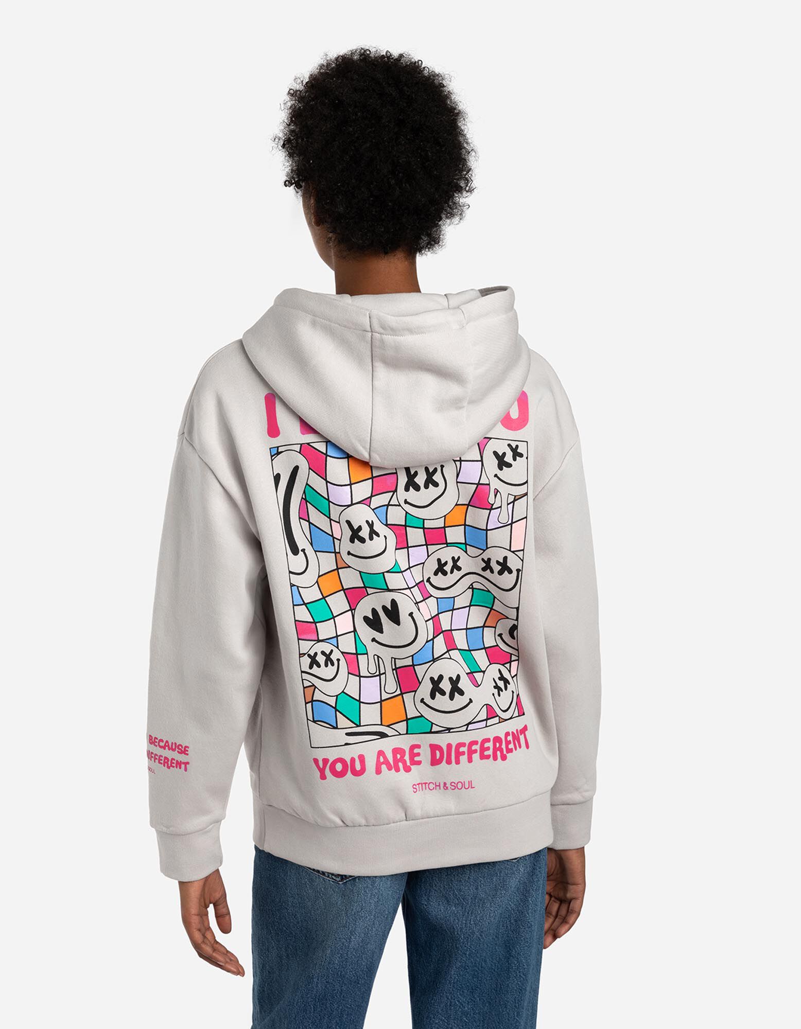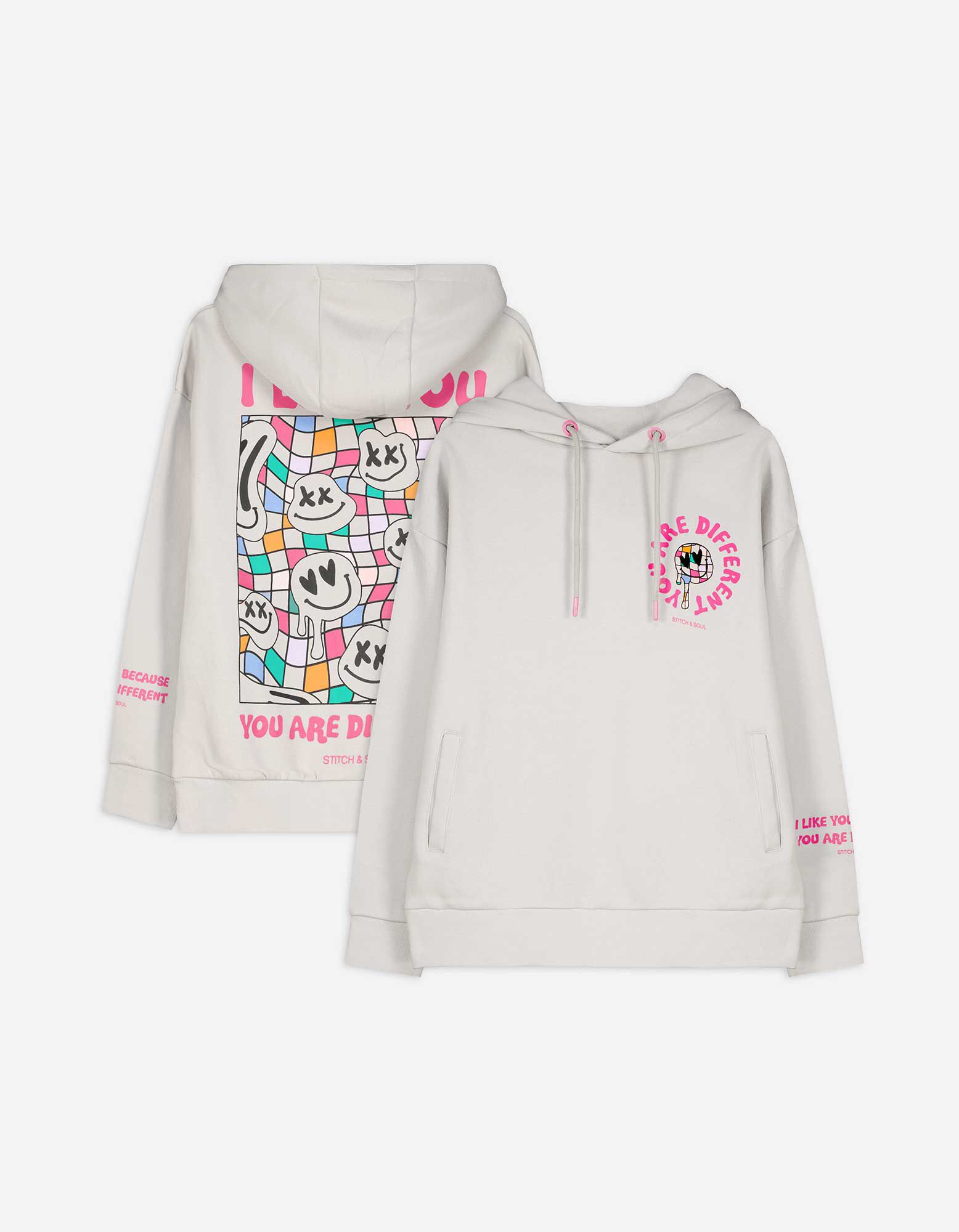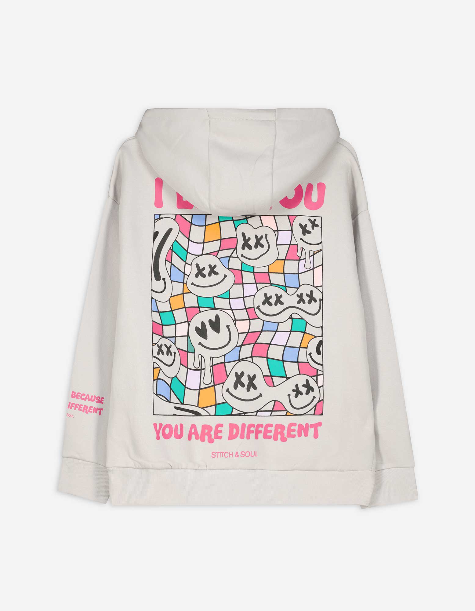 Mikina s kapucňou - Zadný výtlačok - bezova