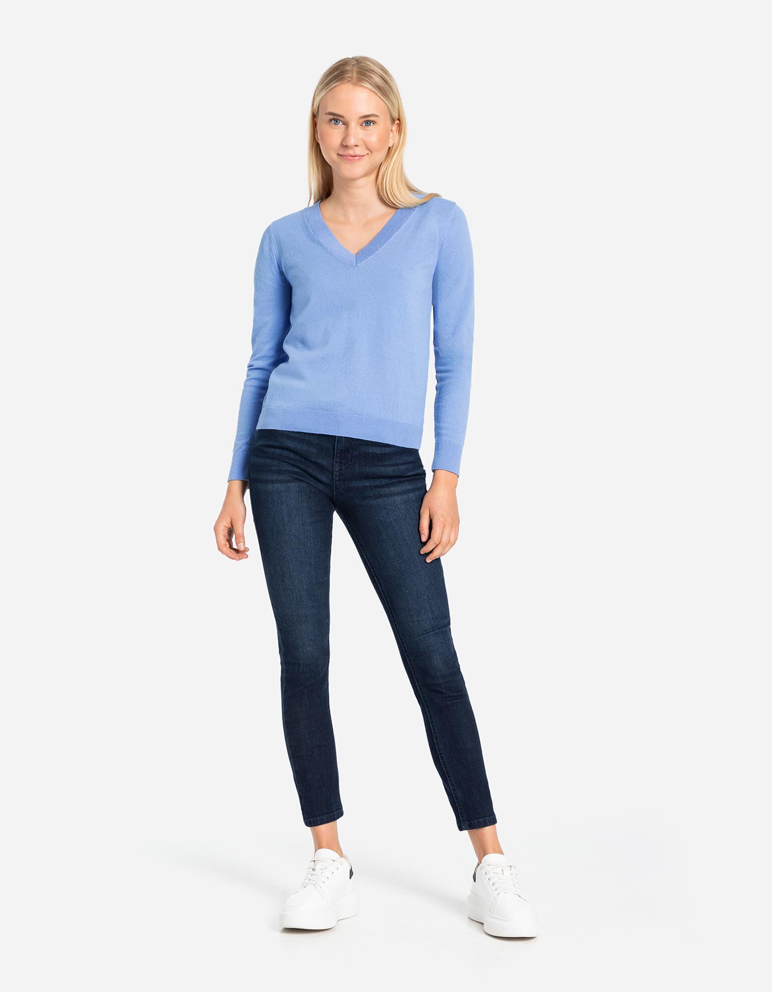 Pletený sveter - Vlnený vzhľad - svetlomodra