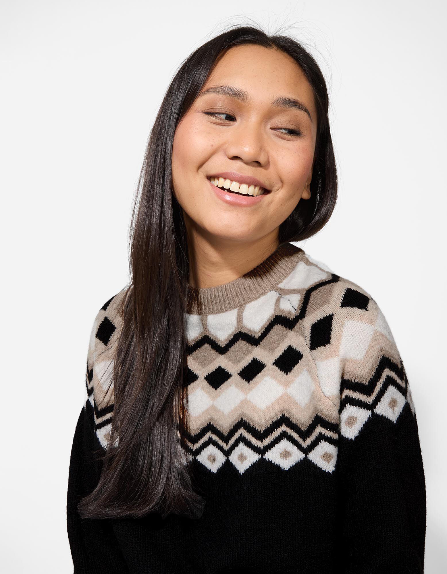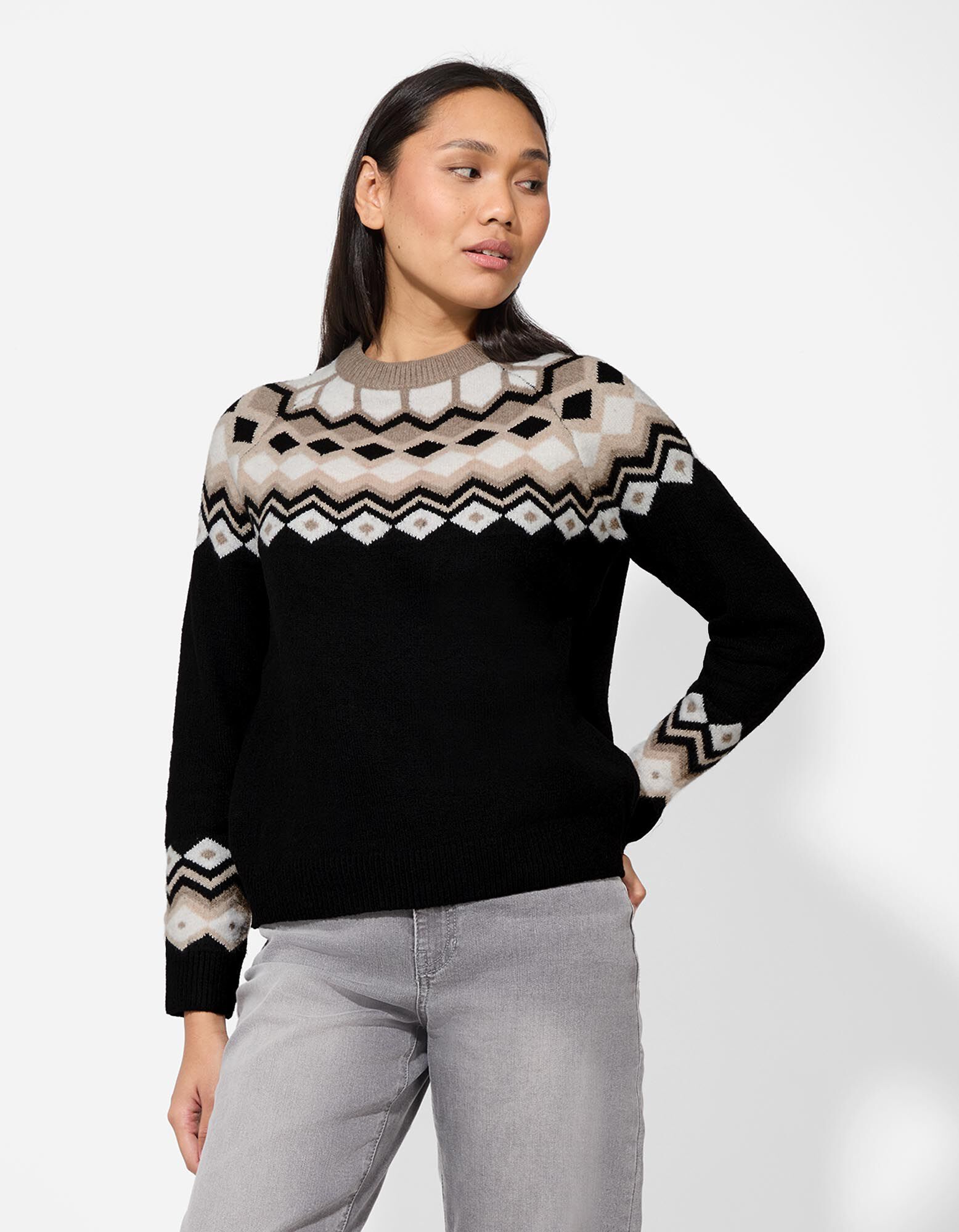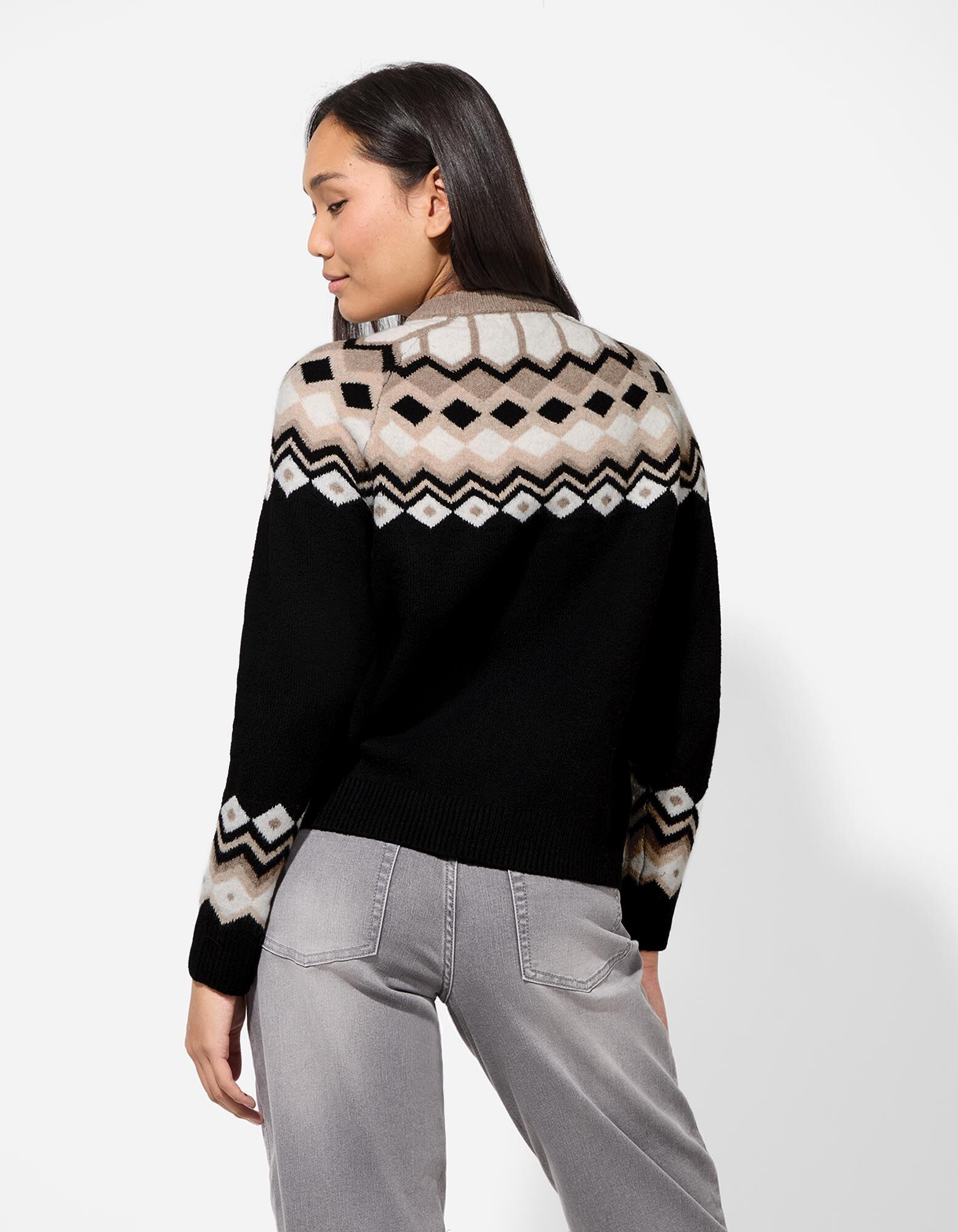 Pletený sveter - Károvaný vzor - cierna