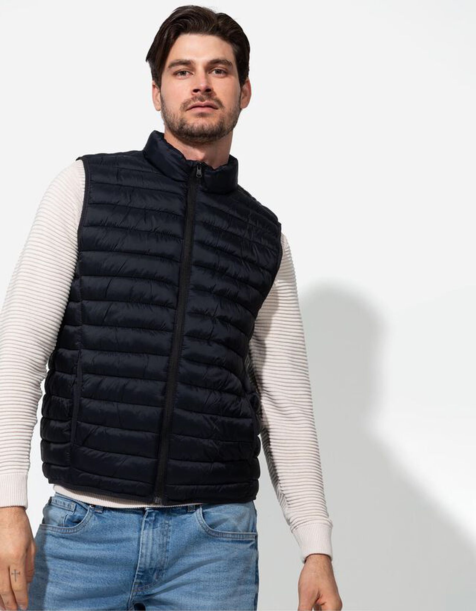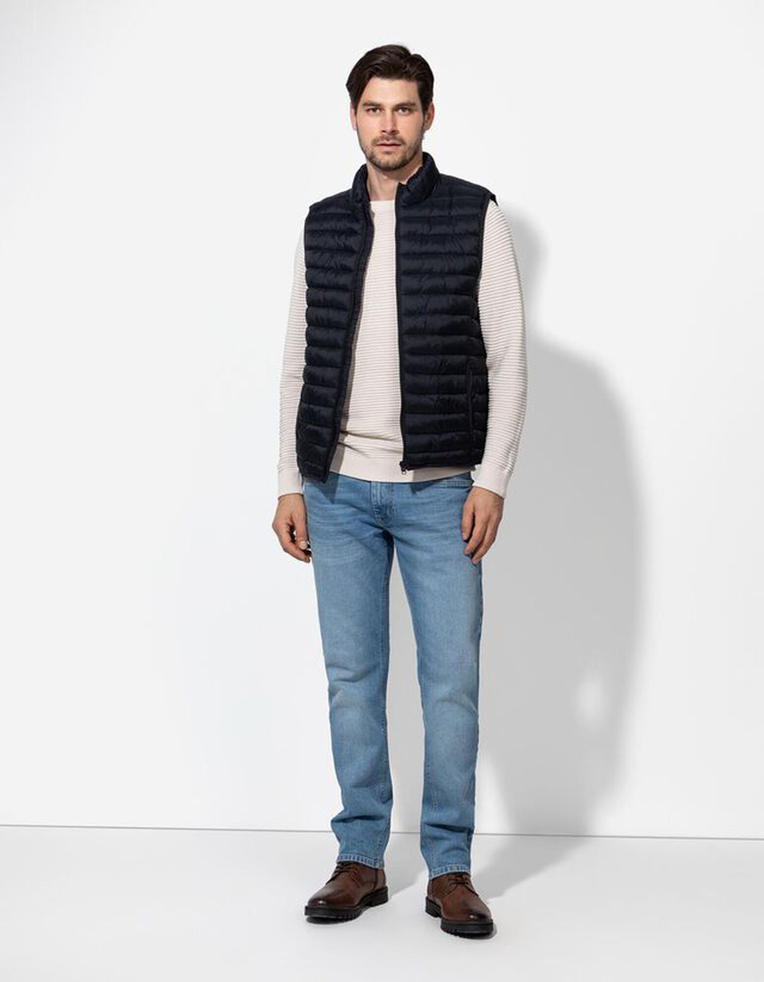 Prešívaná vesta - Šikmé vrecká - tmavomodra