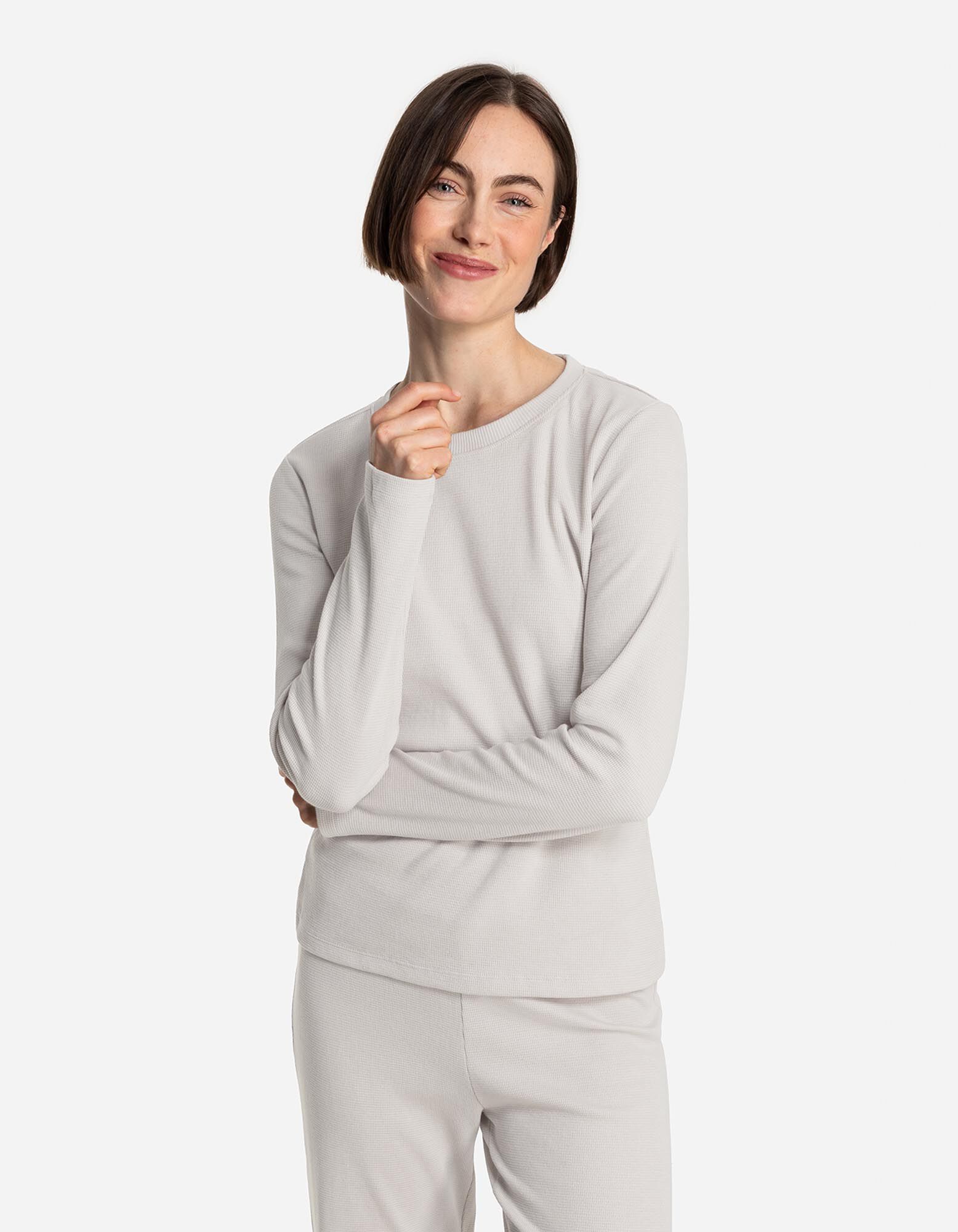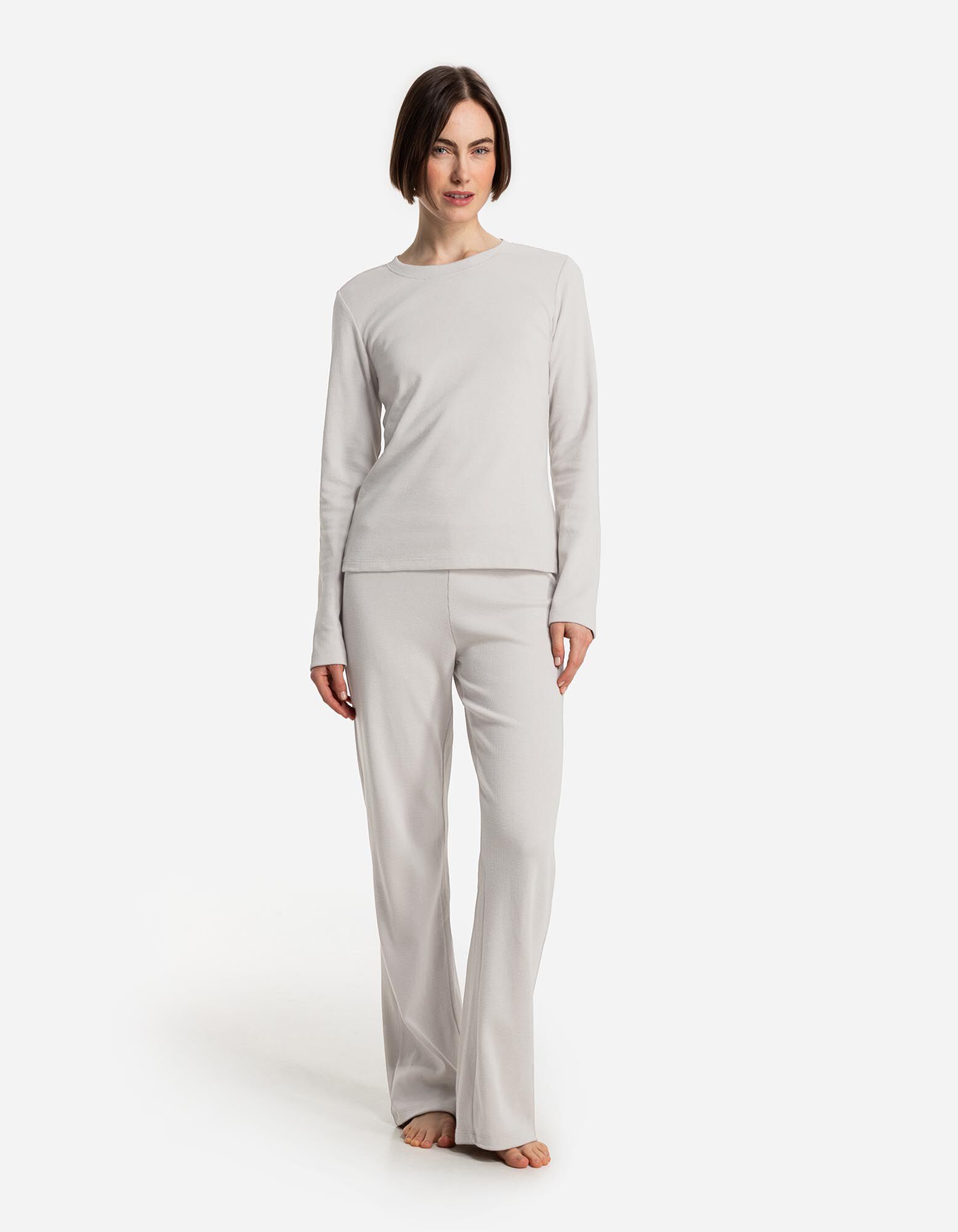 Pyžamový komplet pozostávajúci z trička s dlhým rukávom a nohavíc - bezova