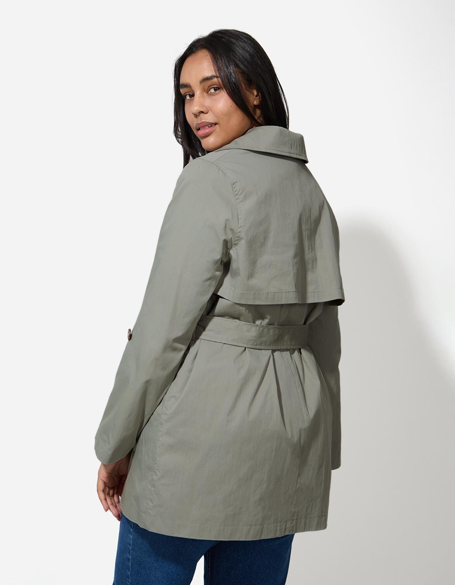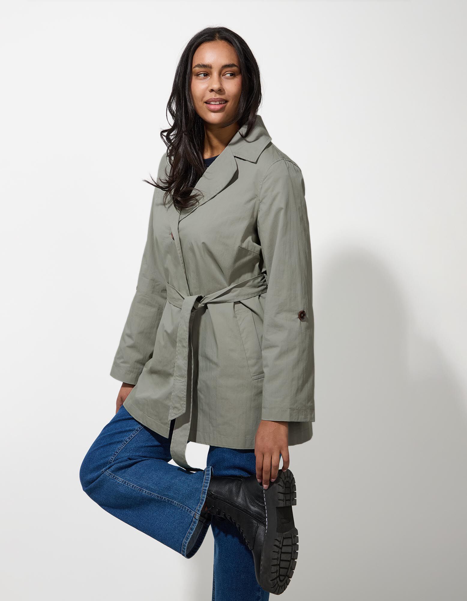 Trenčkot - Opasok na previazanie - tmavozelena