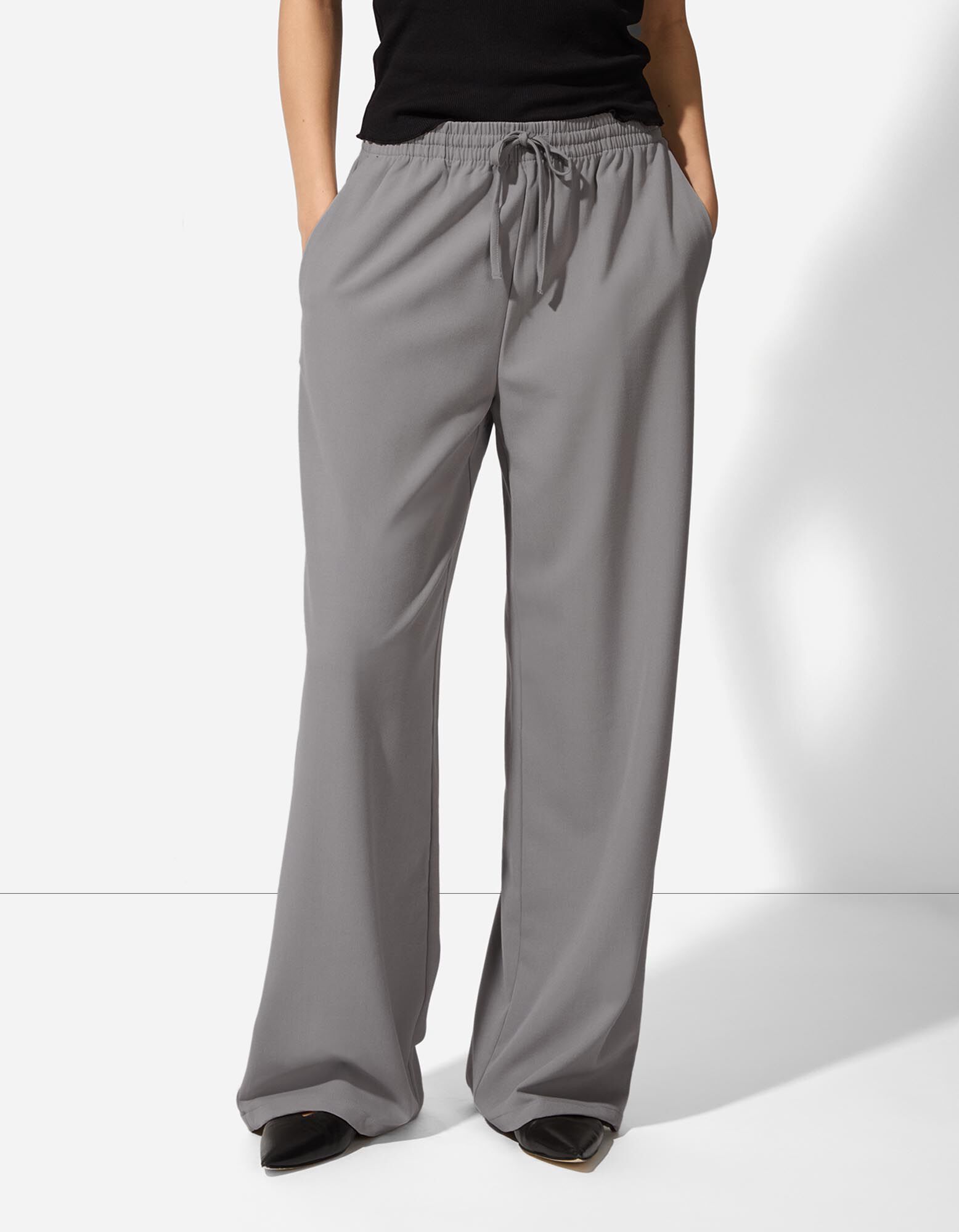 Hlače - Kontrastne črte - siva