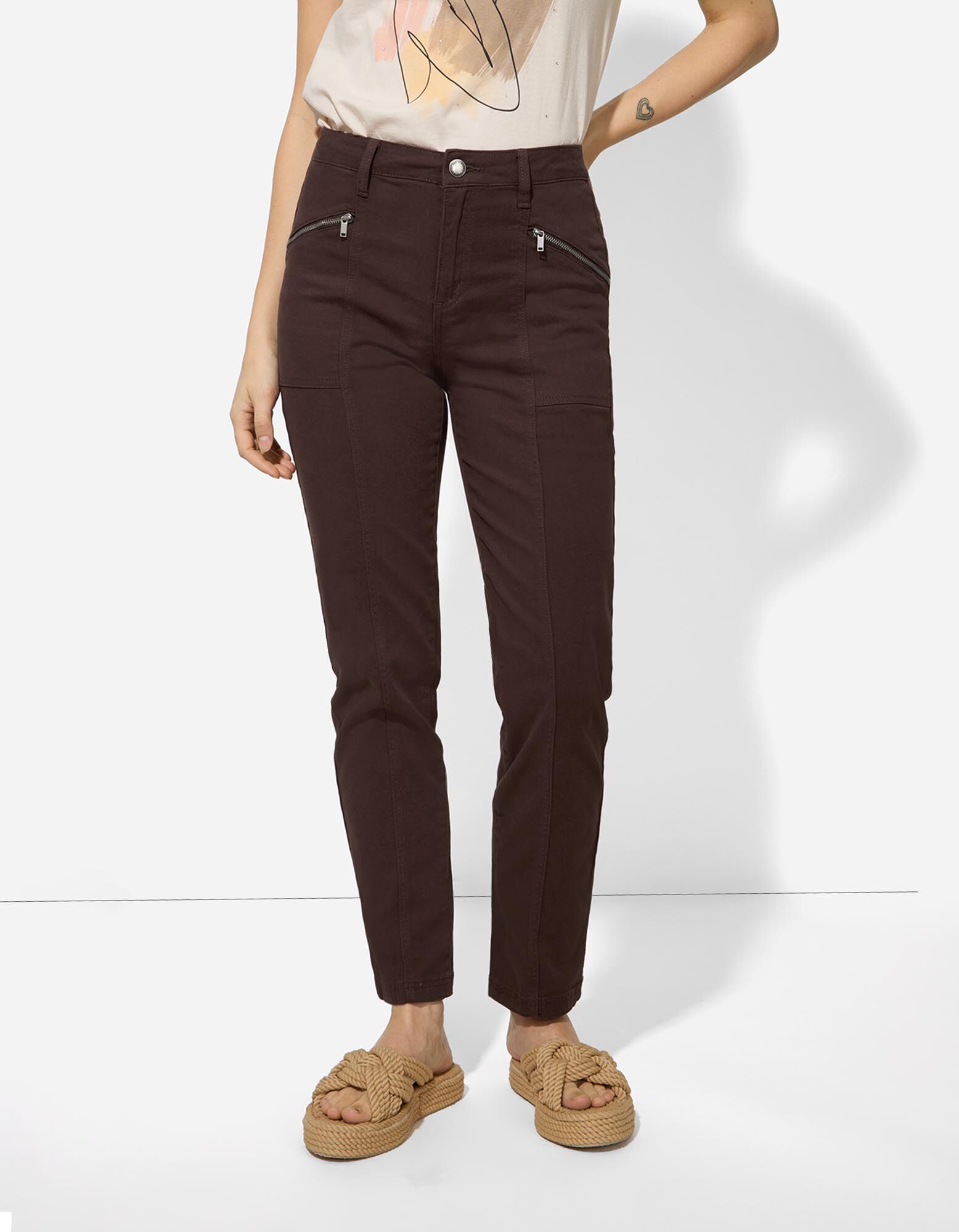 Hlače - Enobarvno - temno rjava