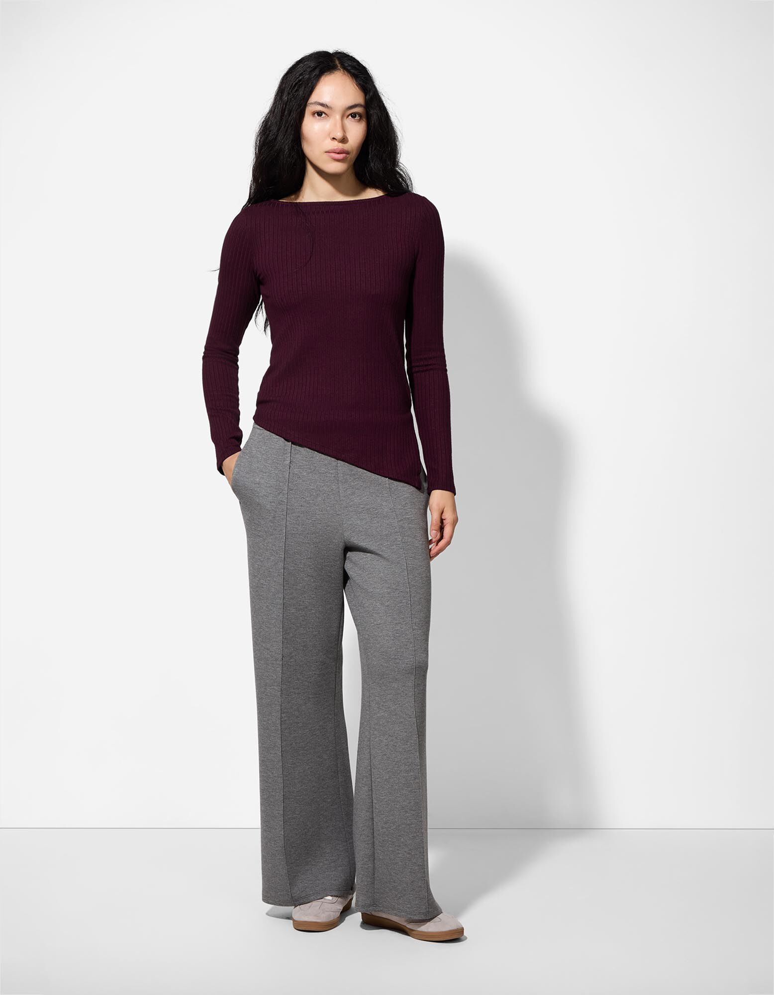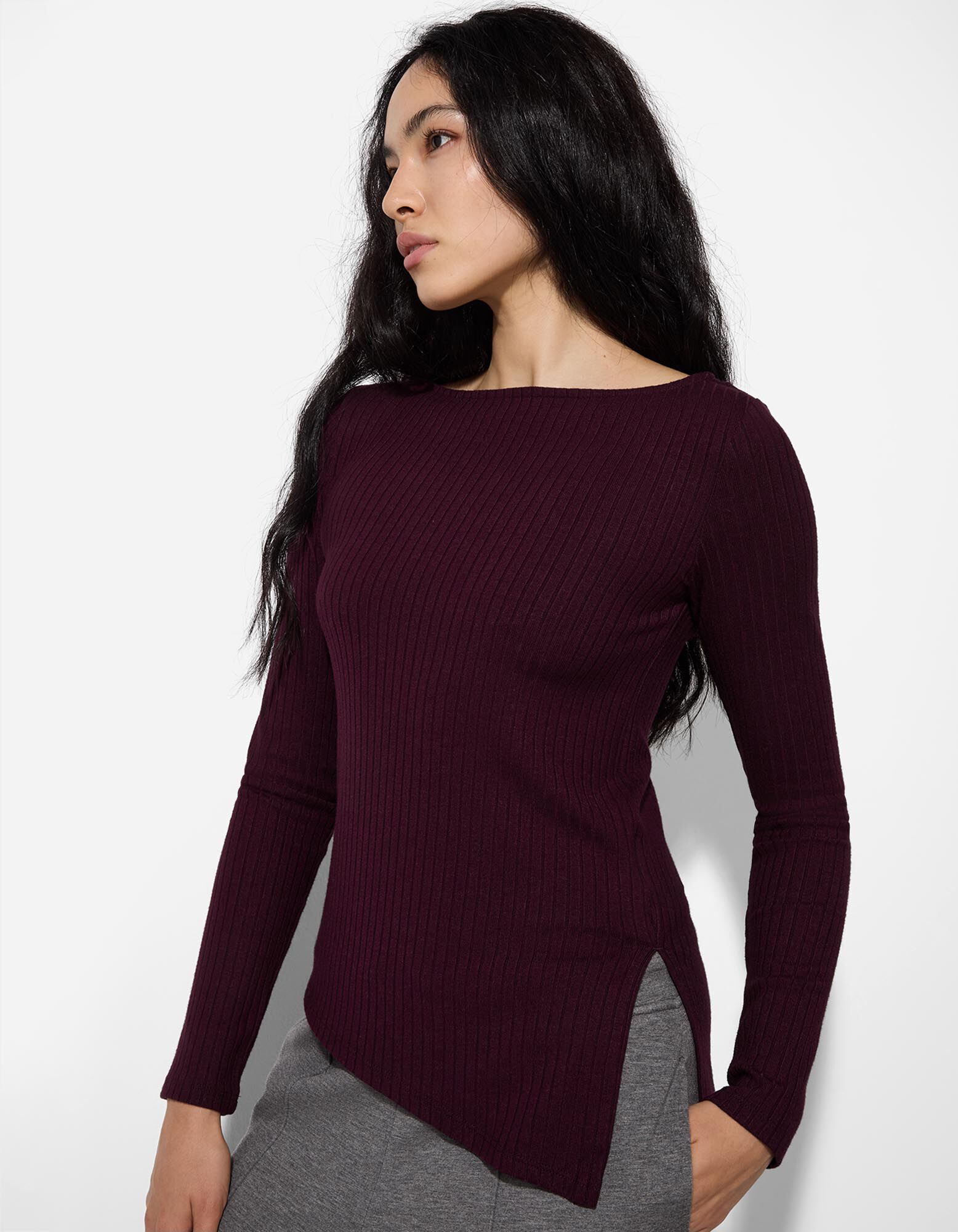 Majica dolg rokav - Asimetrično - temno vijolicna